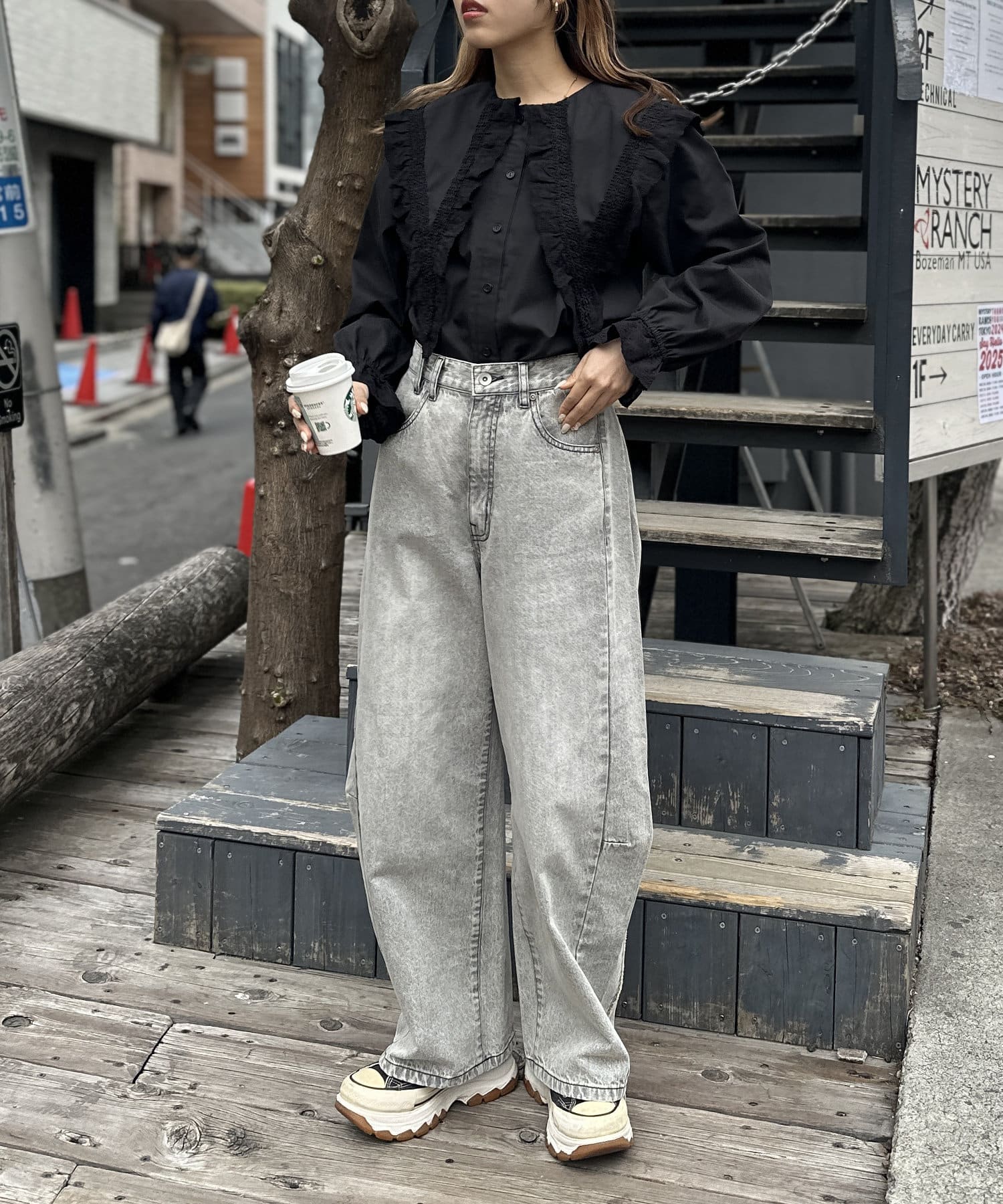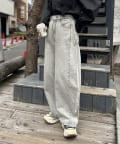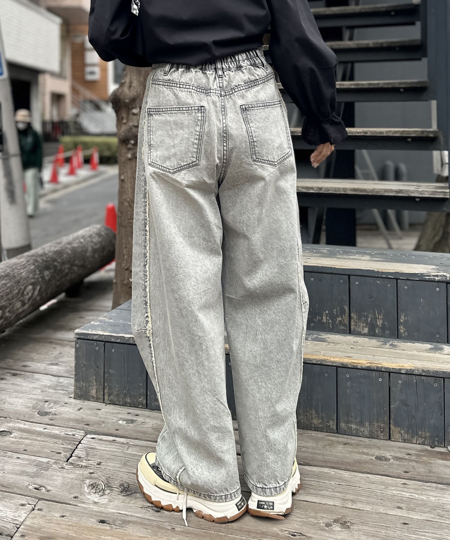【ウエスト調節可能/2サイズ展開】カーブデニムパンツ
