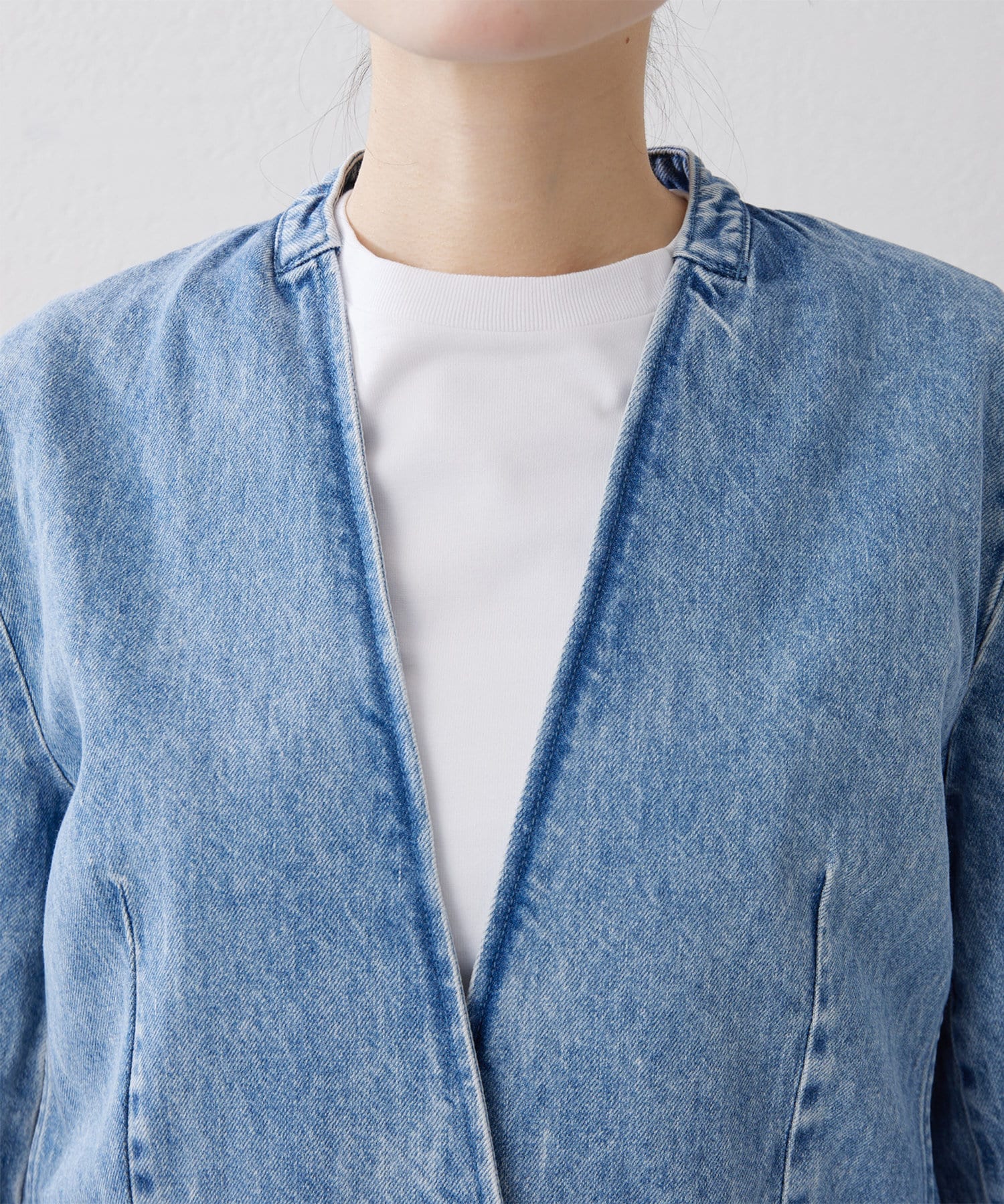 さらりと羽織っても決まるデニムノーカラージャケット