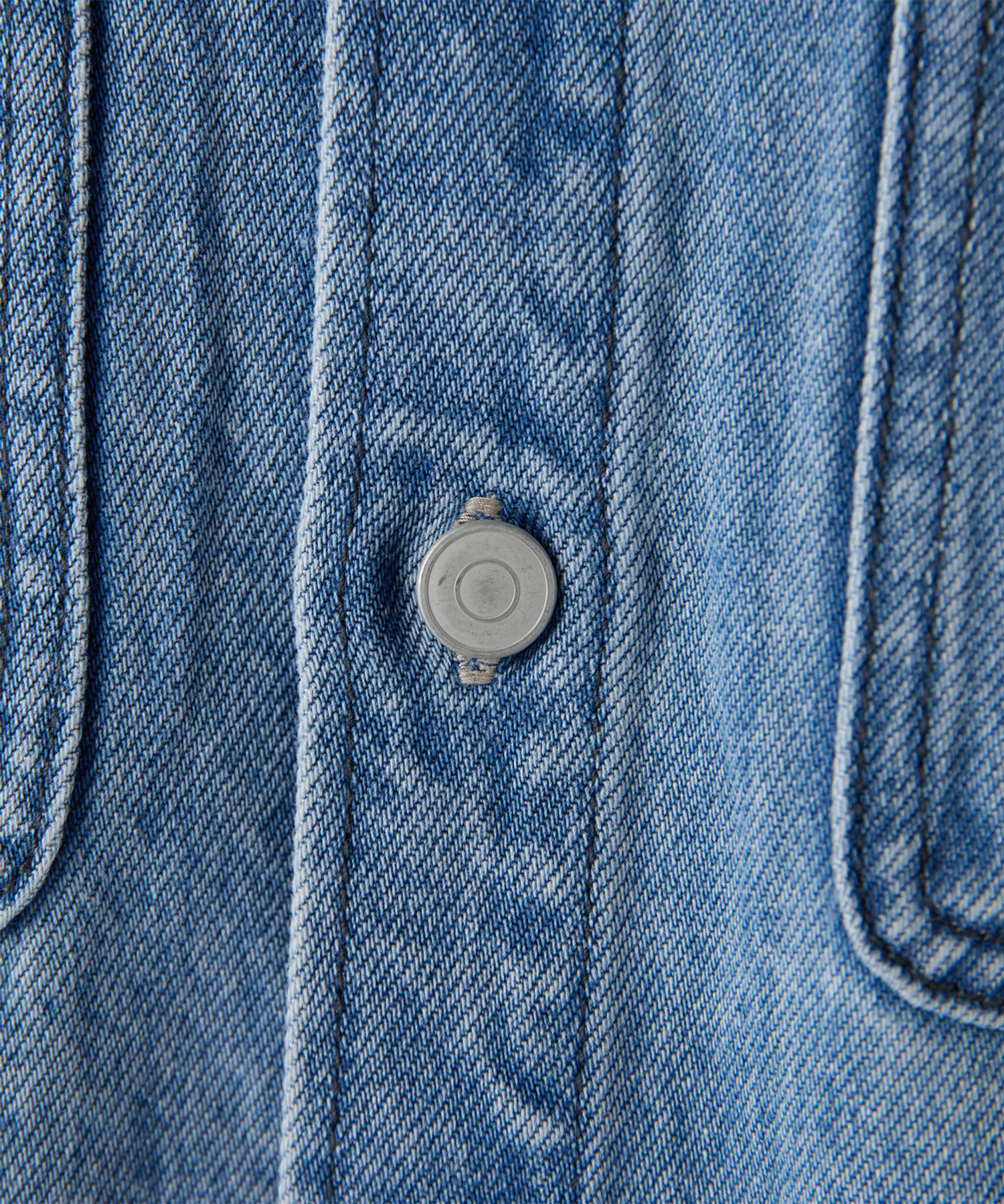 ■ドット釦でアクセントをプラスし、胸ポケットの切り替えやアタリ加工でヴィンテージ感を演出。