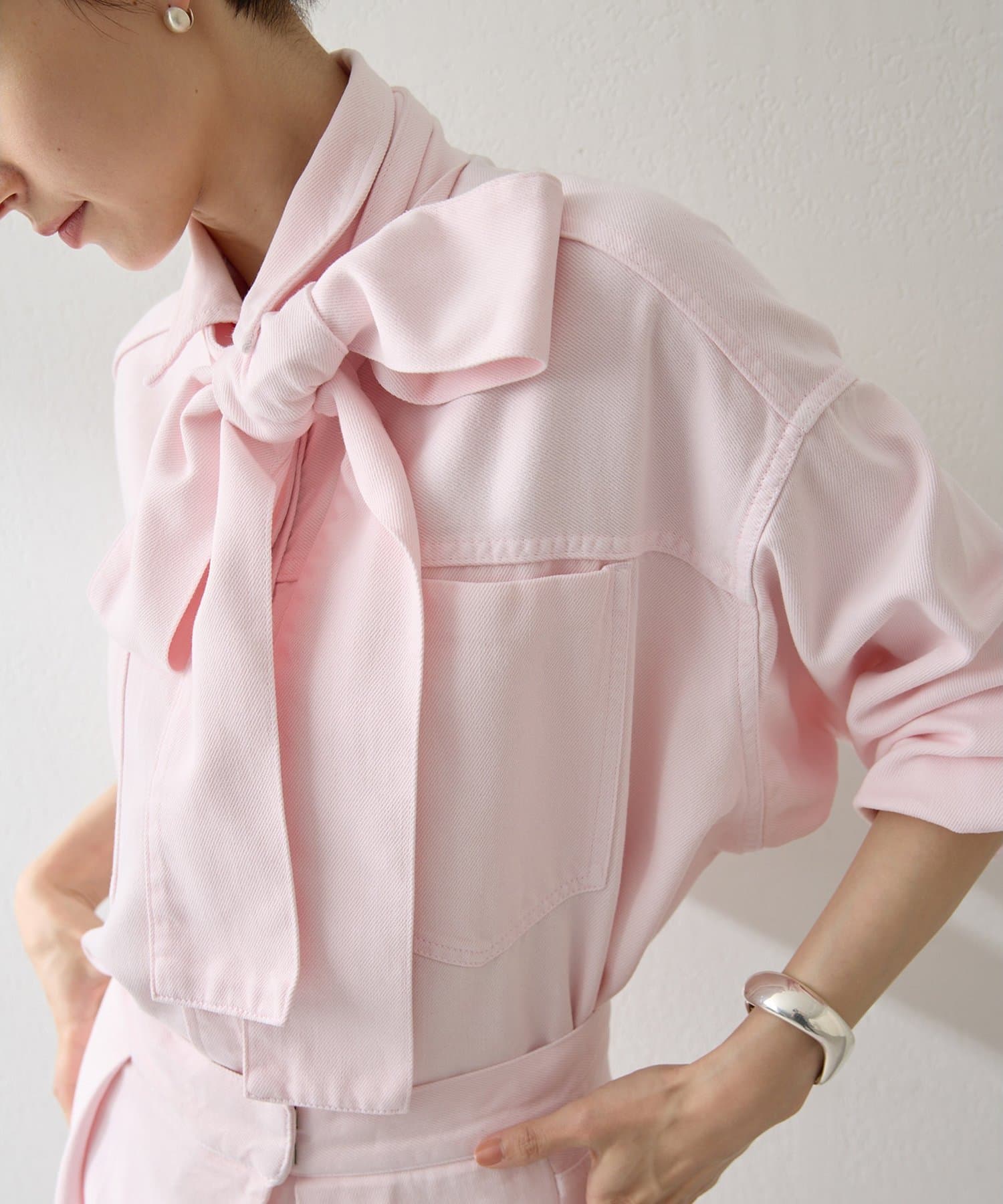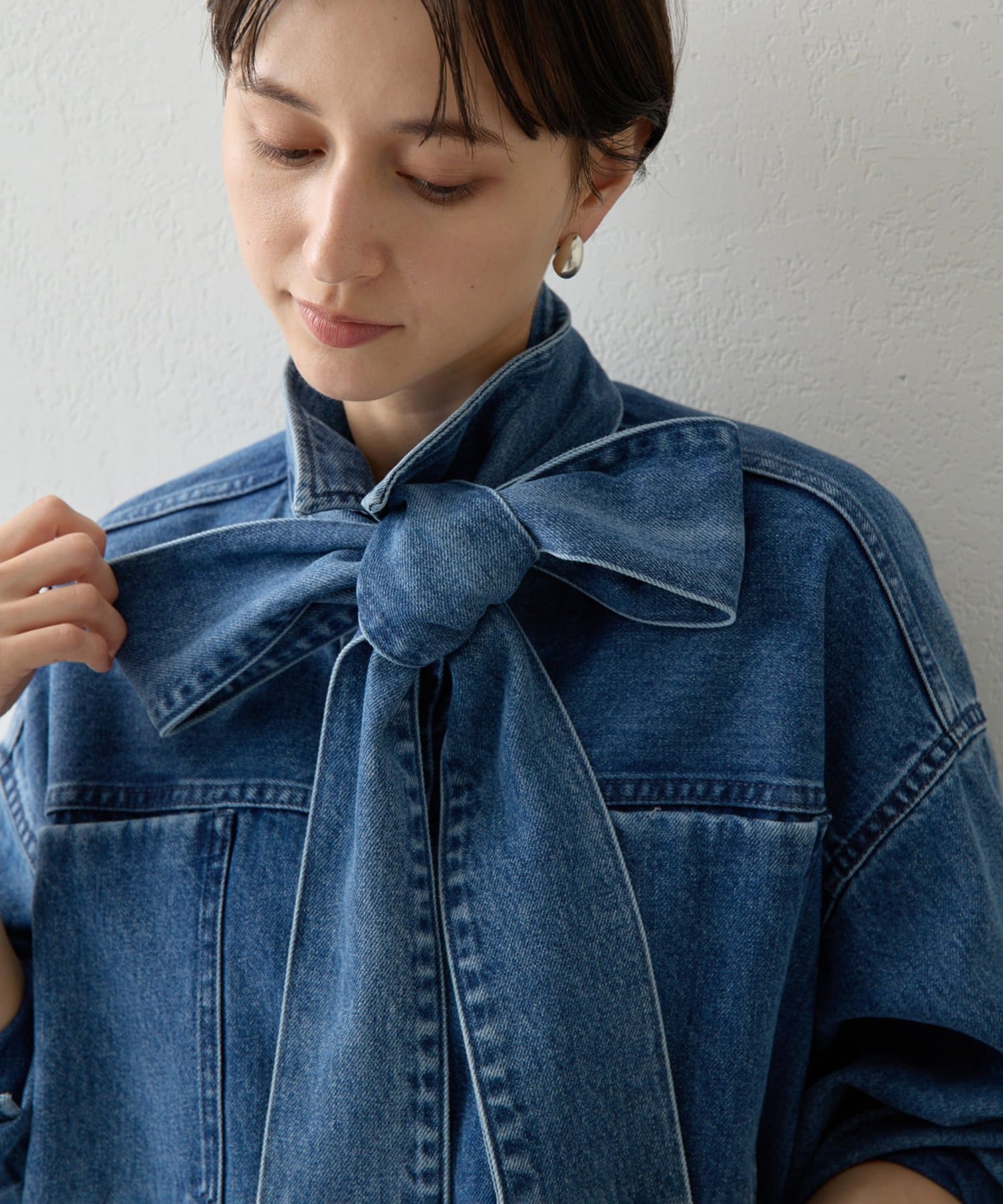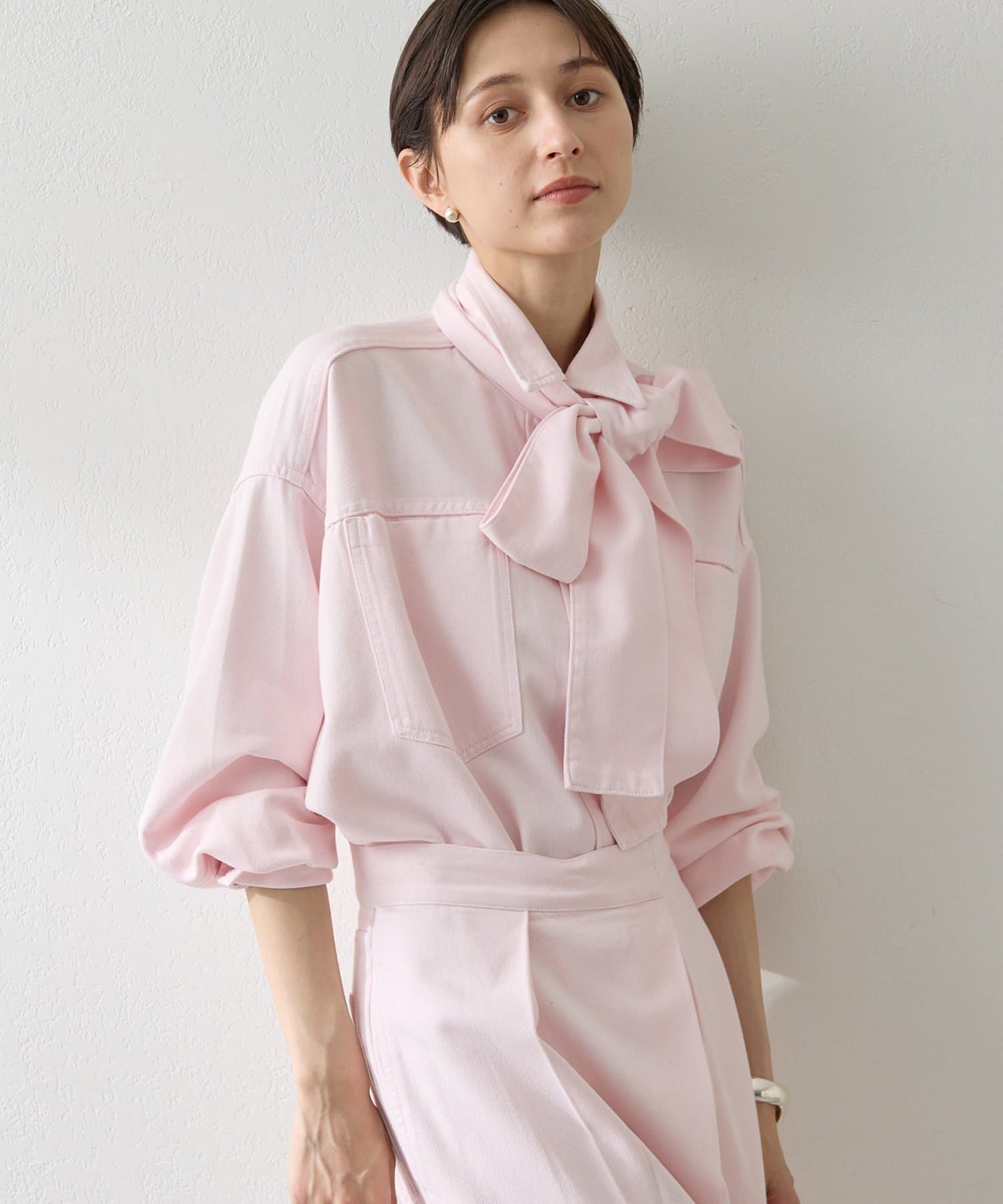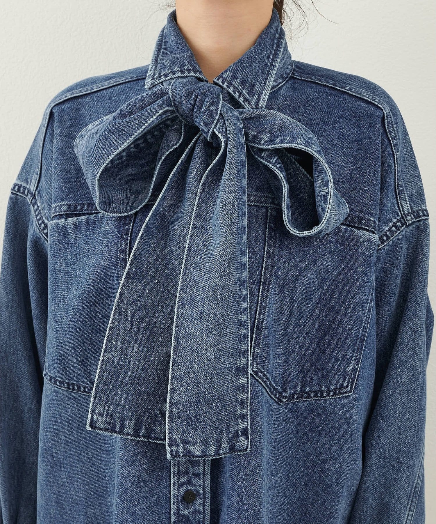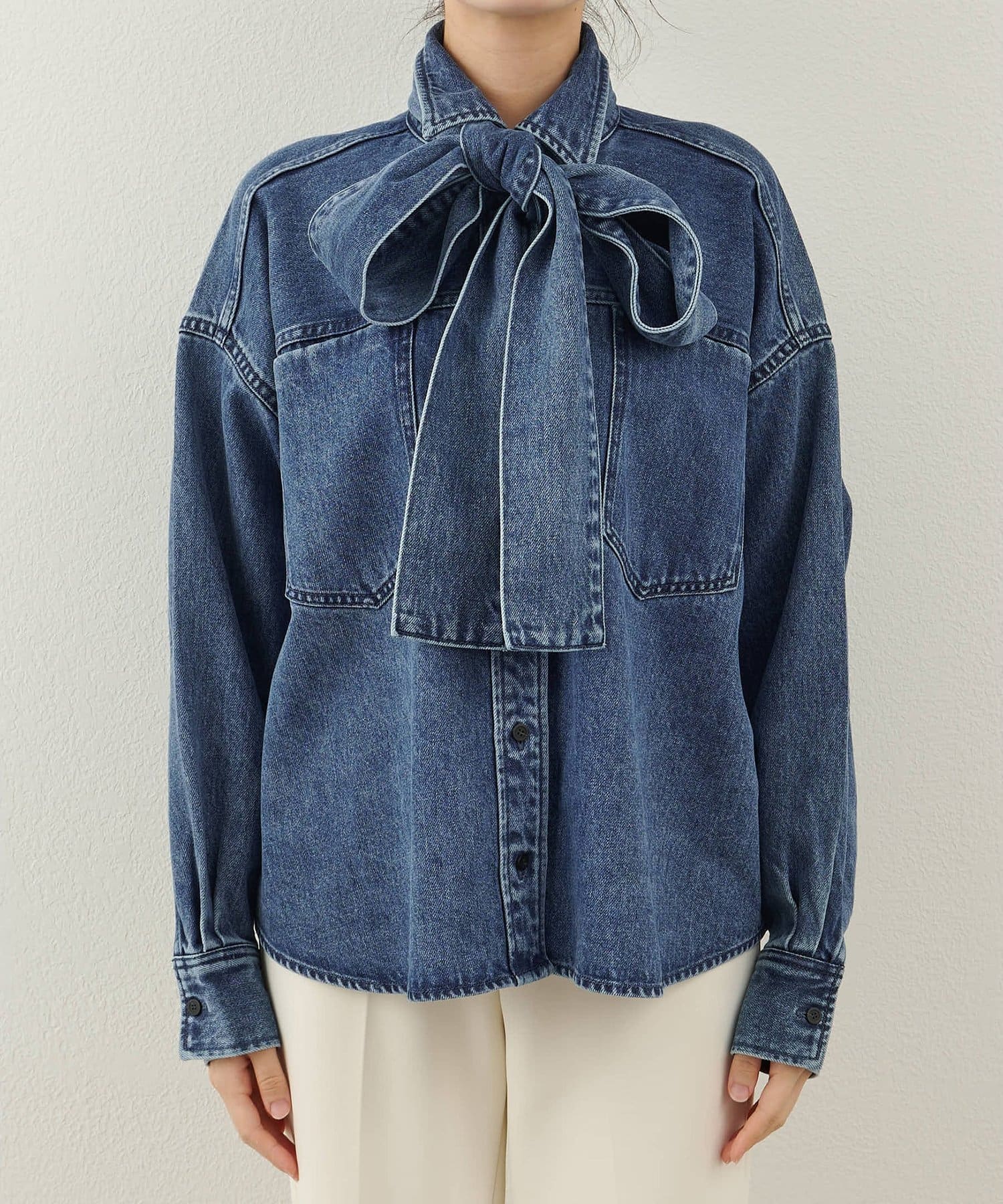 ■ボウタイディテールがフェミニンな要素をプラスするデニムシャツ。