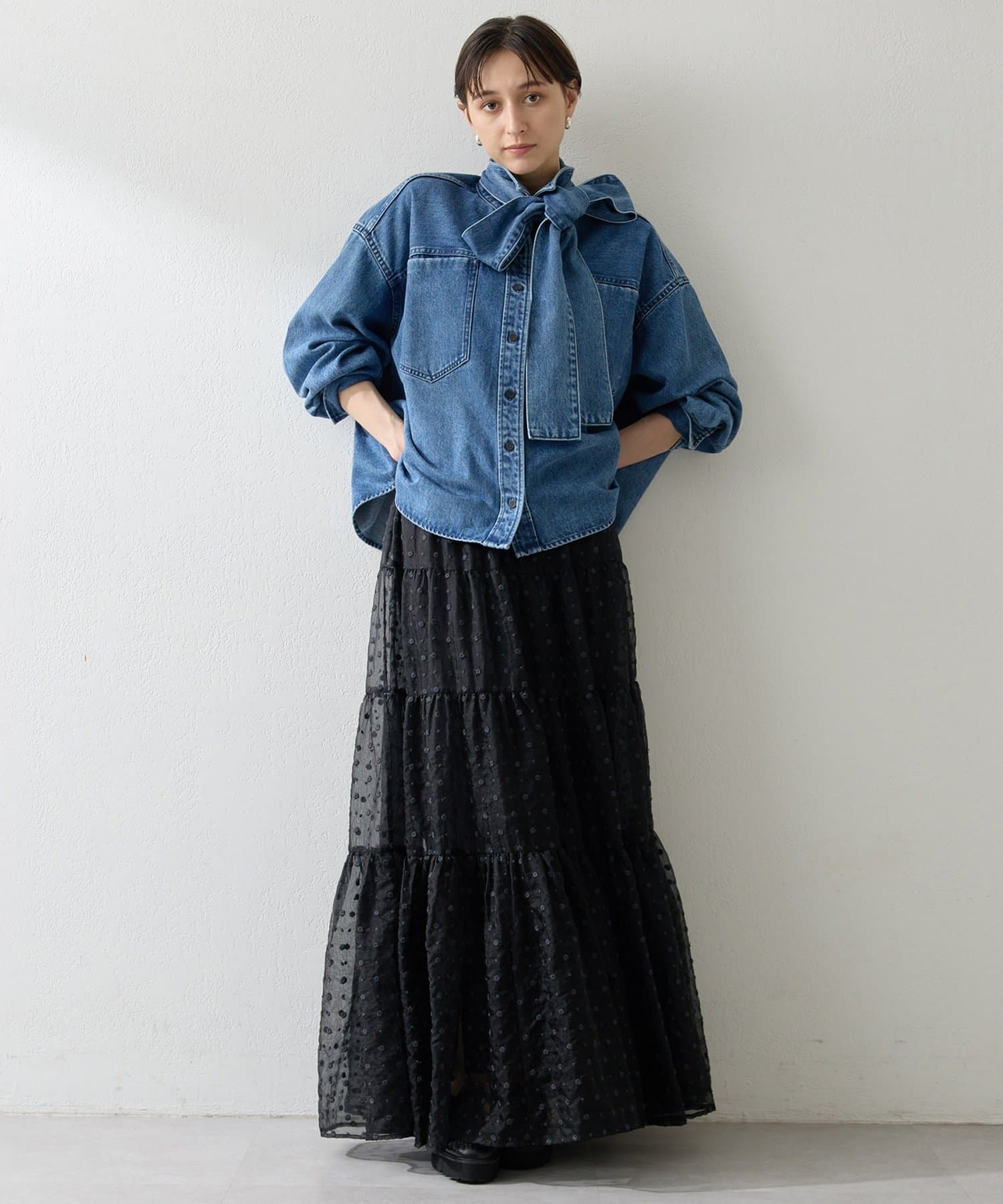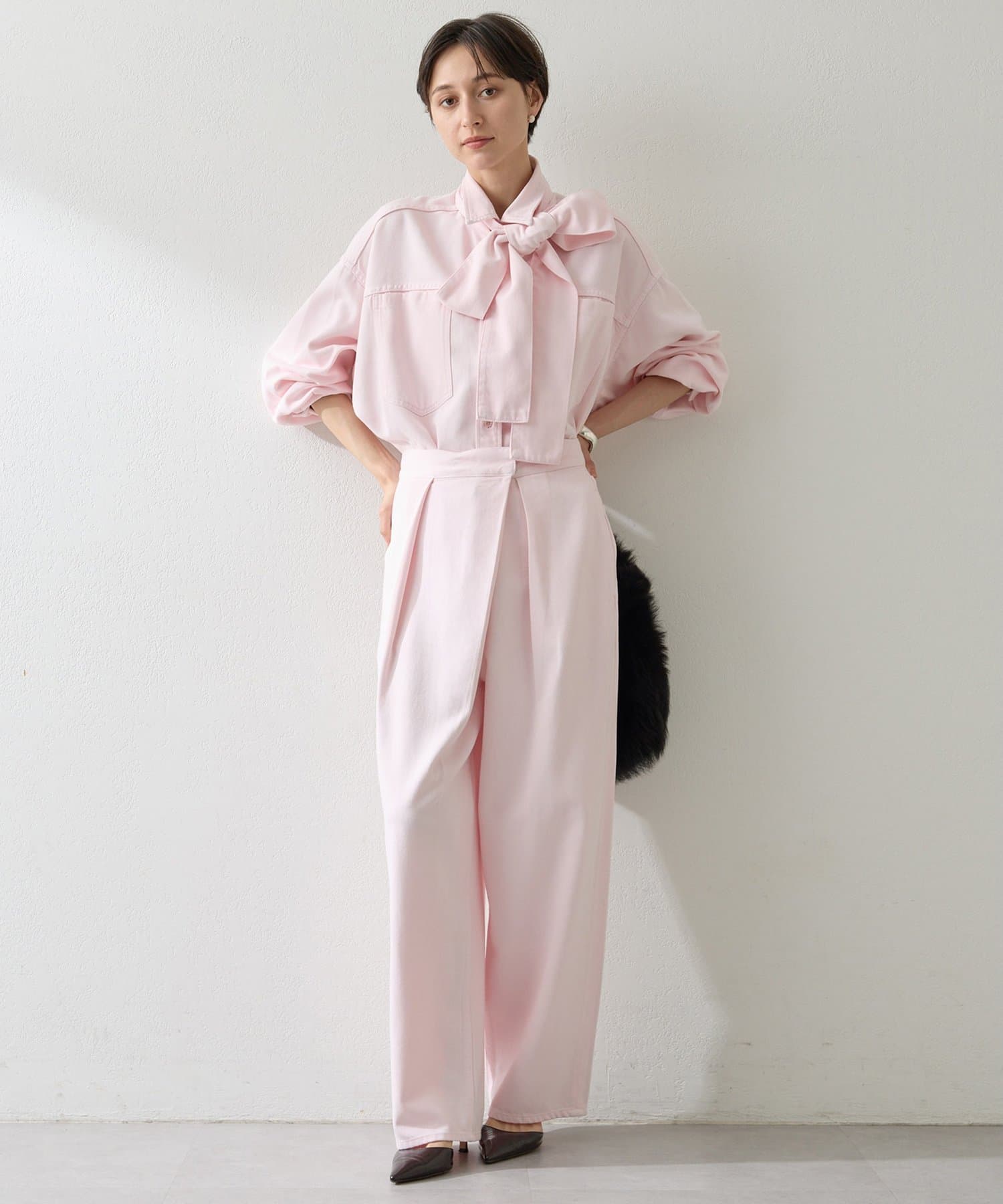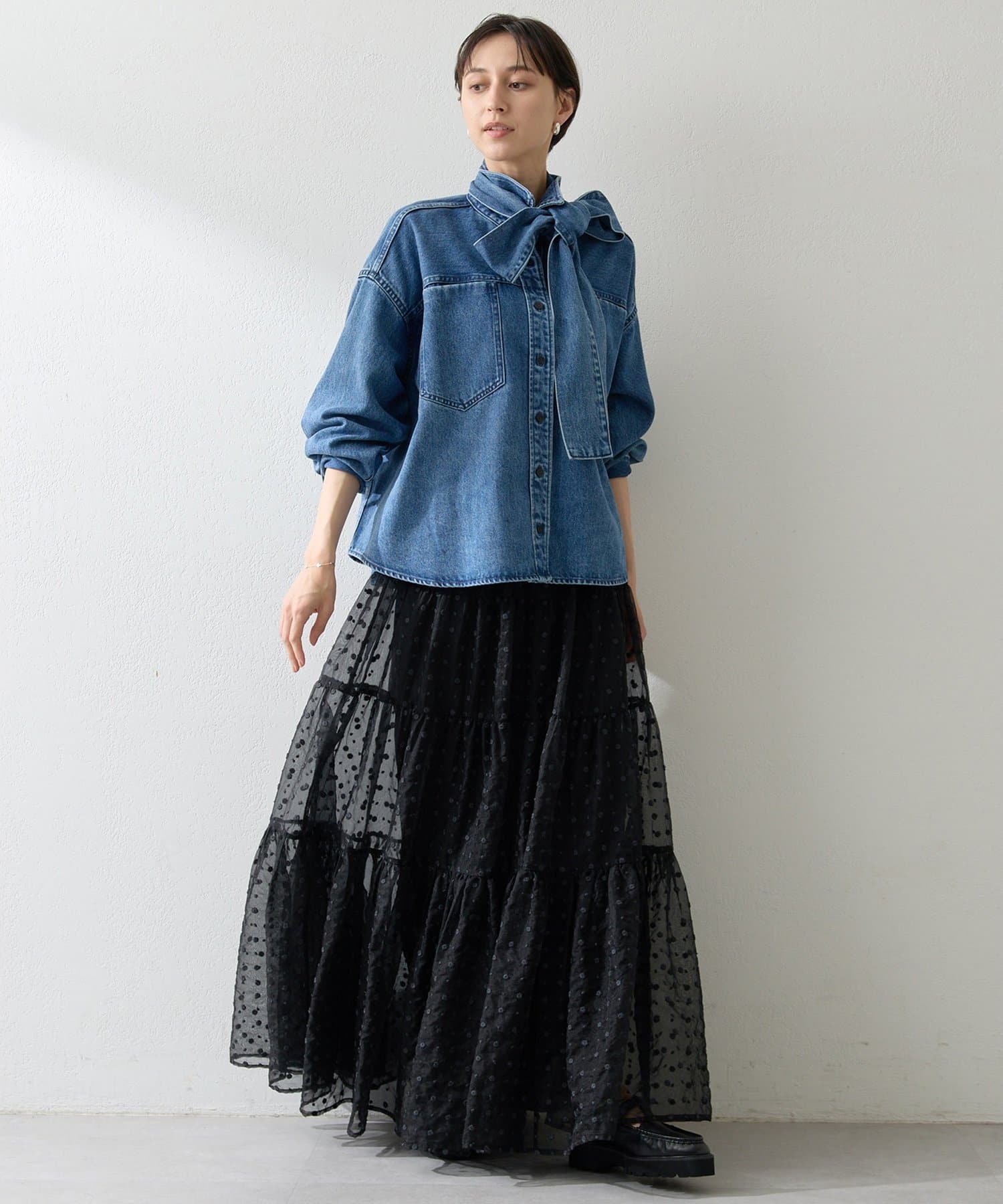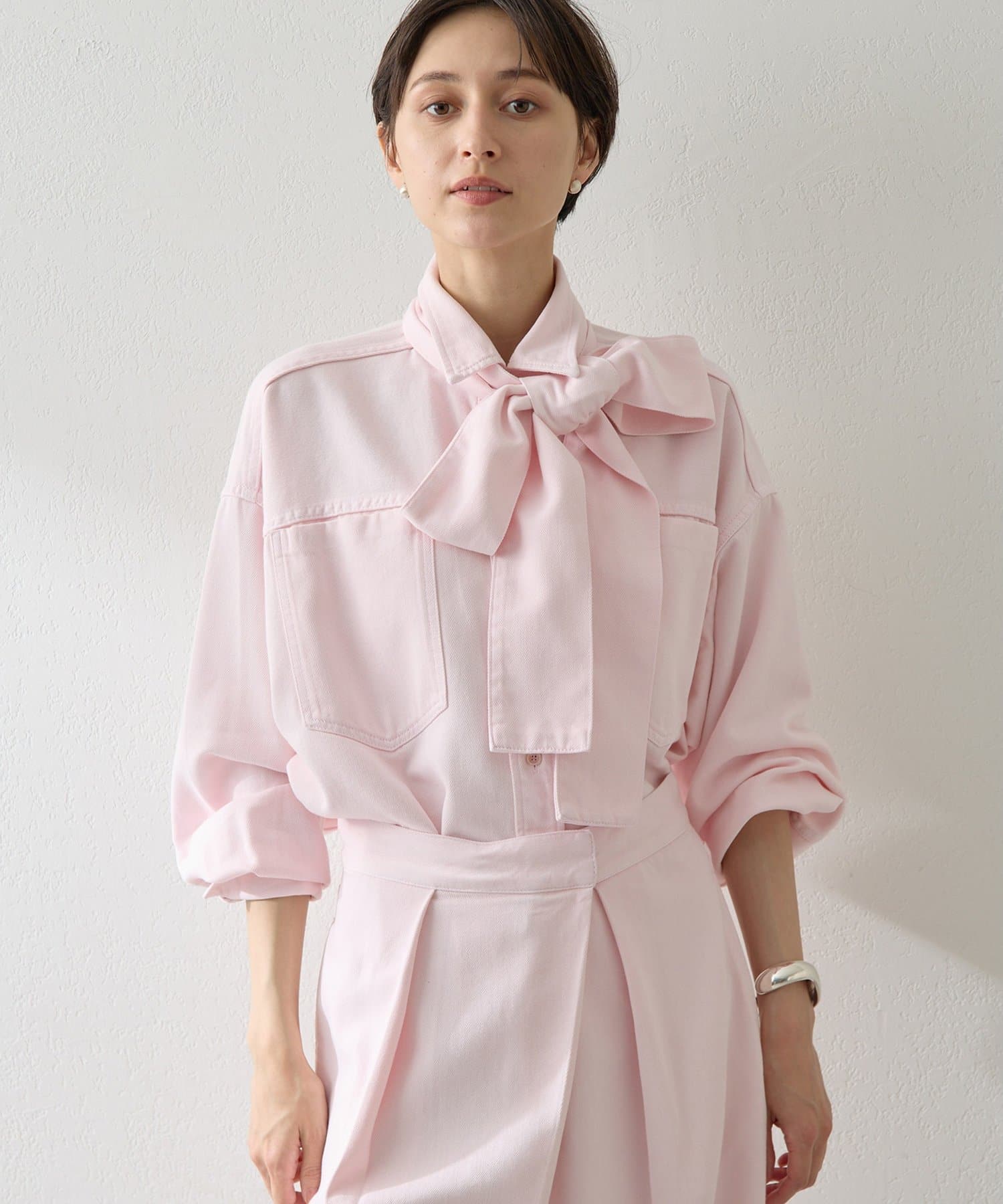 ■ボウタイディテールがフェミニンな要素をプラスするデニムシャツ。