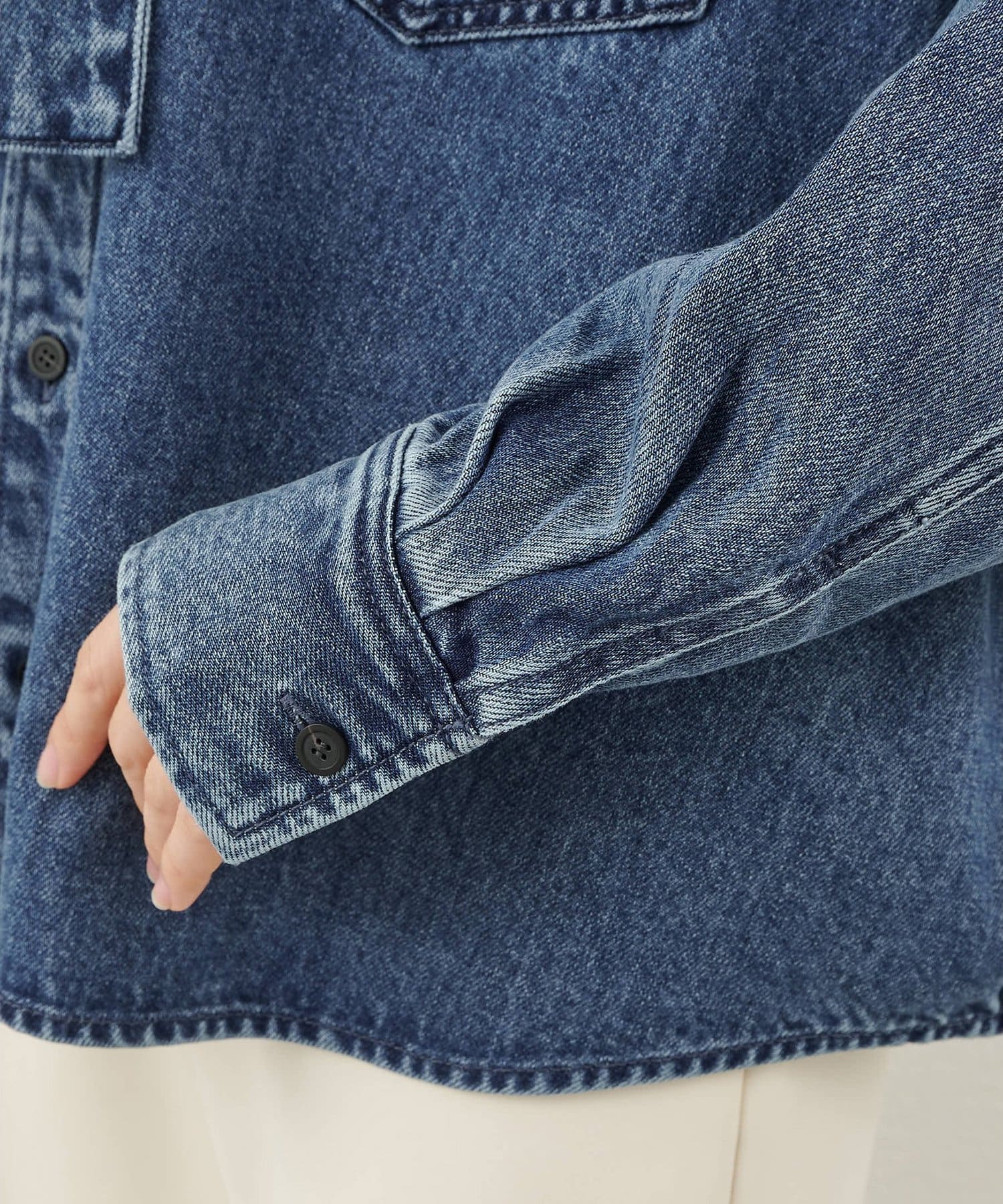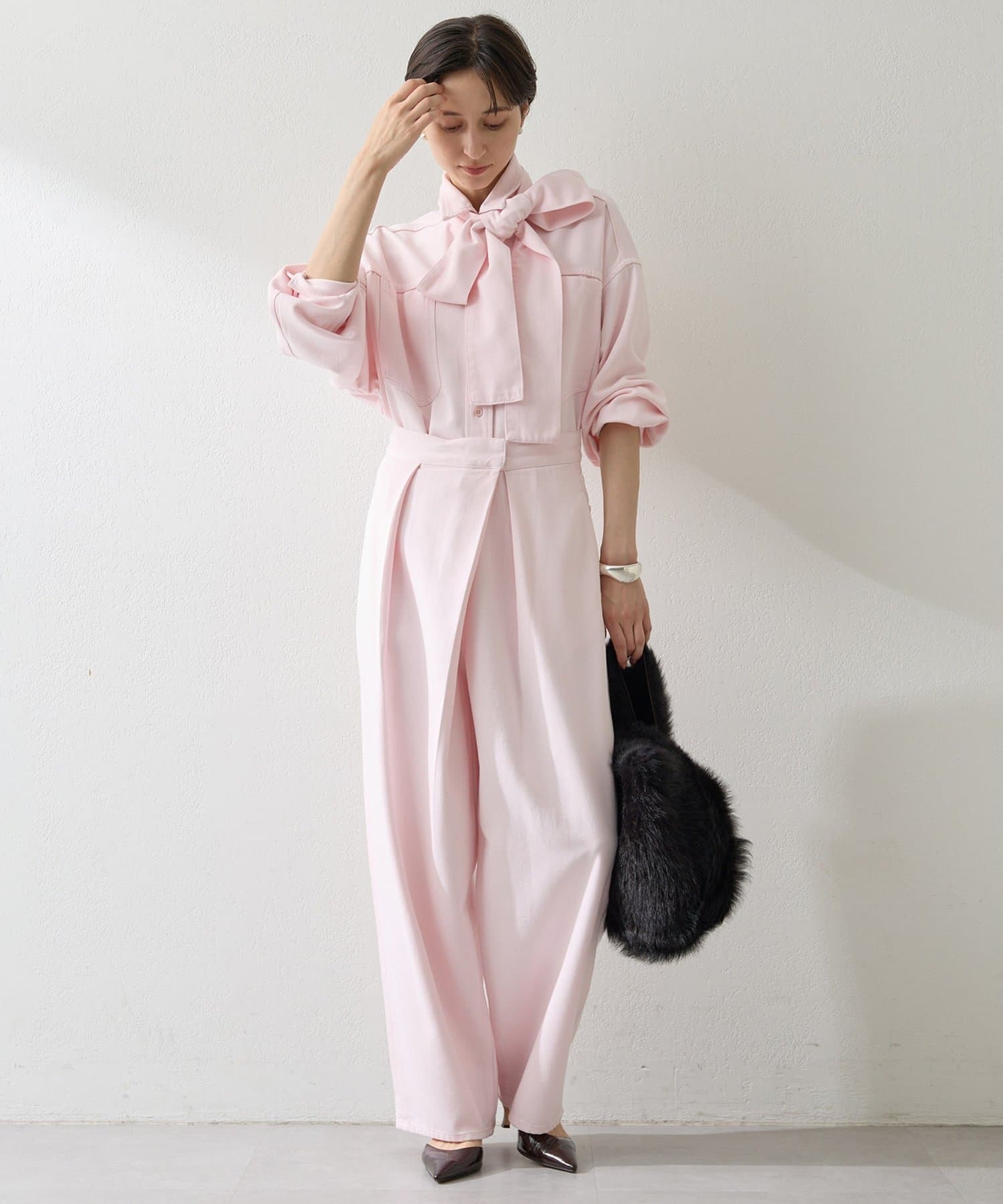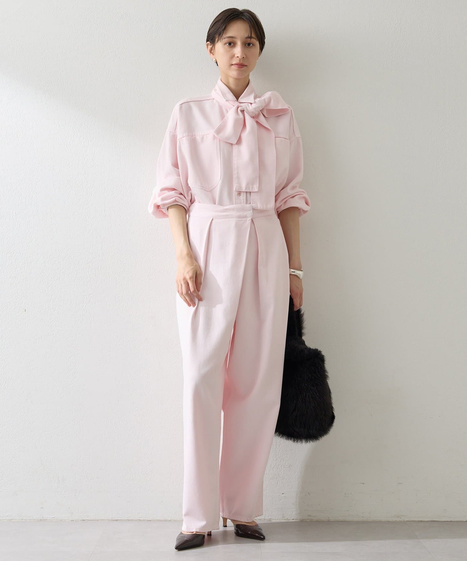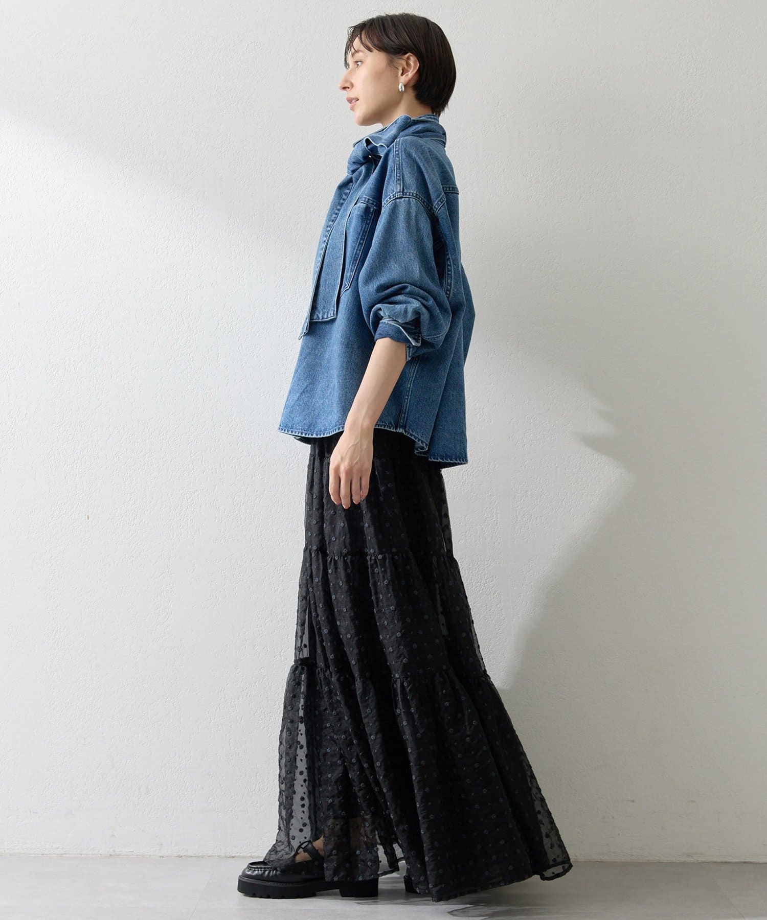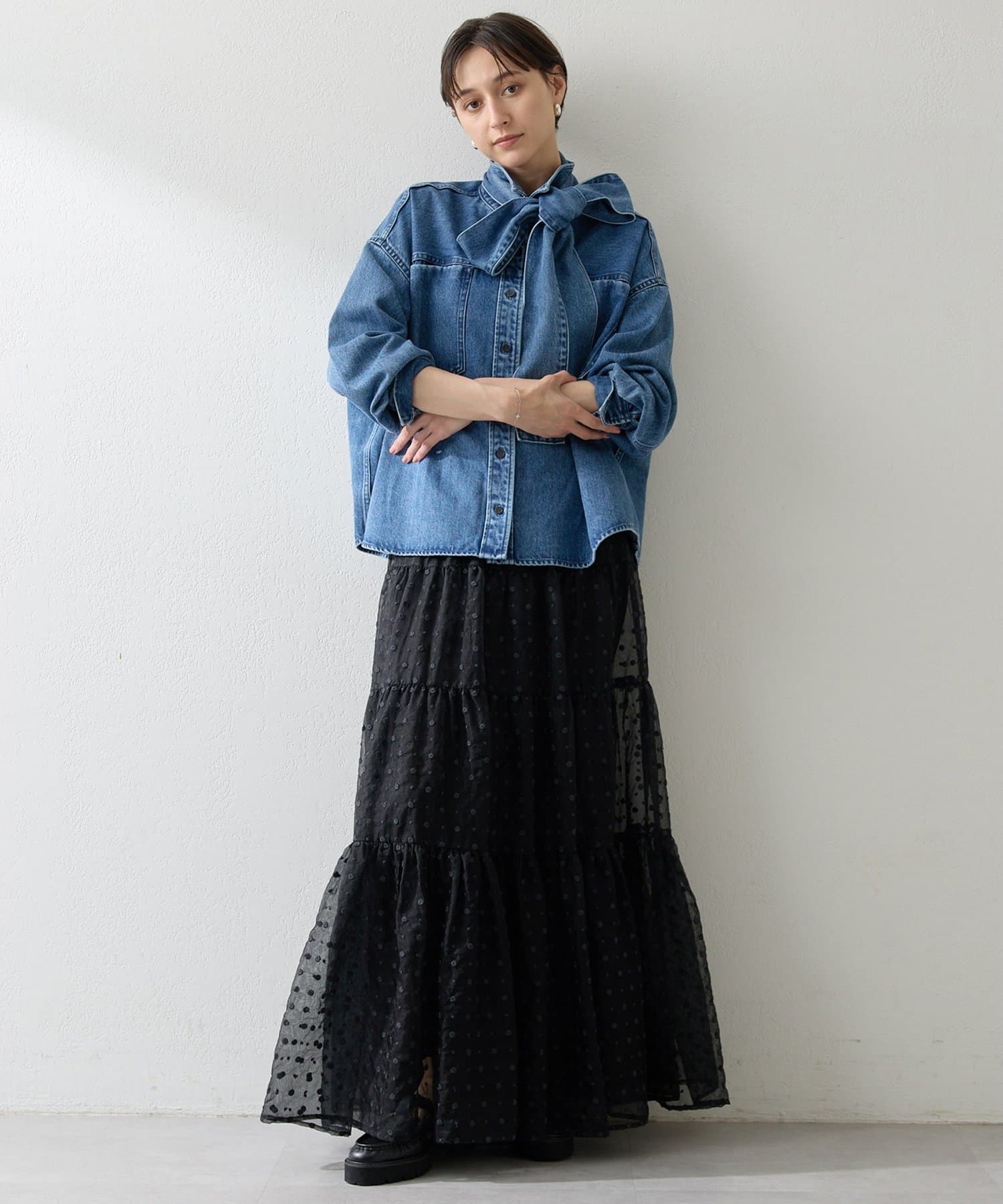 ■ボウタイディテールがフェミニンな要素をプラスするデニムシャツ。