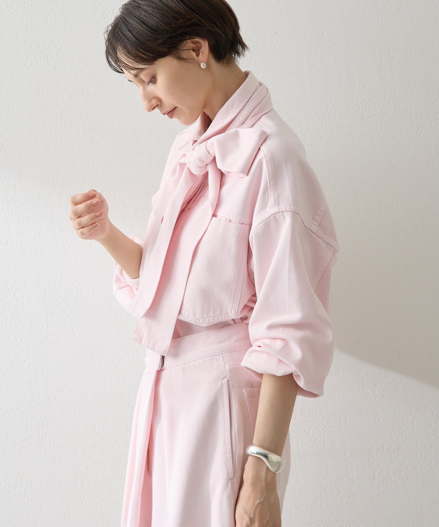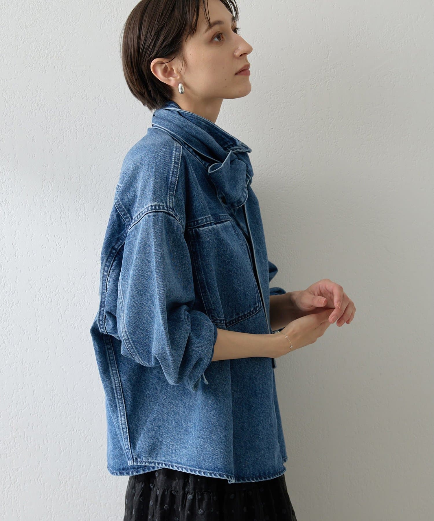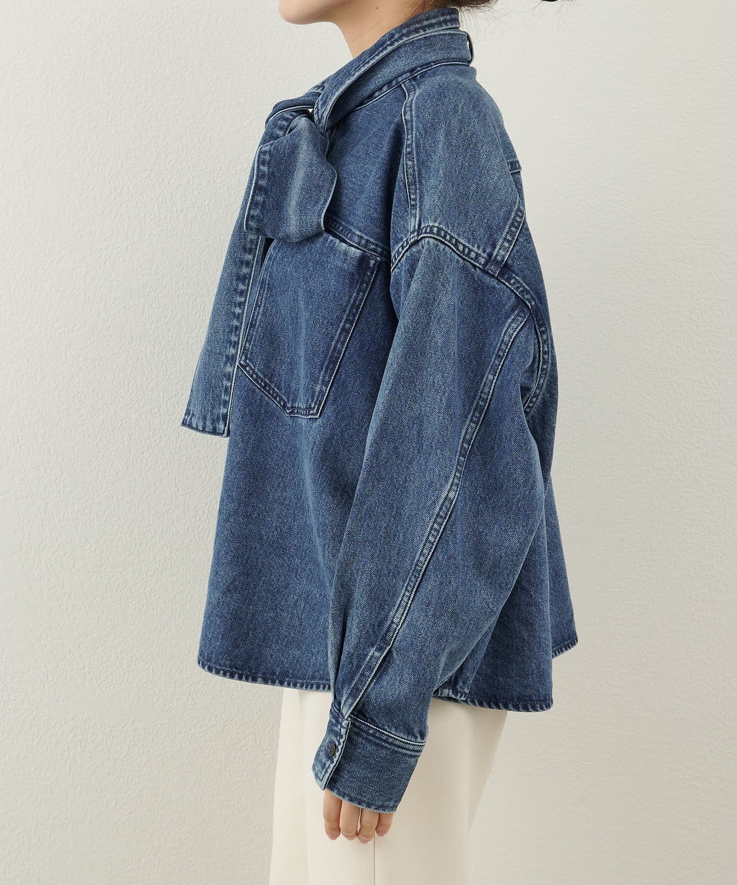 ■ボウタイは取り外し可能で、シンプルなデニムシャツとしても、羽織りとしても活躍。