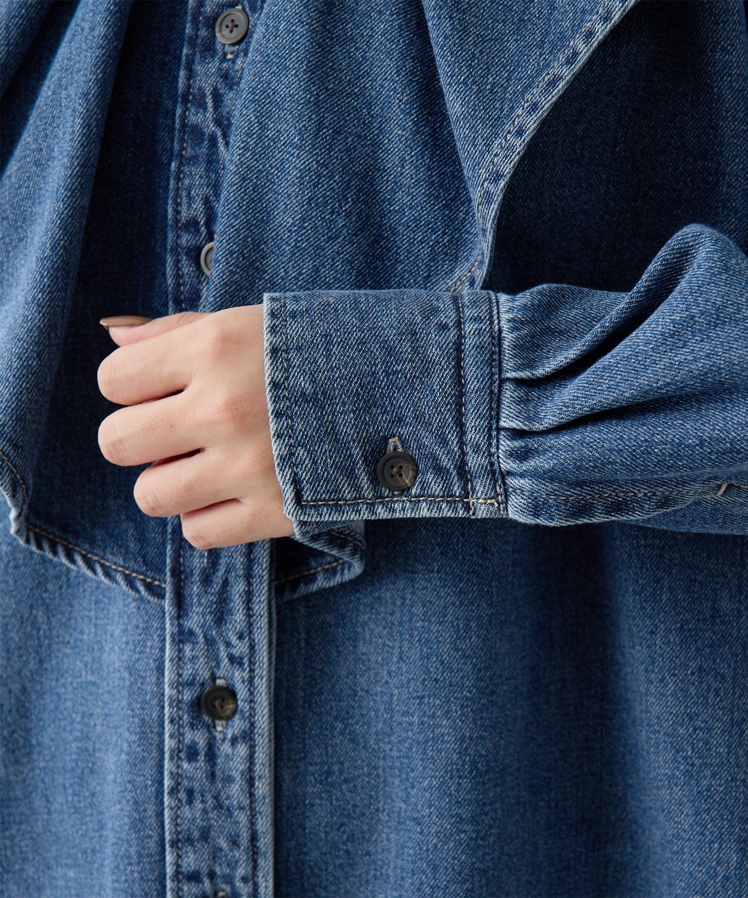■12.5オンスのリングオールドデニムを使用したフリルブラウス。