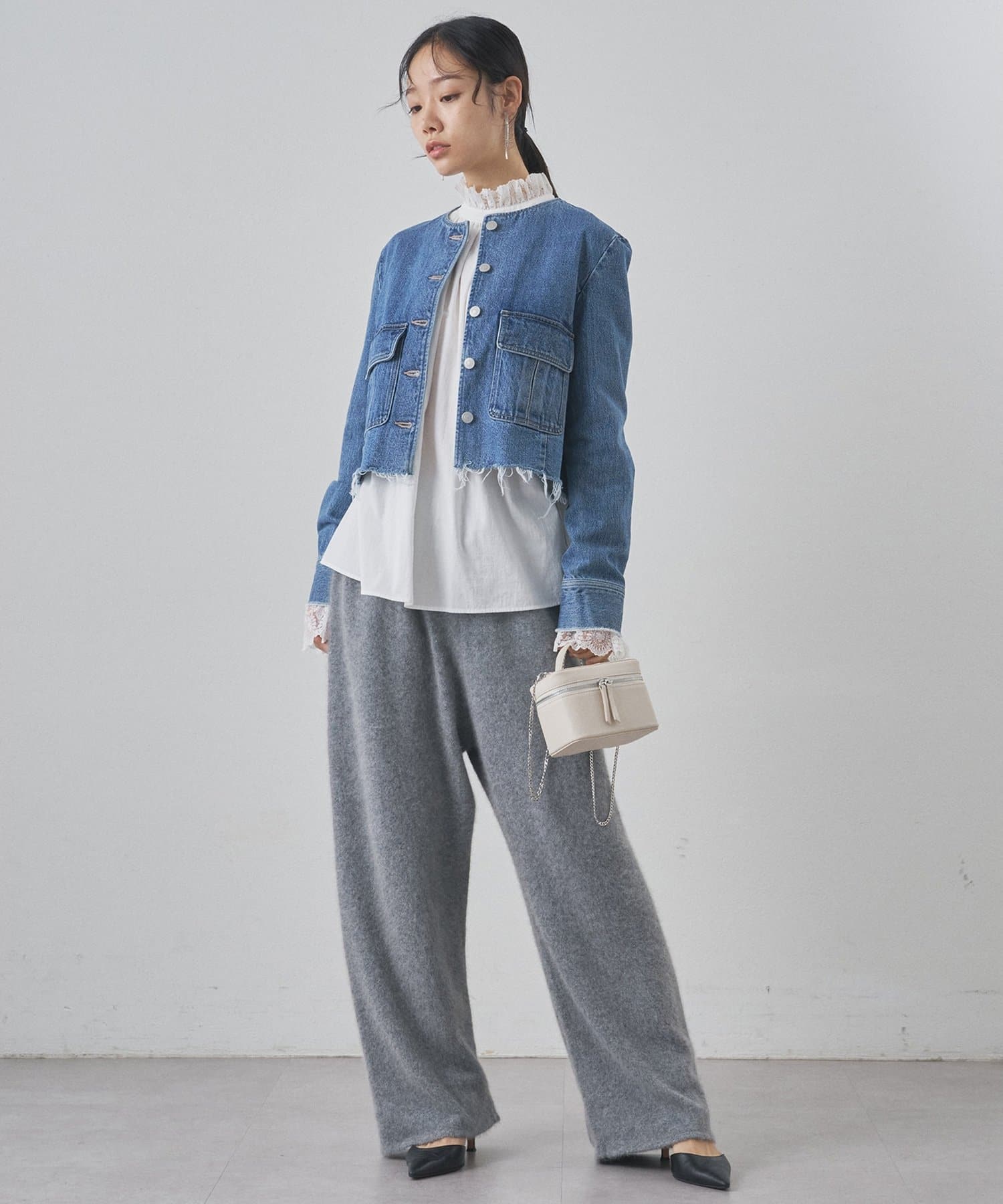 ■同素材のワイドデニムイージーパンツ(ブランド品番:WGD1052503A0001)とのセットアップもおすすめ。