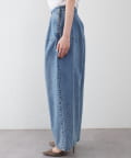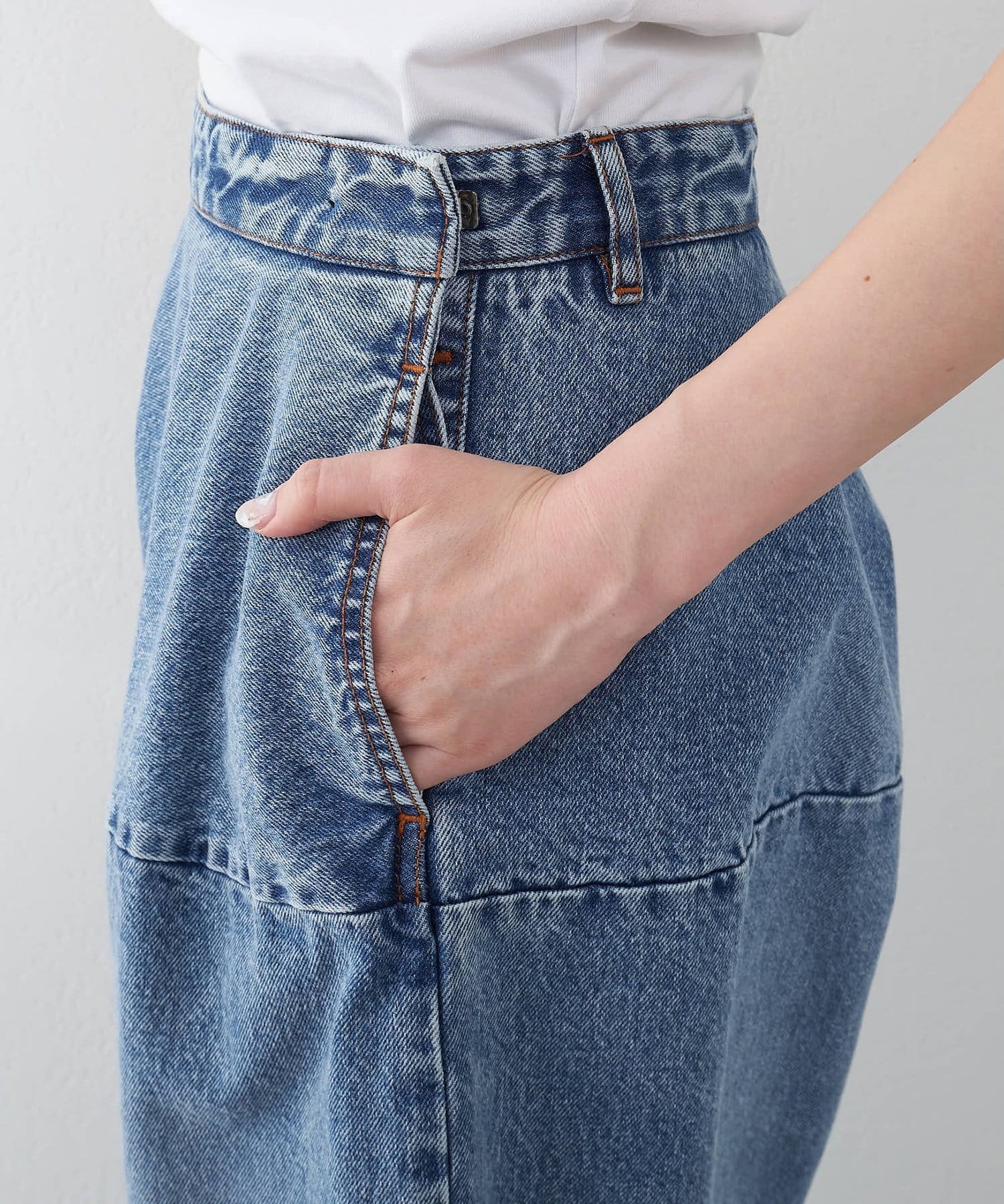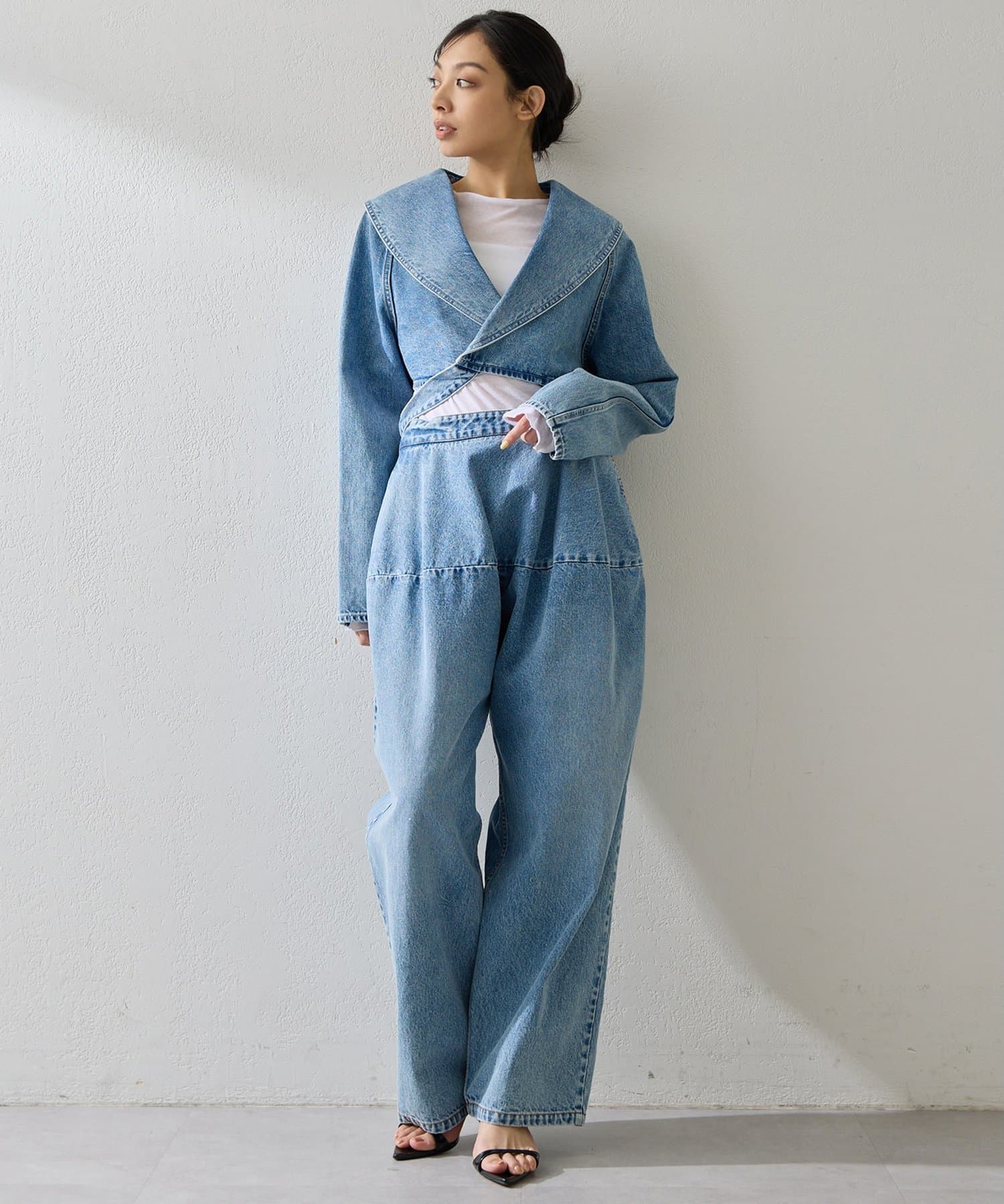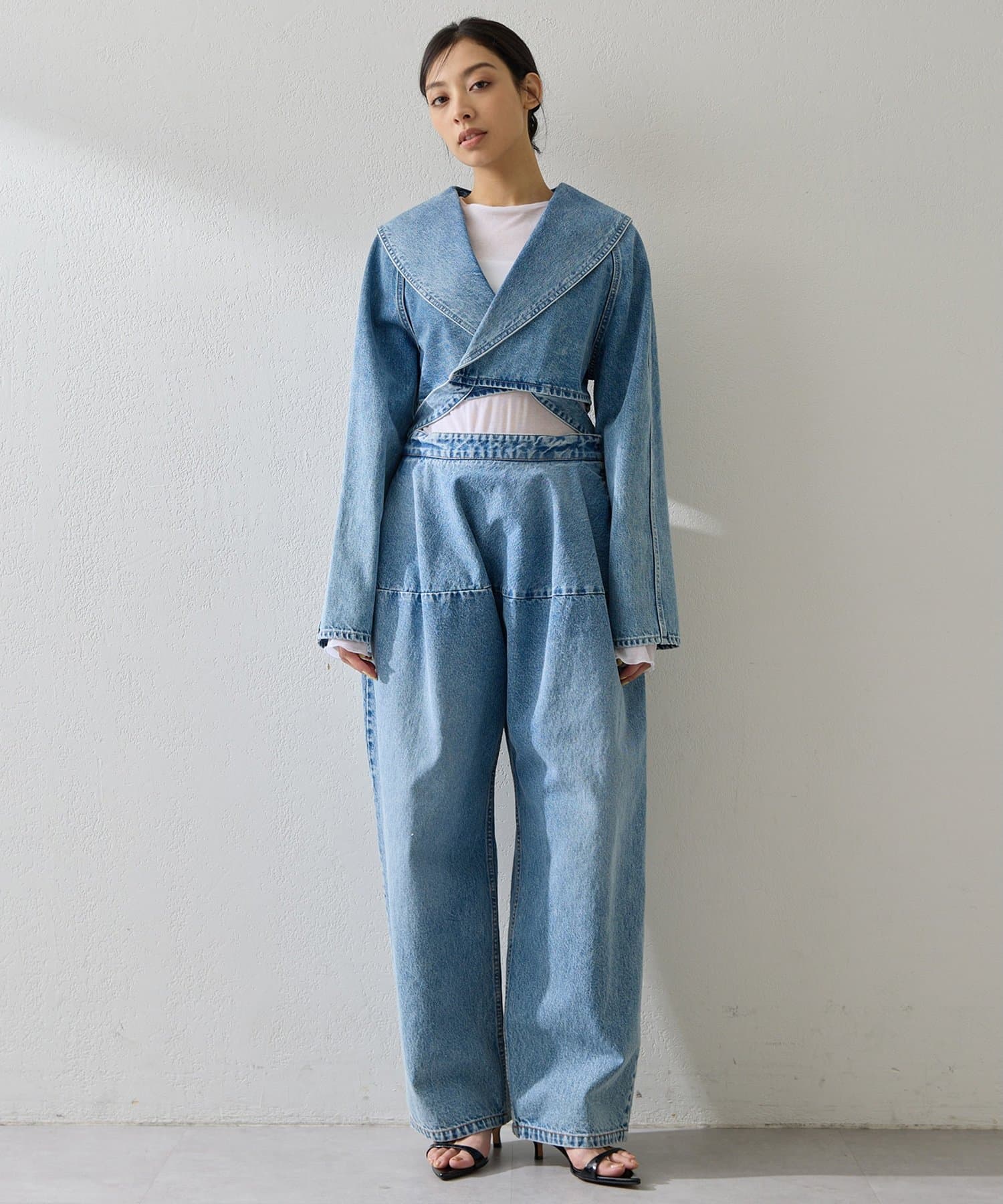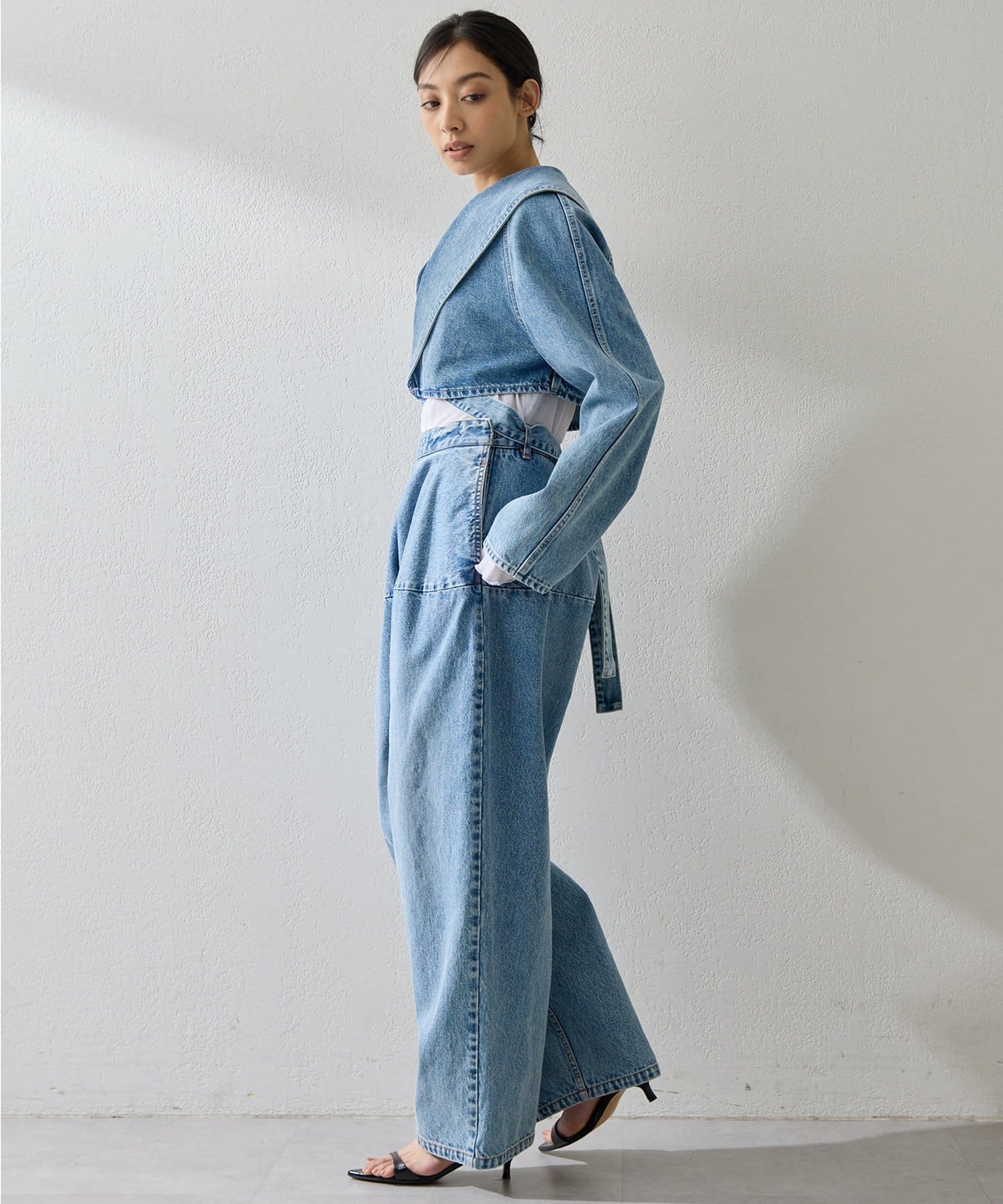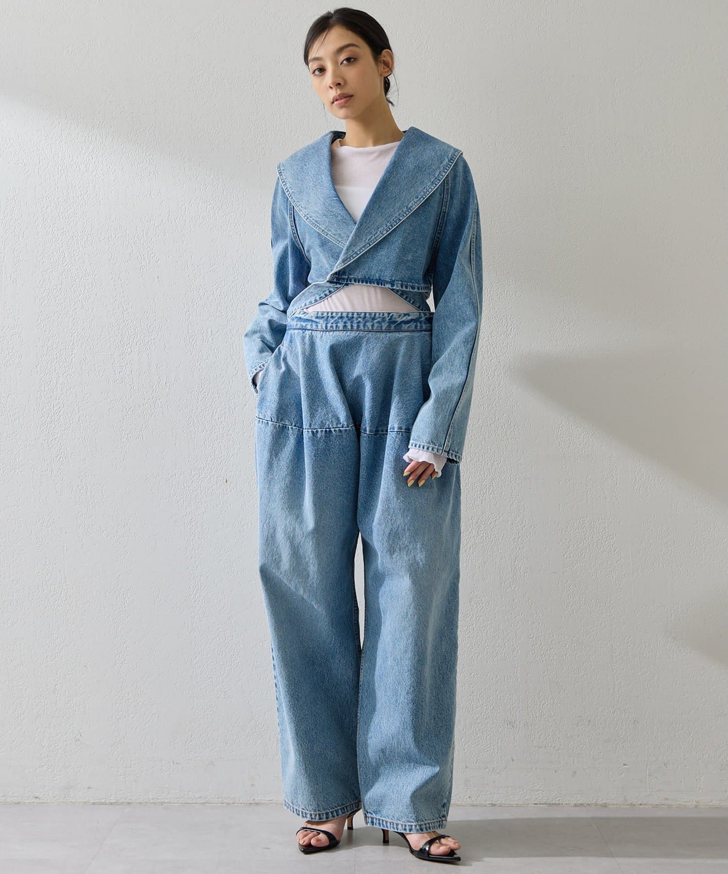 ■程よいハリ感のあるデニム素材を使用し、体のラインを拾いにくくリラックス感がありながらもルーズになりすぎないデザインに。