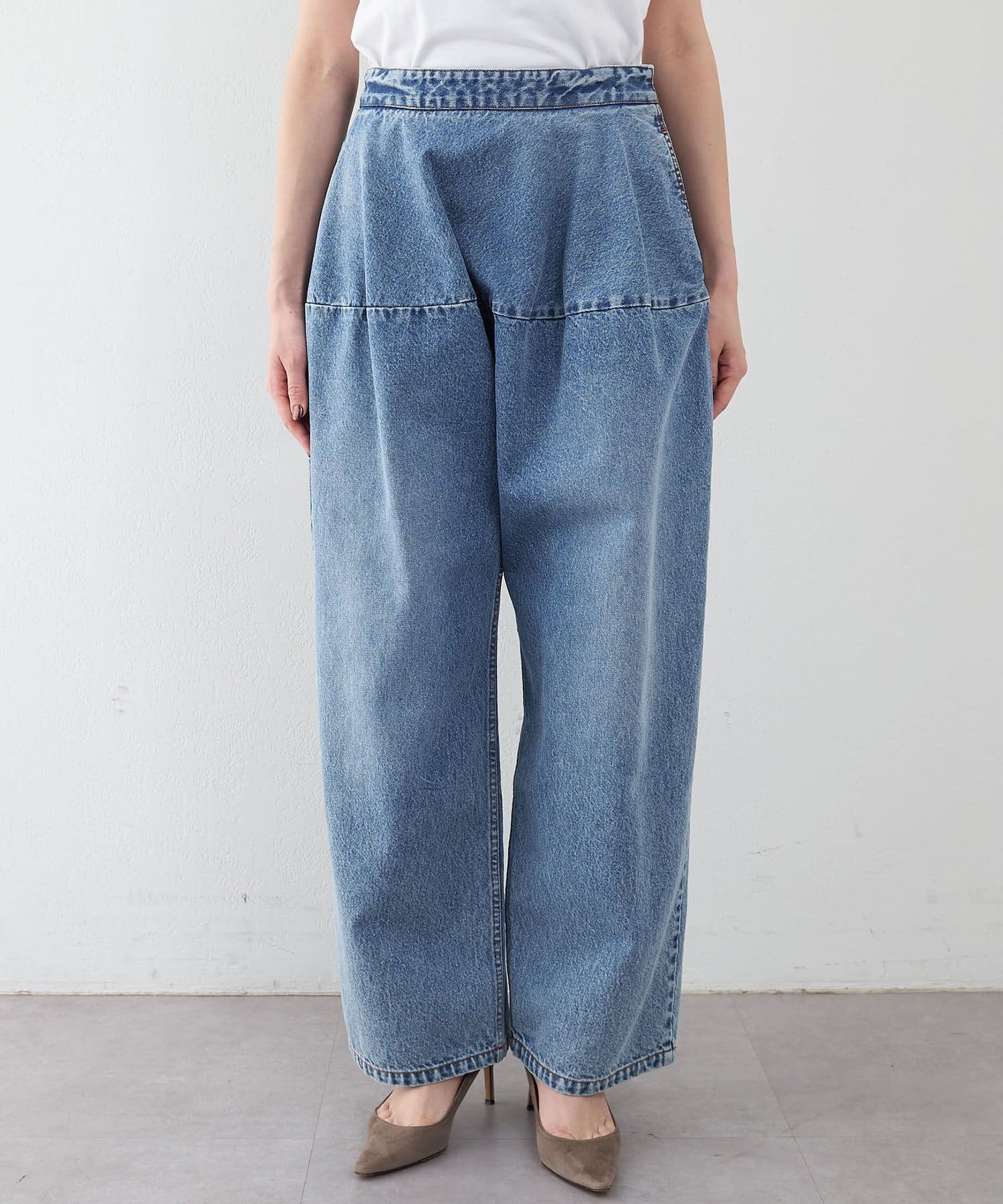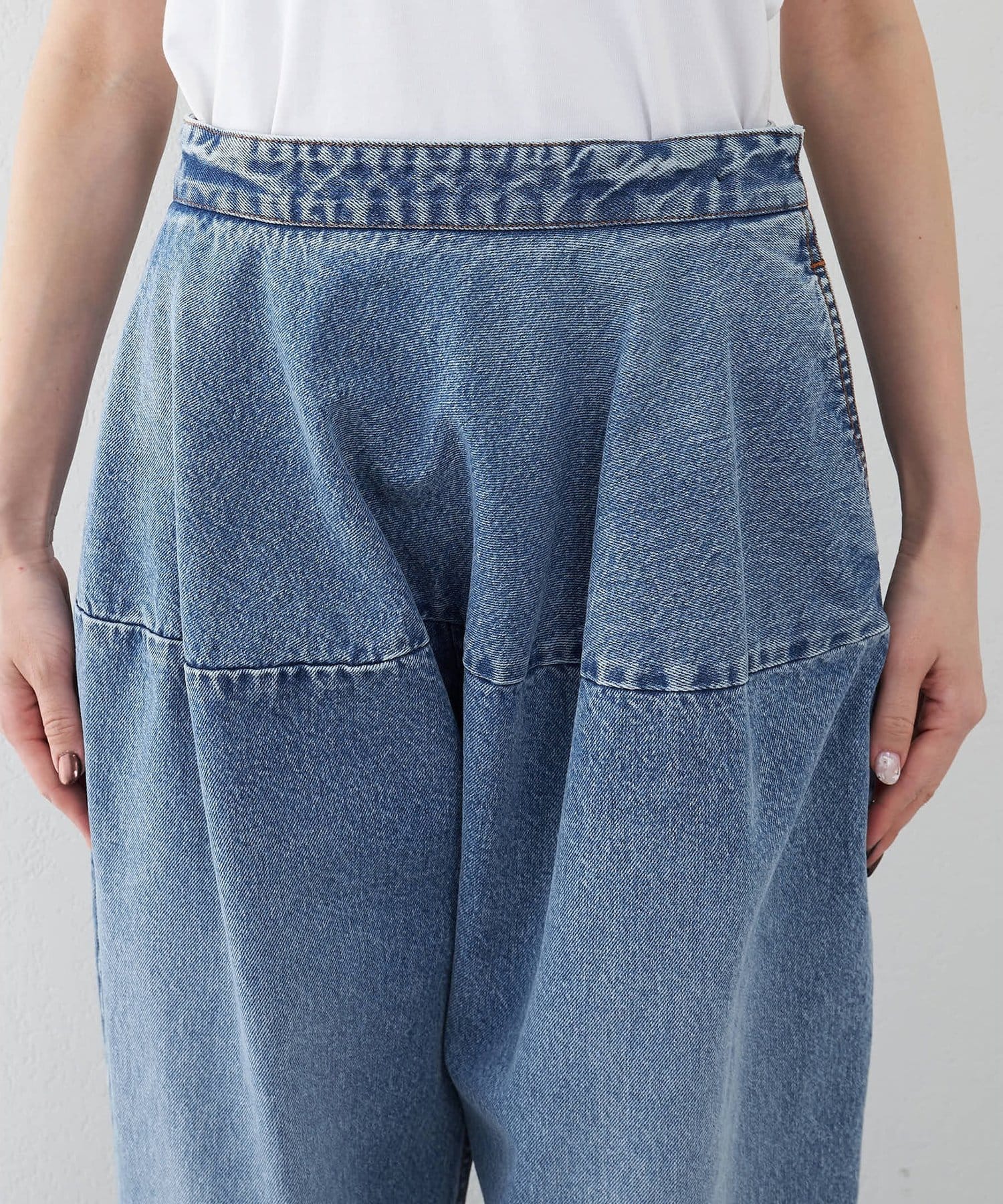 ■丸みのある立体的なシルエットが特徴のバレルデニムパンツ。