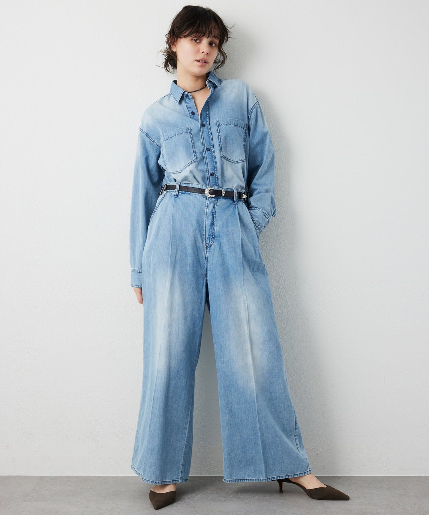 ■同素材のライトオンスデニムパンツ(ブランド品番:WGD1061103A0002)と合わせてオールインワンのようなスタイリングを楽しむのもおすすめ。