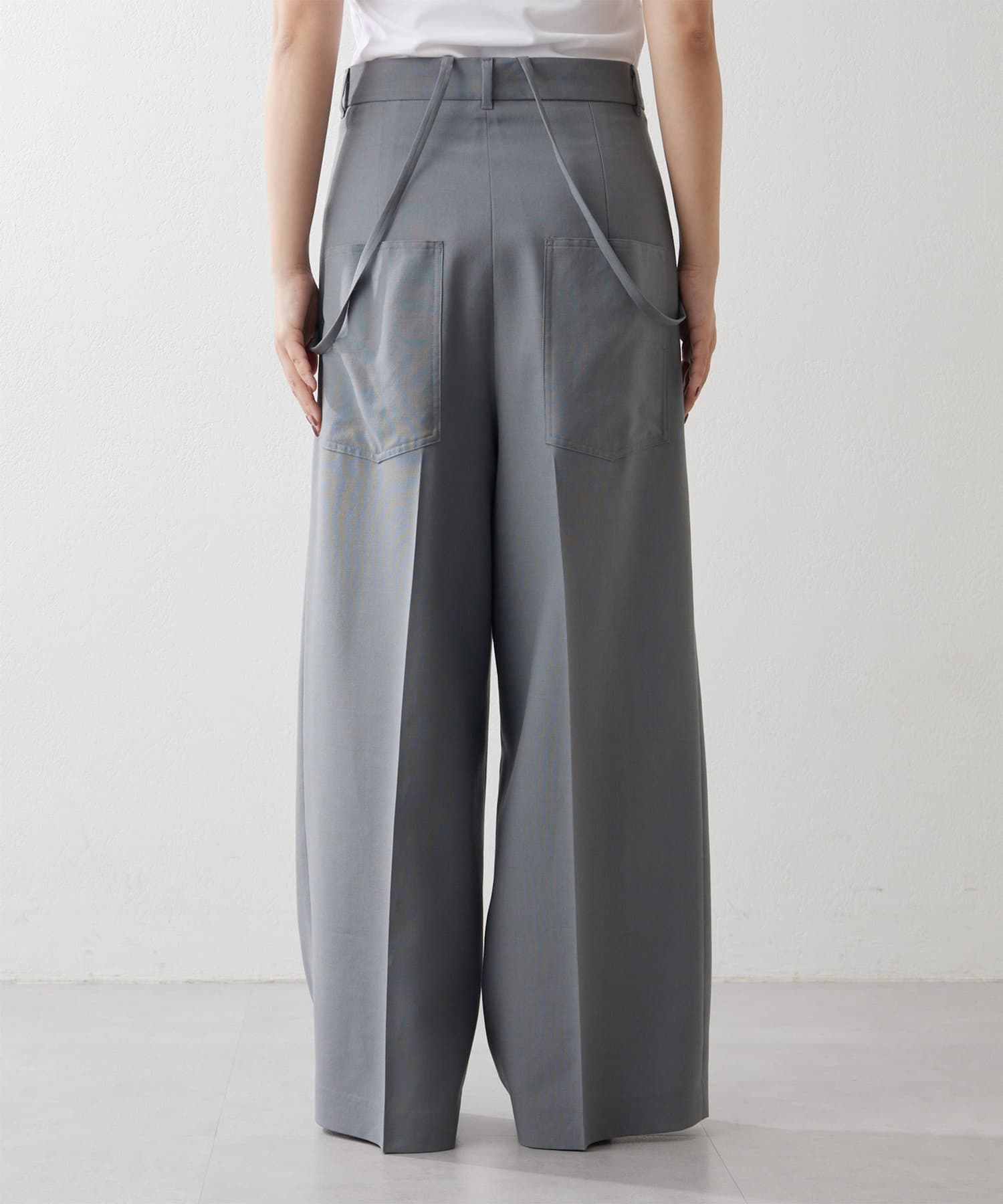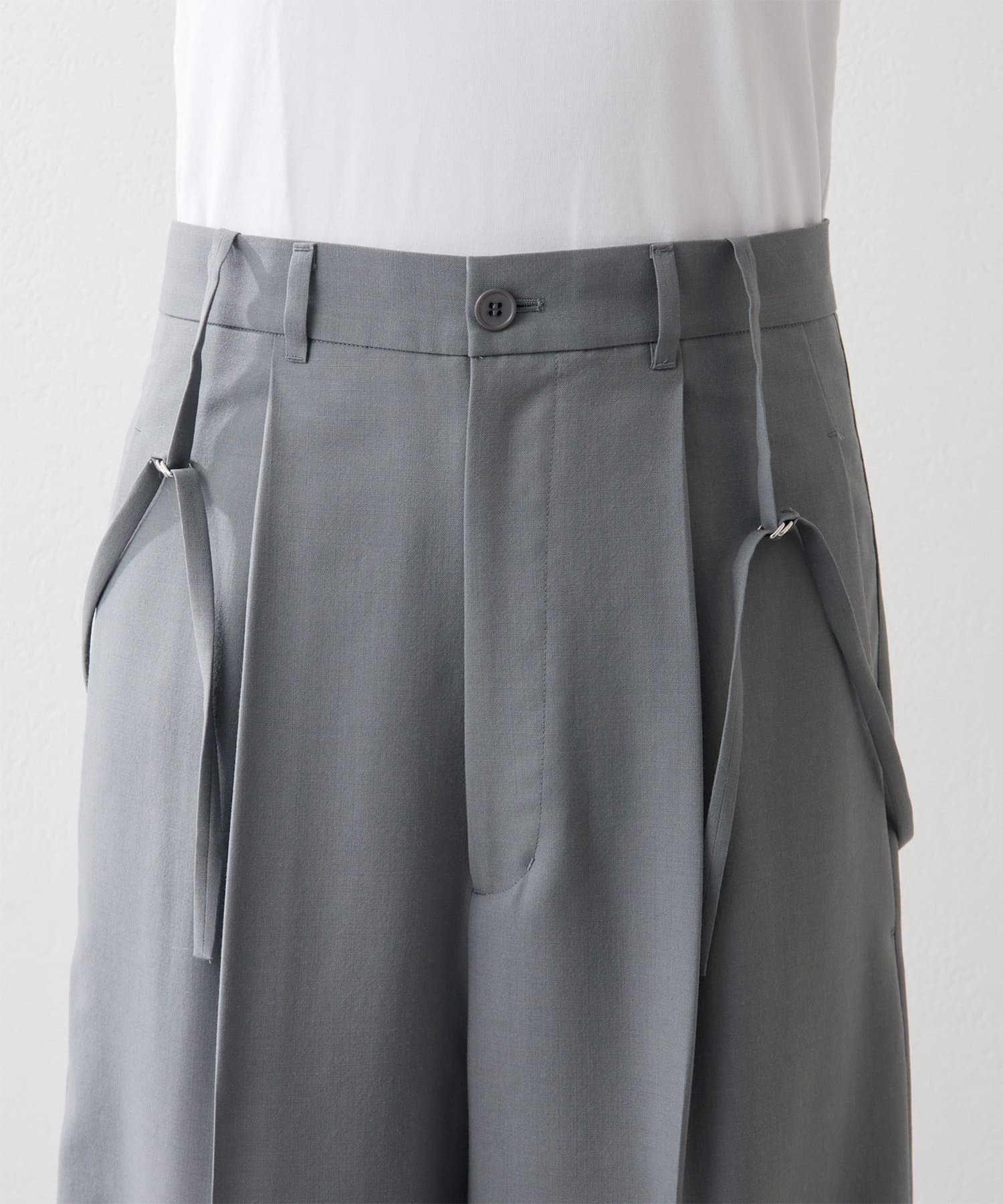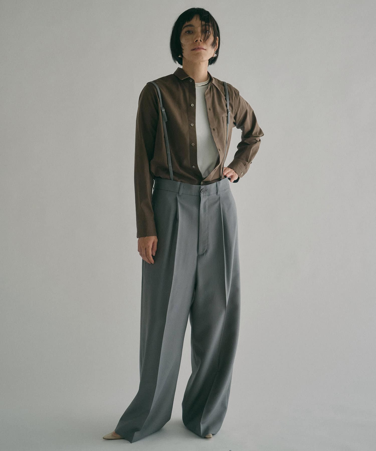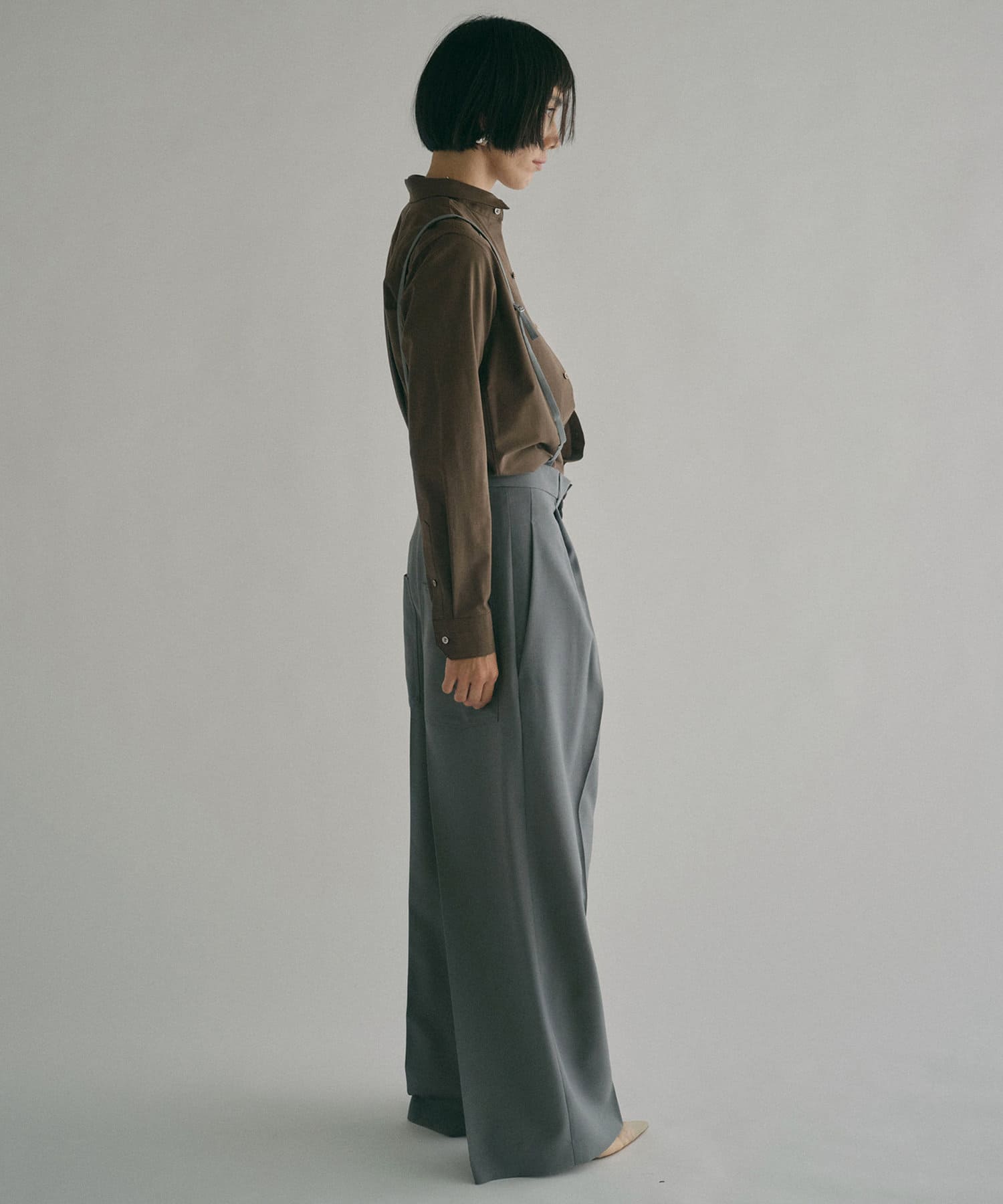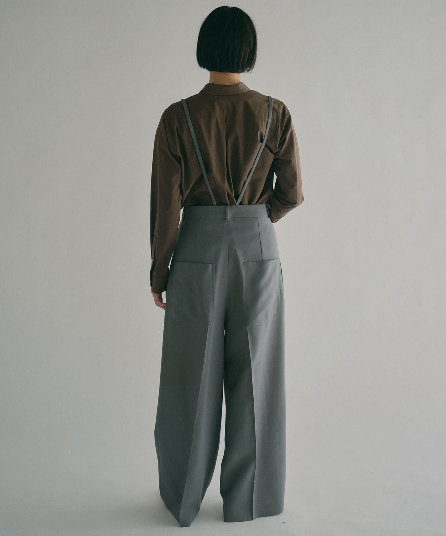■ウール/モヘアポプリンを使用したサスペンダーパンツ。