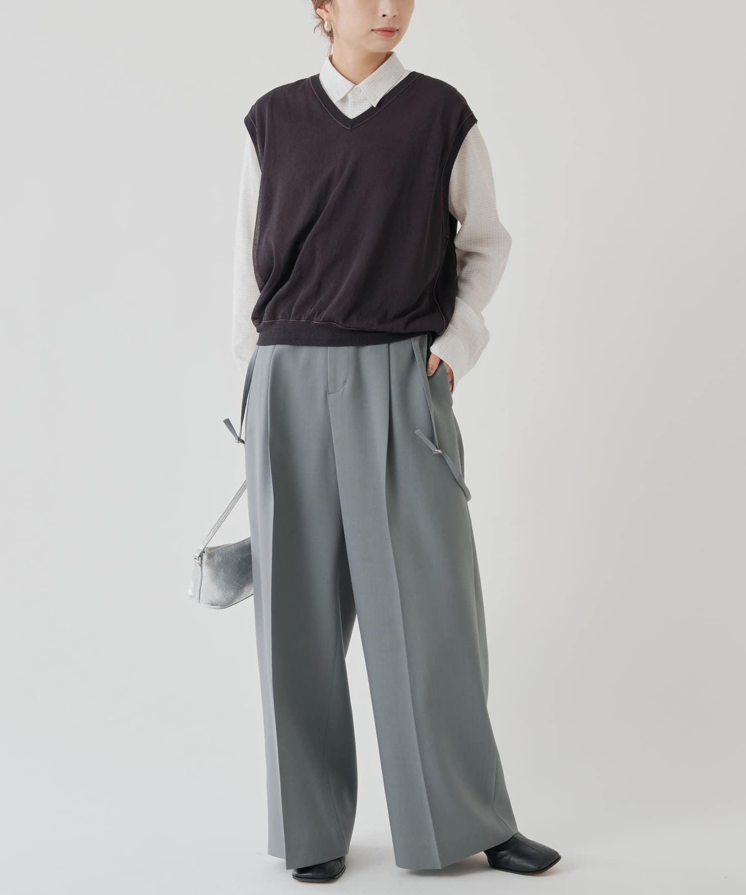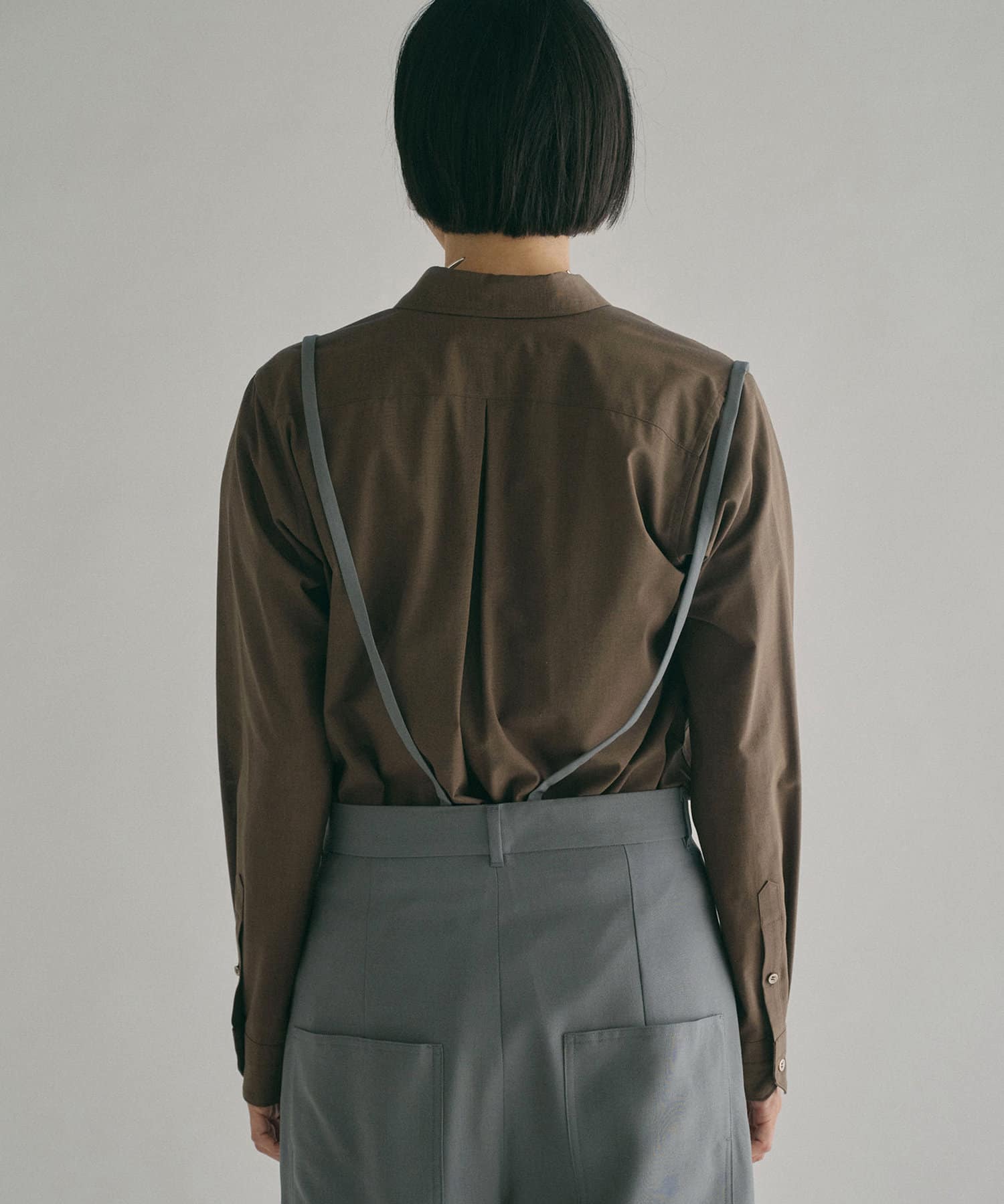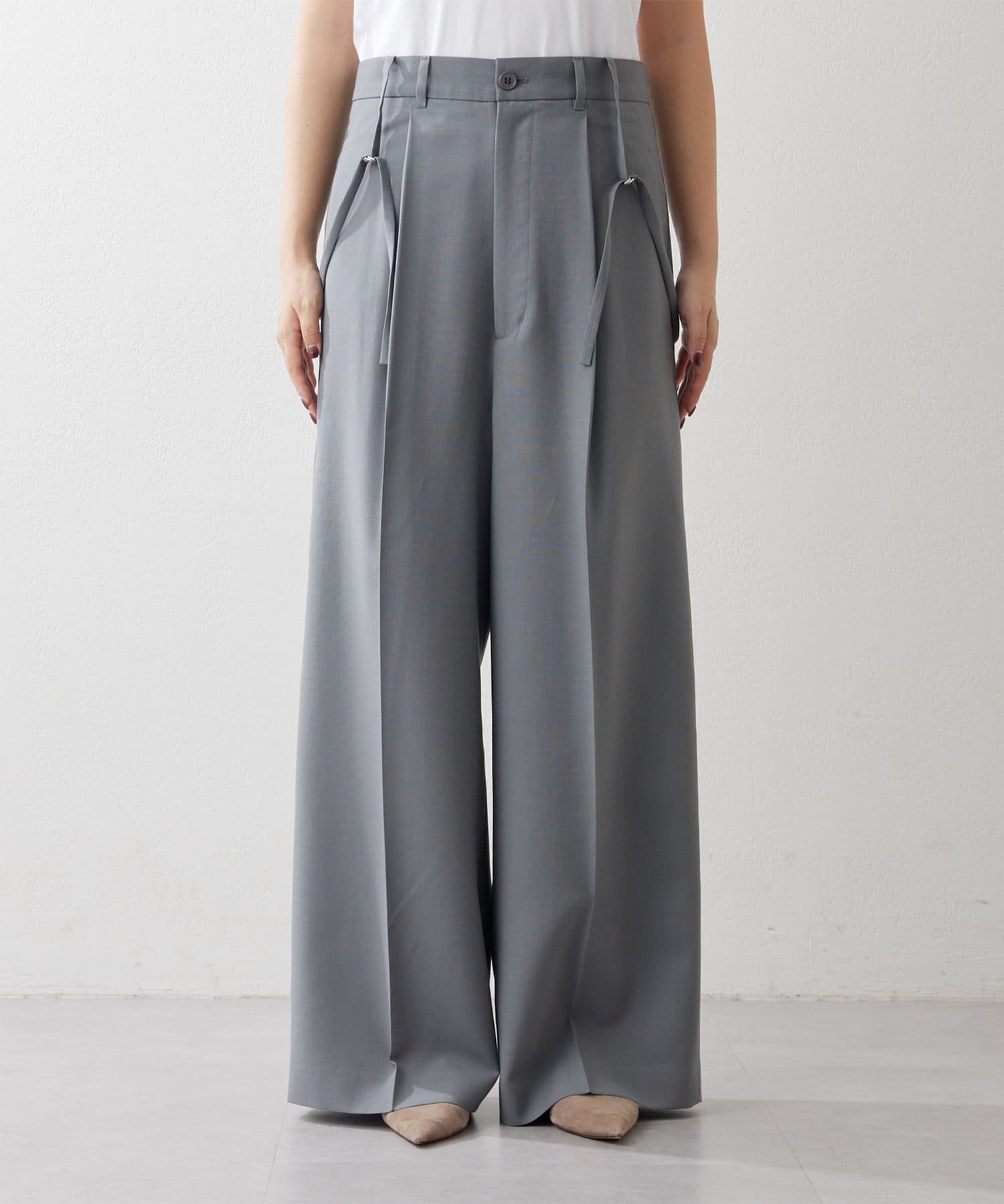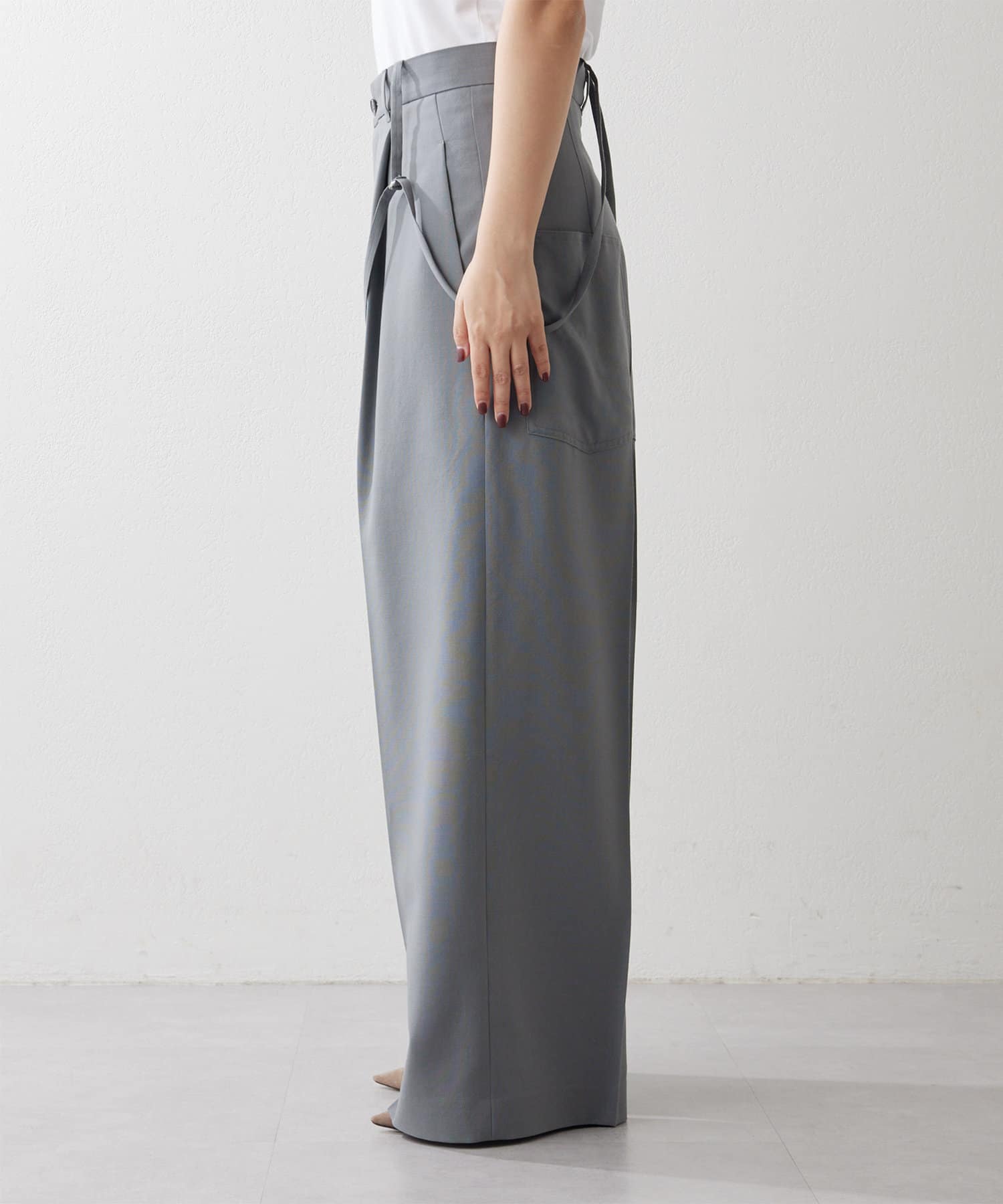 ■ウール/モヘアポプリンを使用したサスペンダーパンツ。