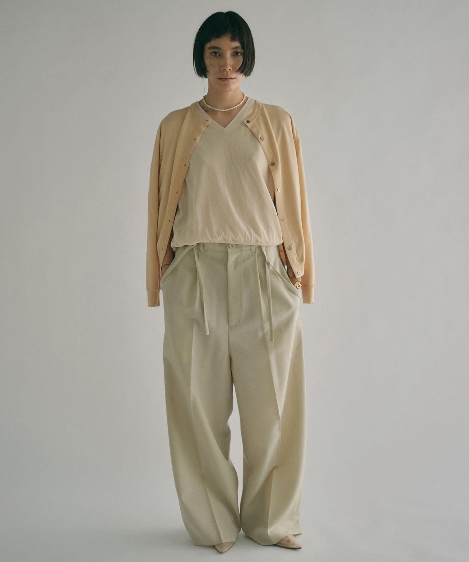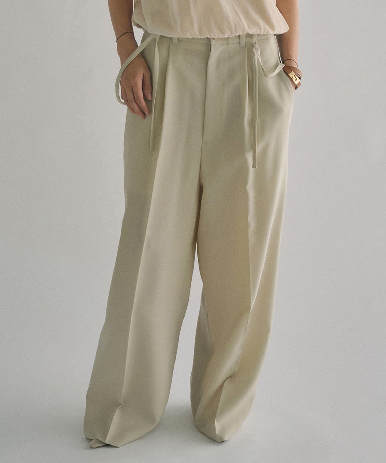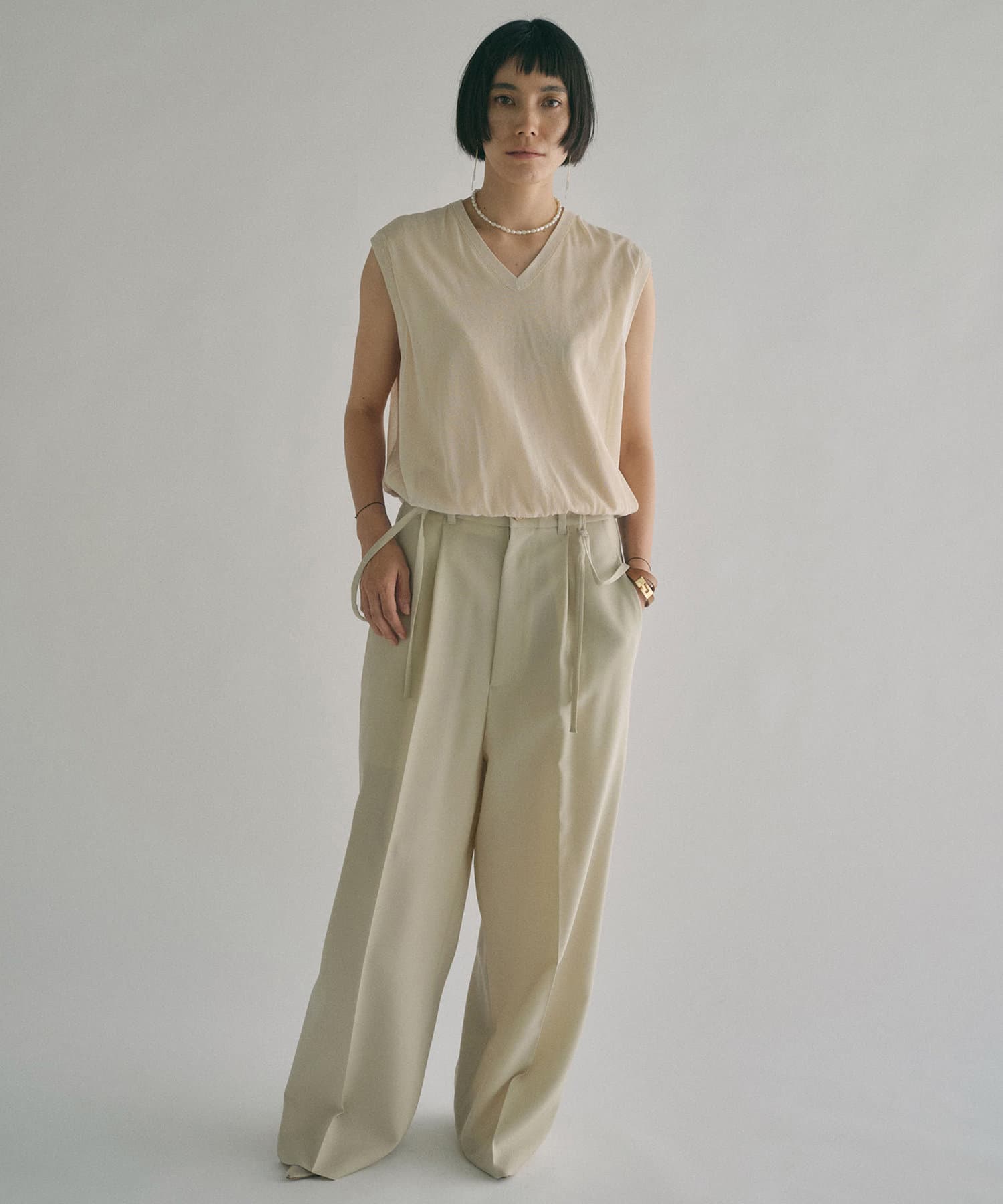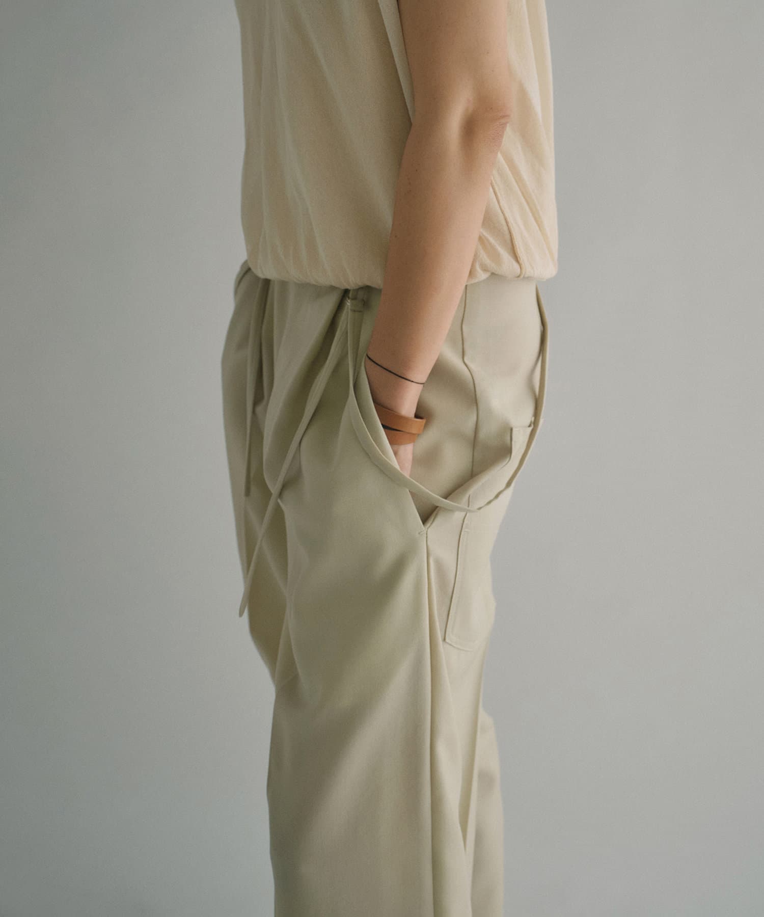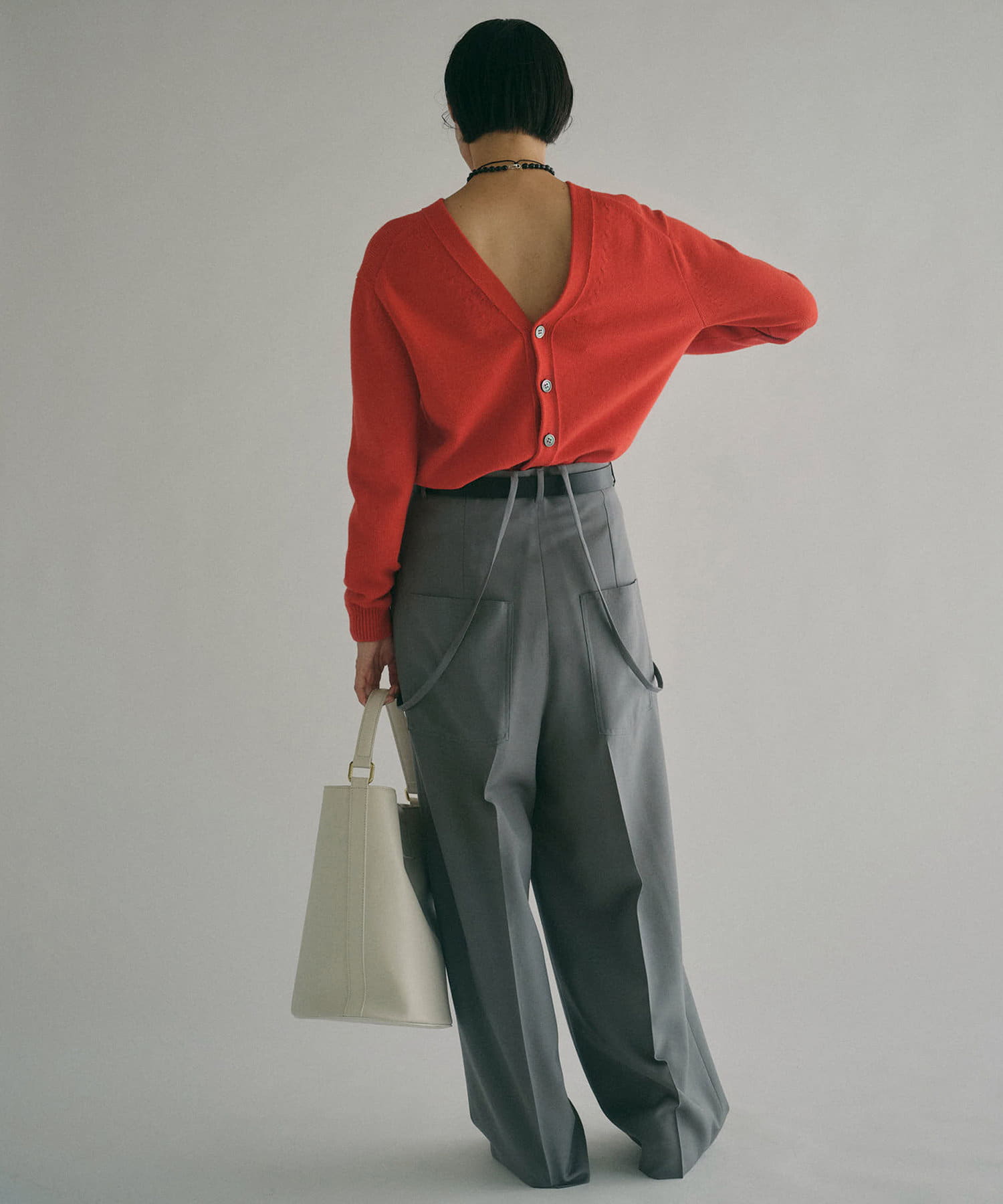 ■ウール/モヘアポプリンを使用したサスペンダーパンツ。