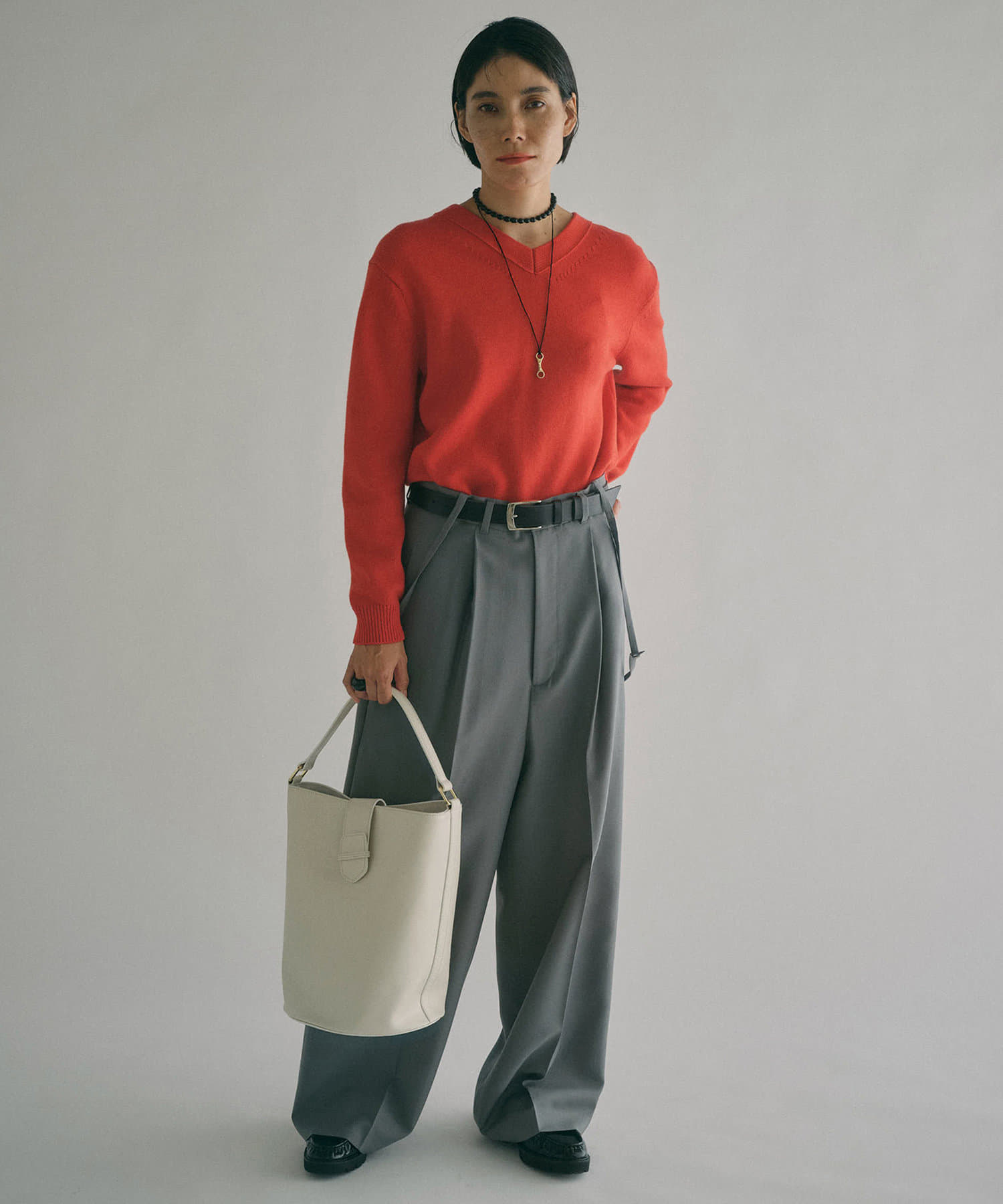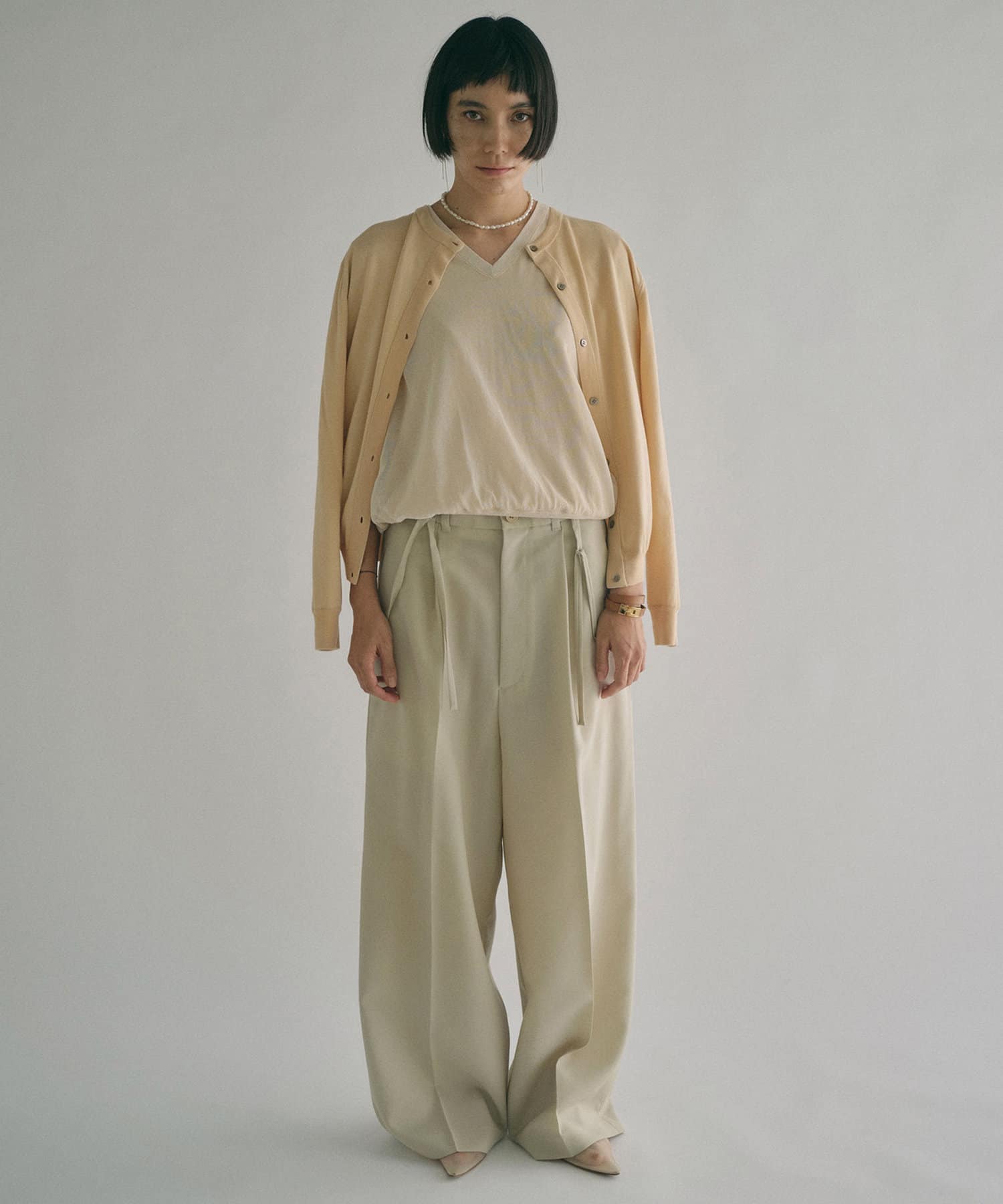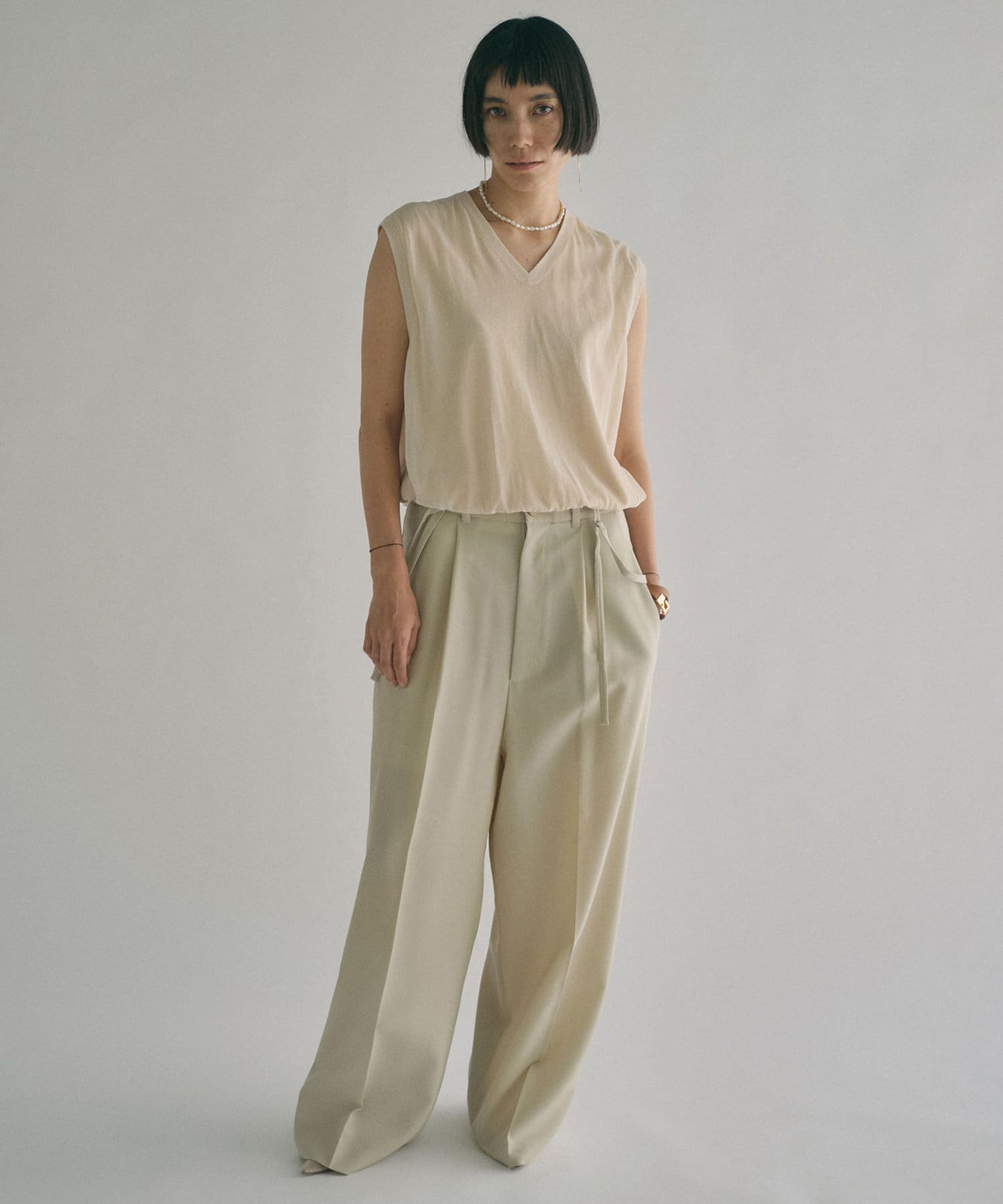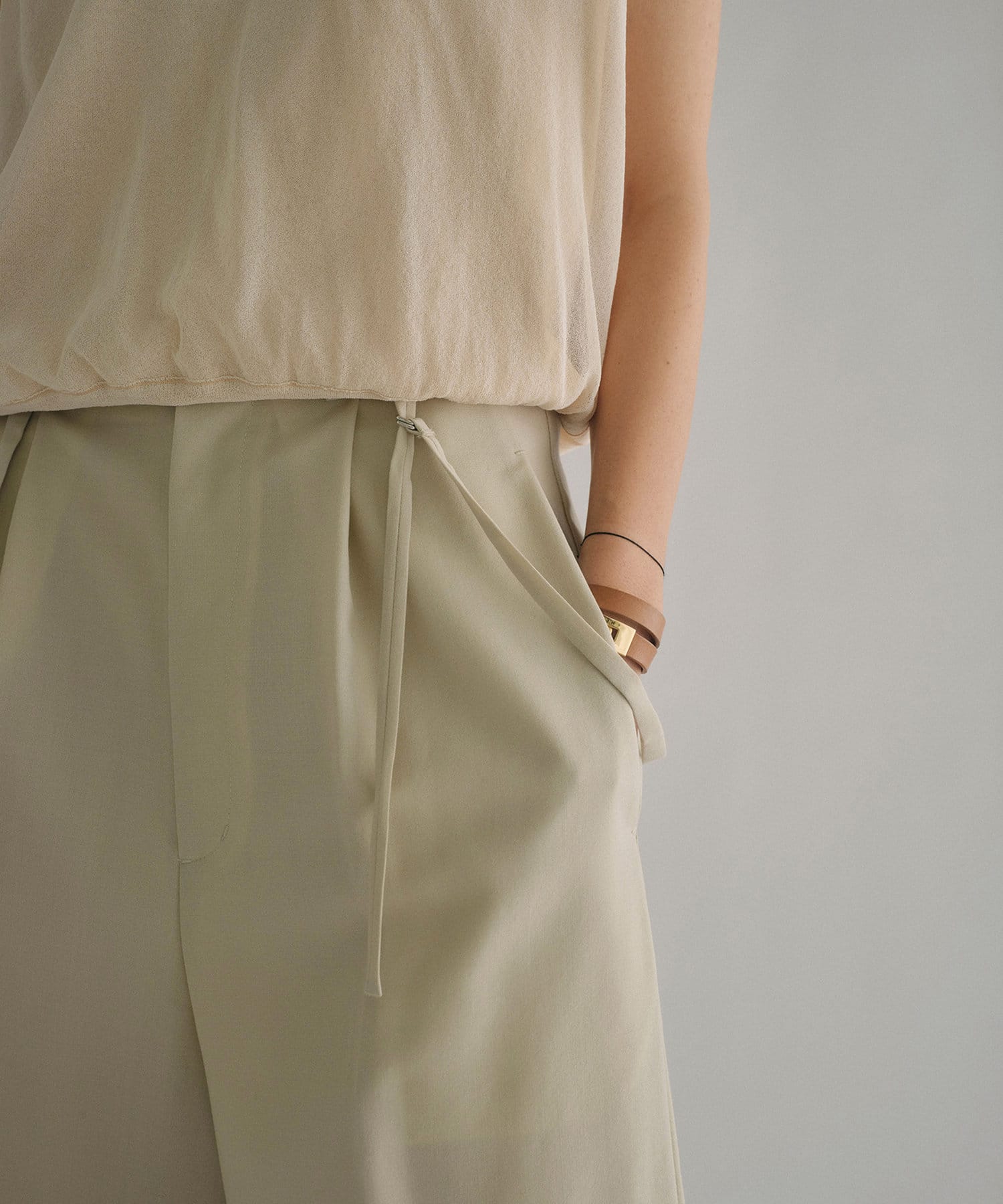 ■ウール/モヘアポプリンを使用したサスペンダーパンツ。