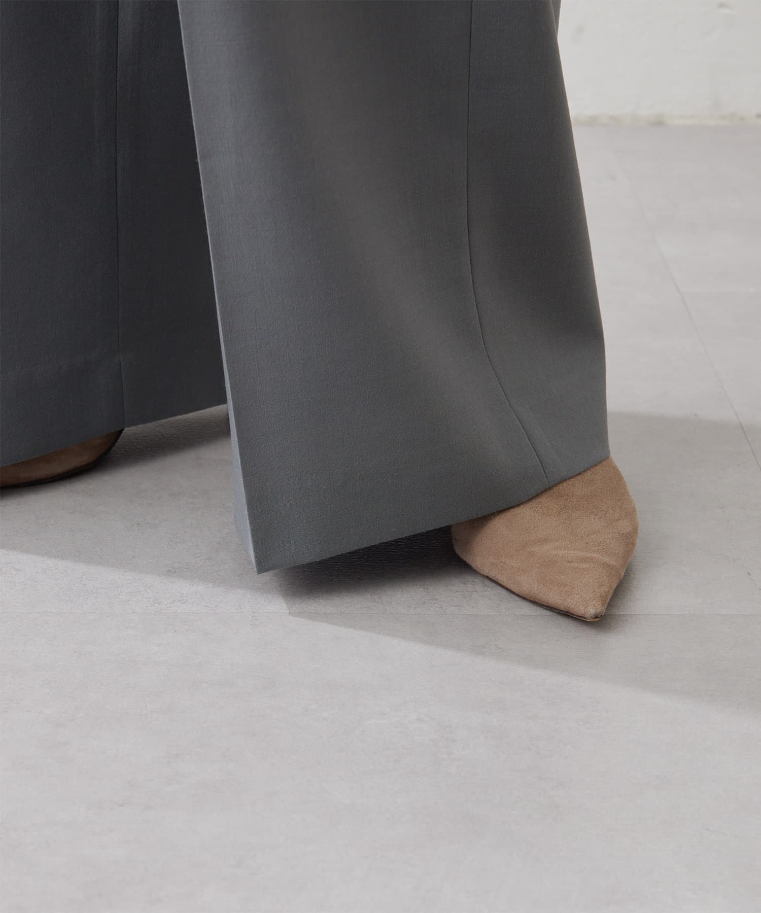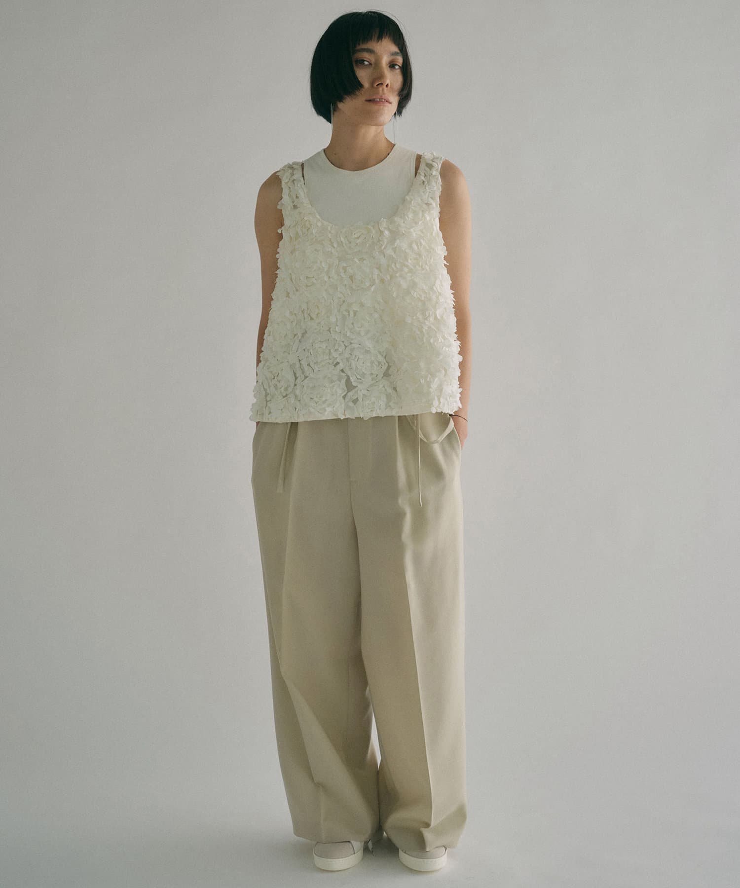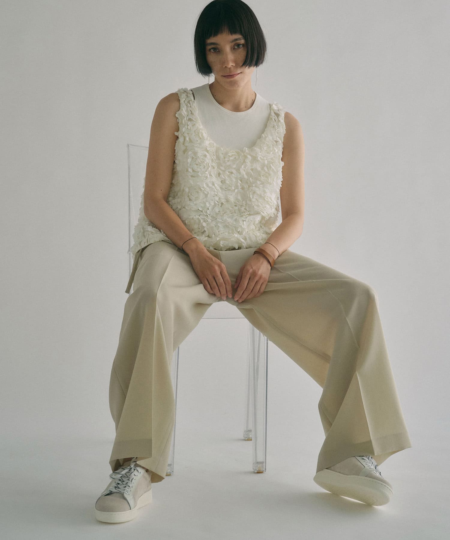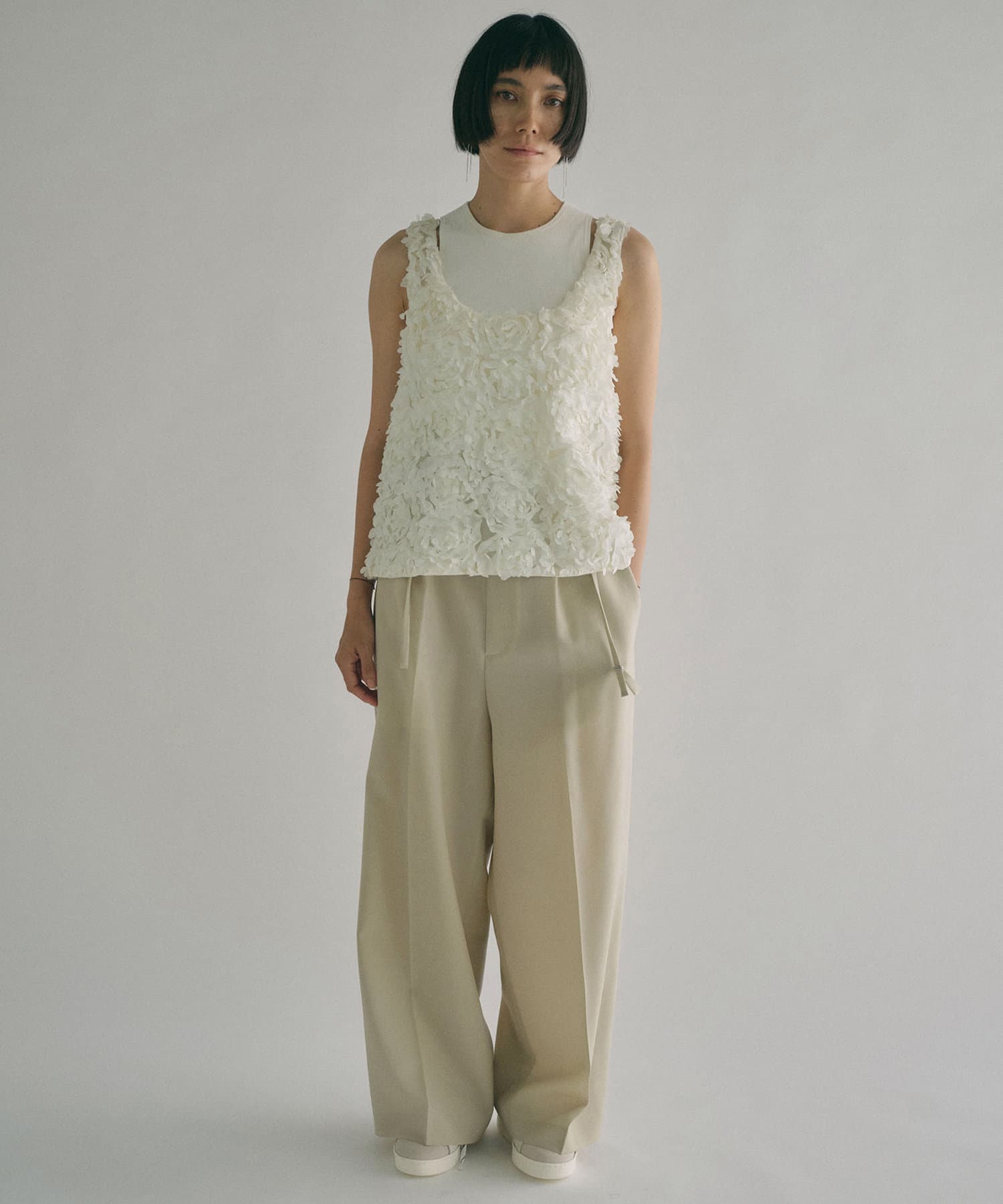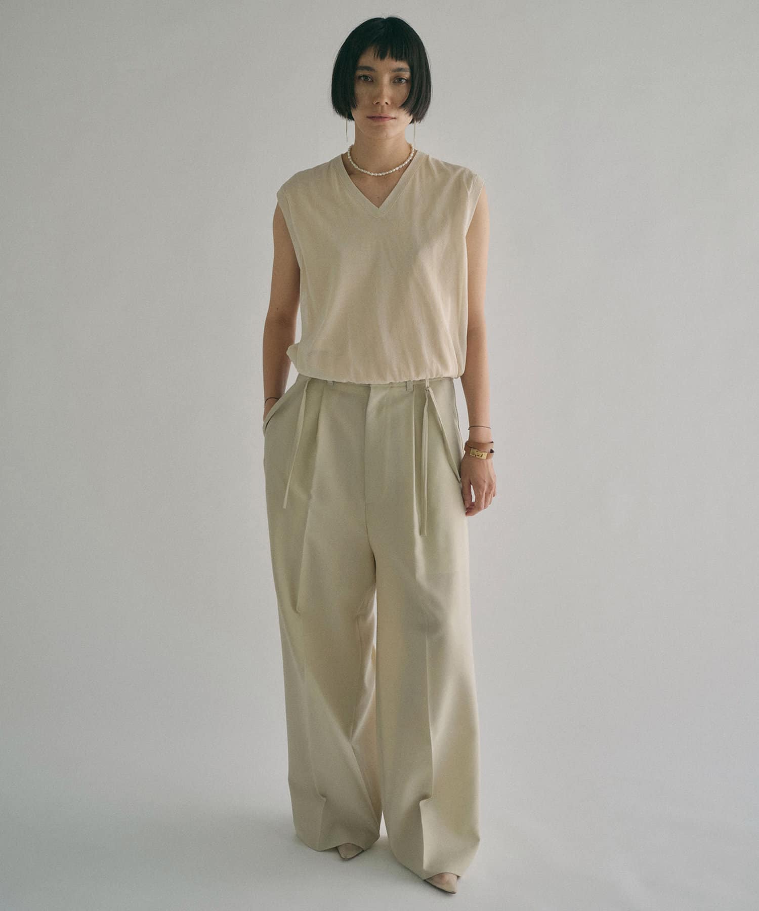 ■ウール/モヘアポプリンを使用したサスペンダーパンツ。