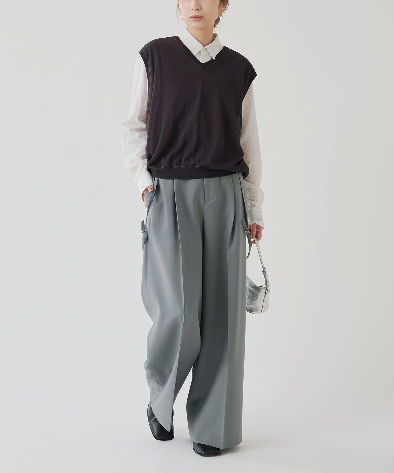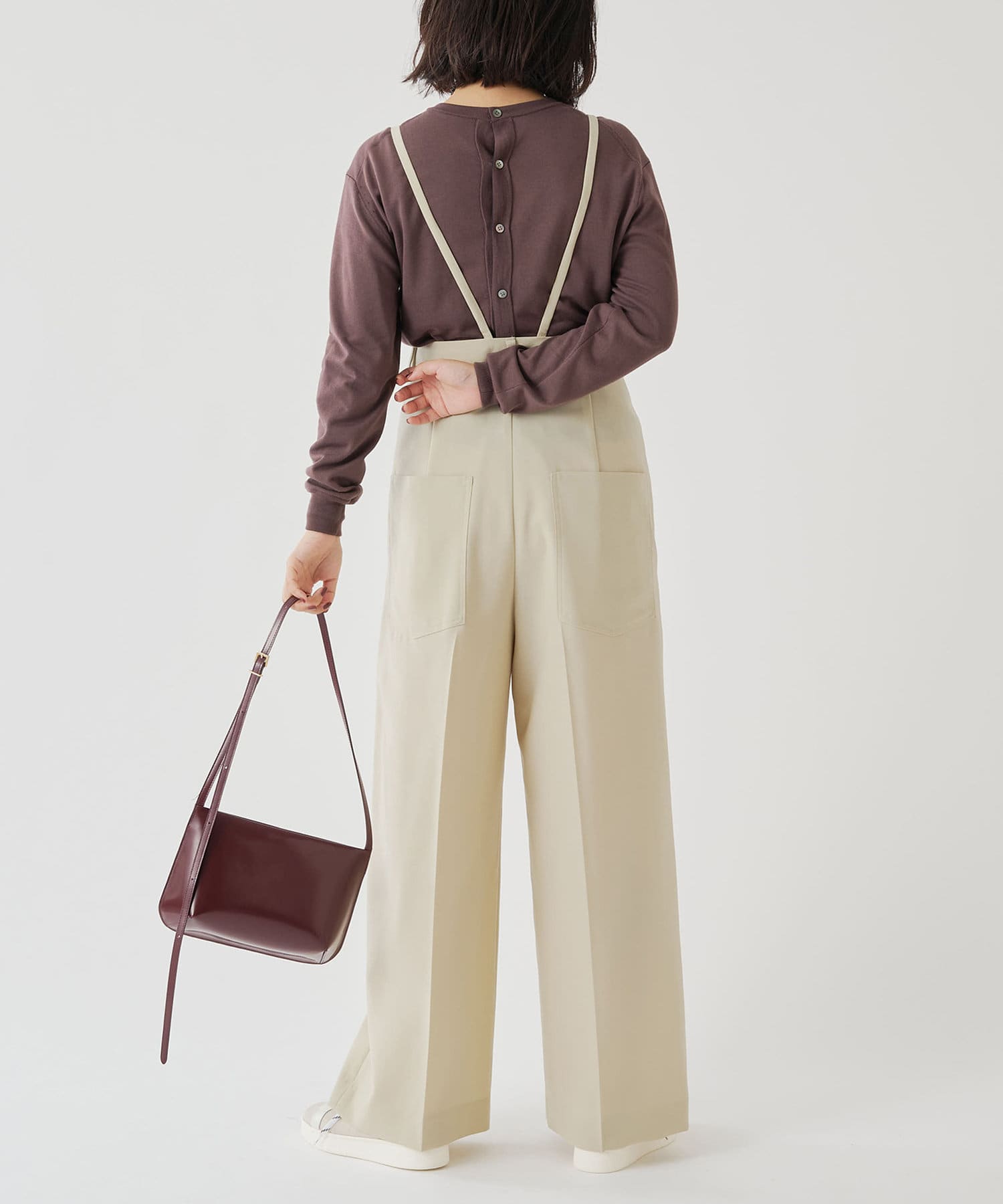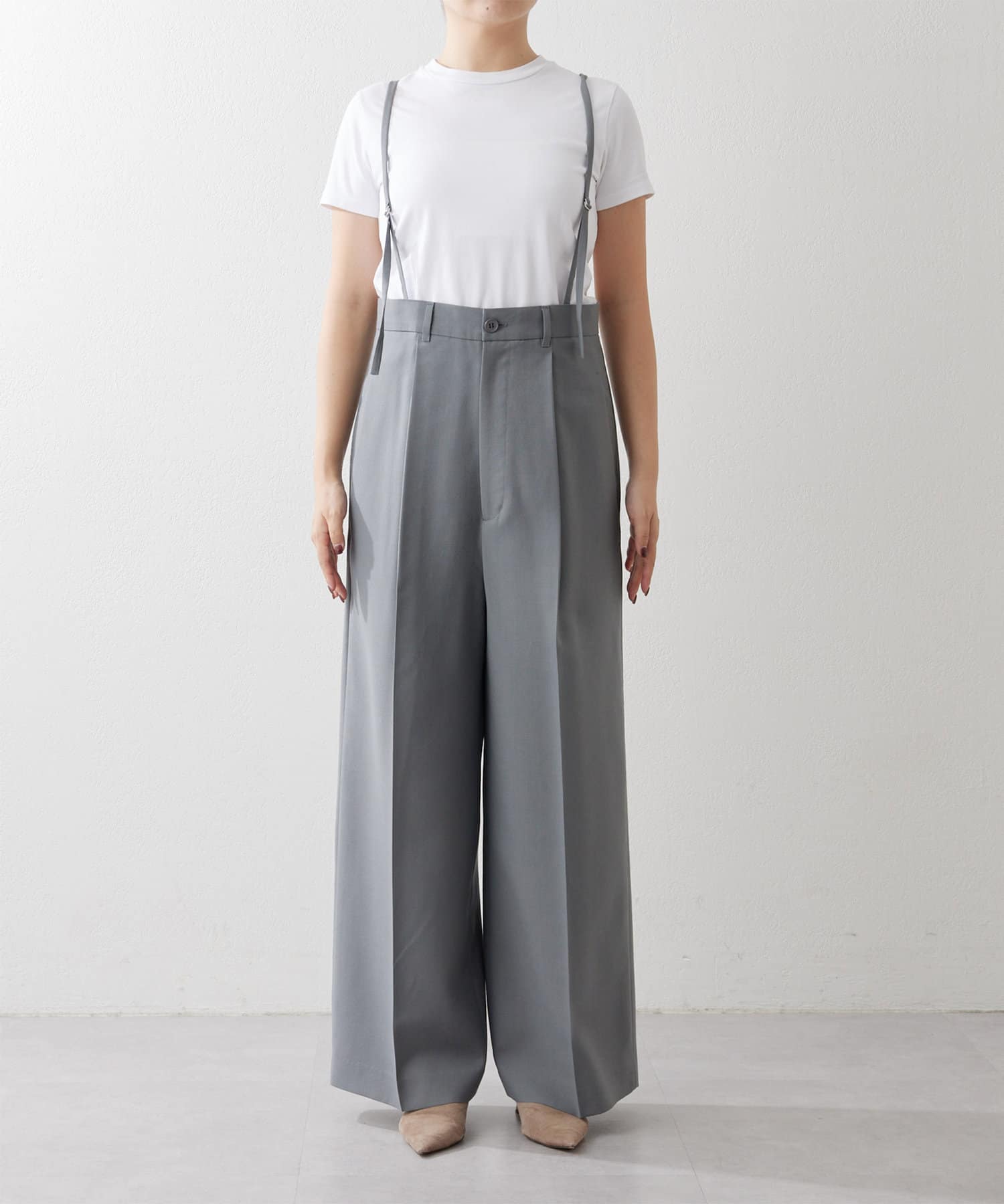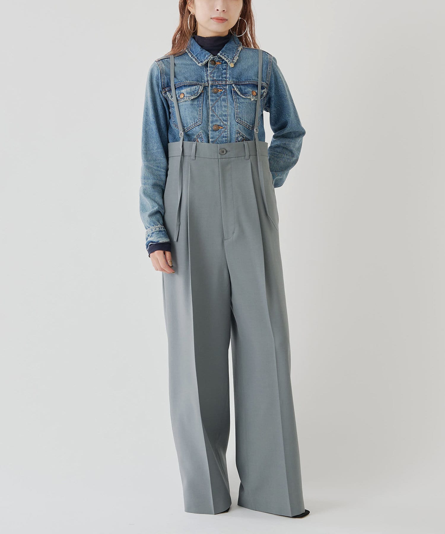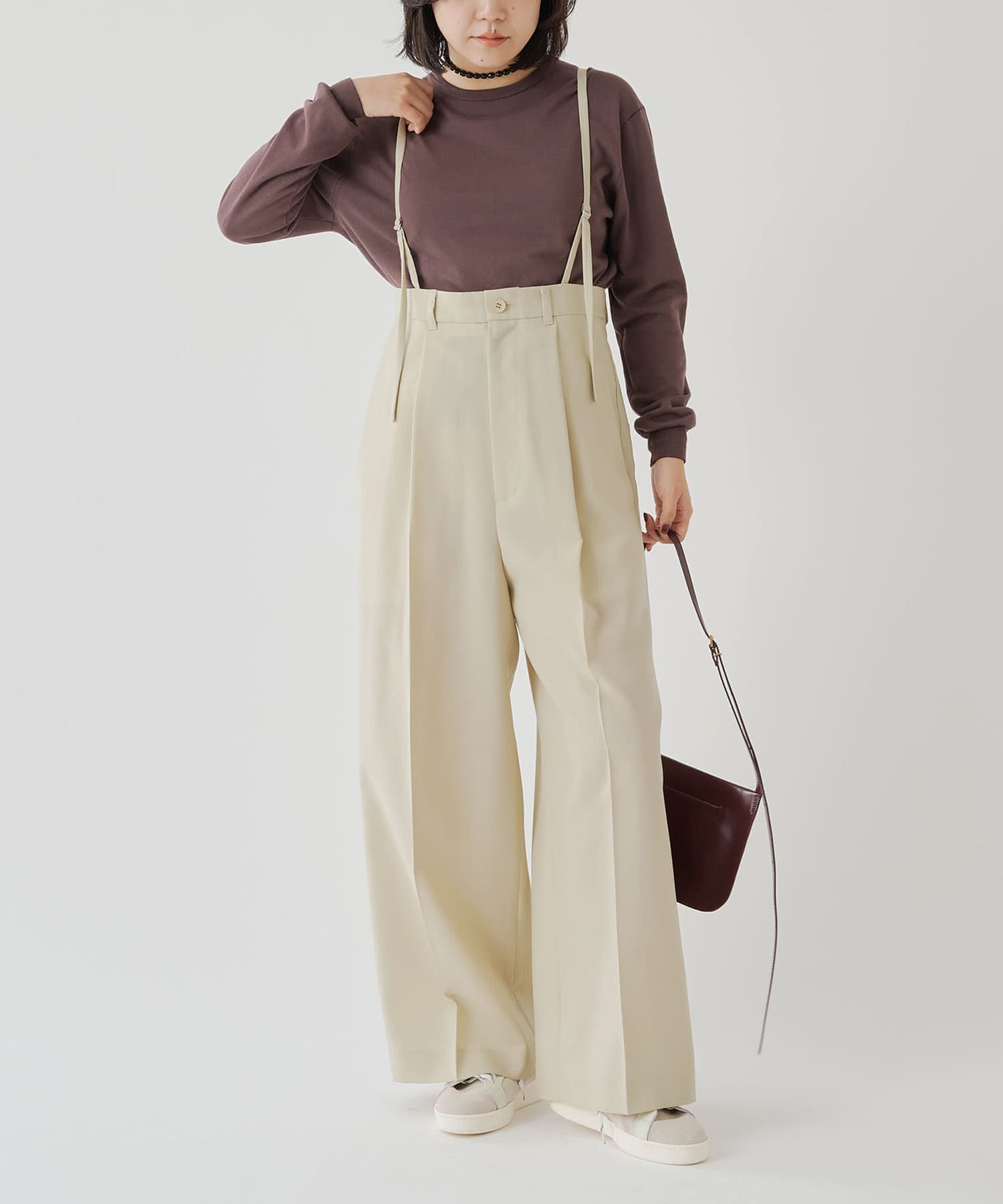メンズライクな要素を取り入れたサスペンダーパンツ