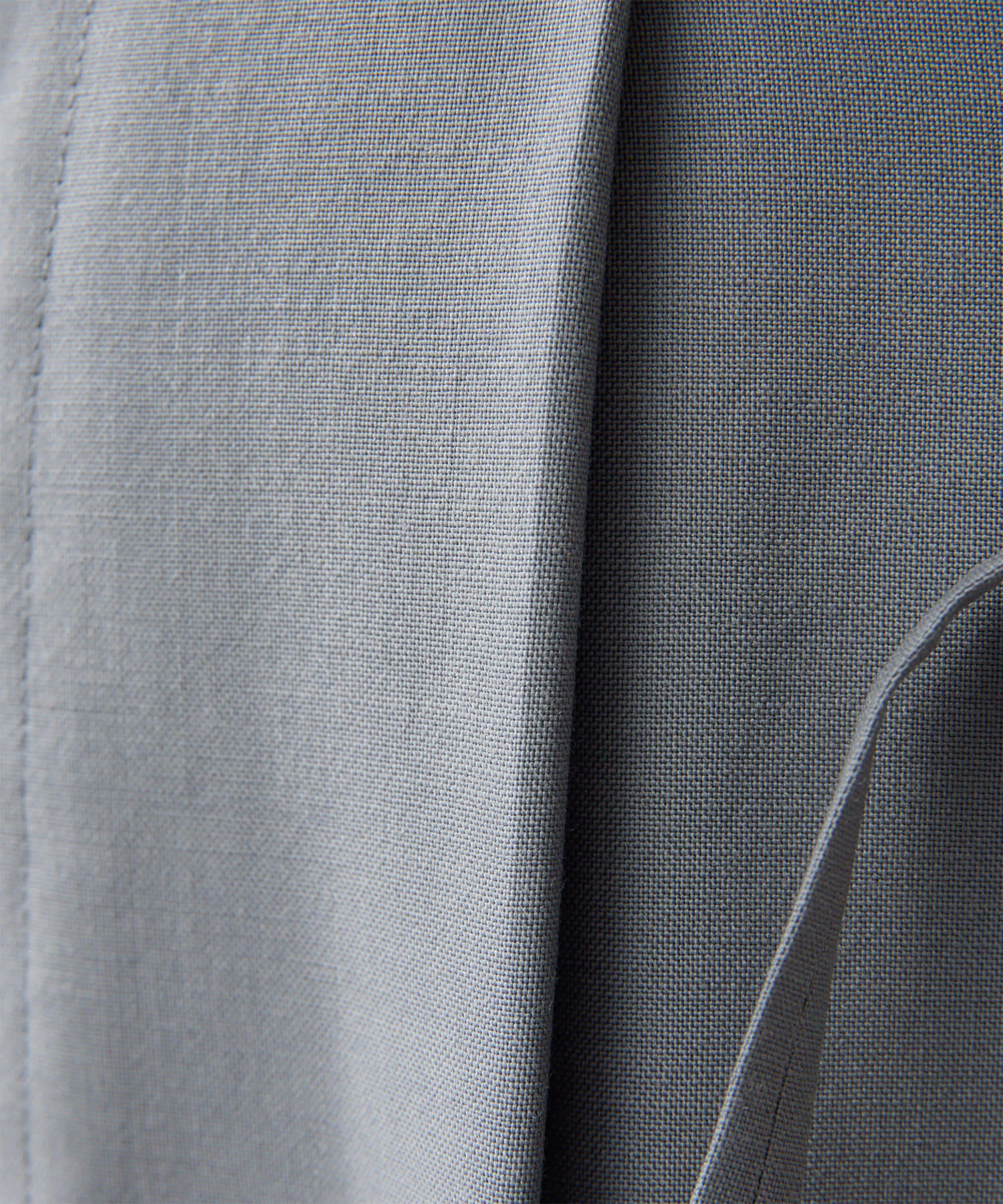 ■クラシックなメンズの紺ブレに使用される生地は、加工でウレタン含侵を加える事でハリ感・膨らみに加え反発感をもつのが特徴。