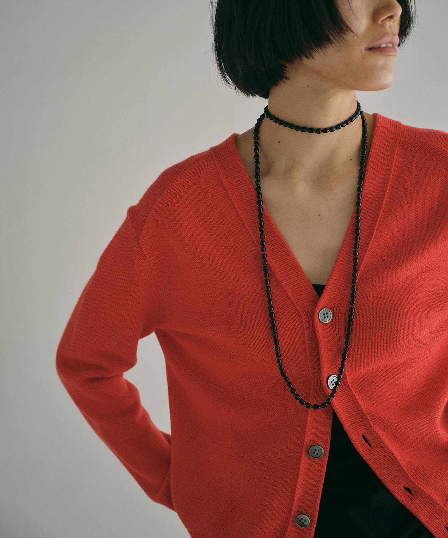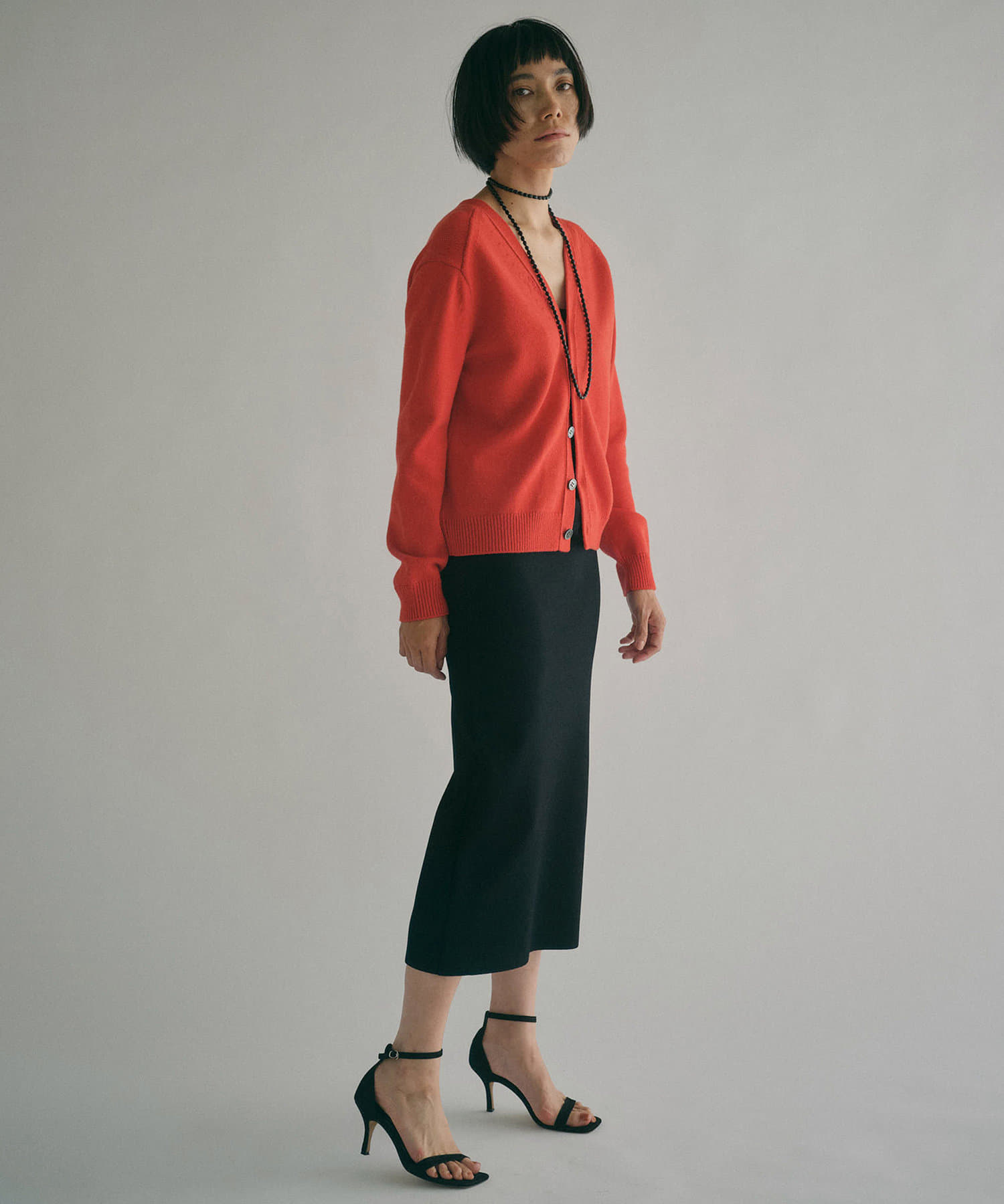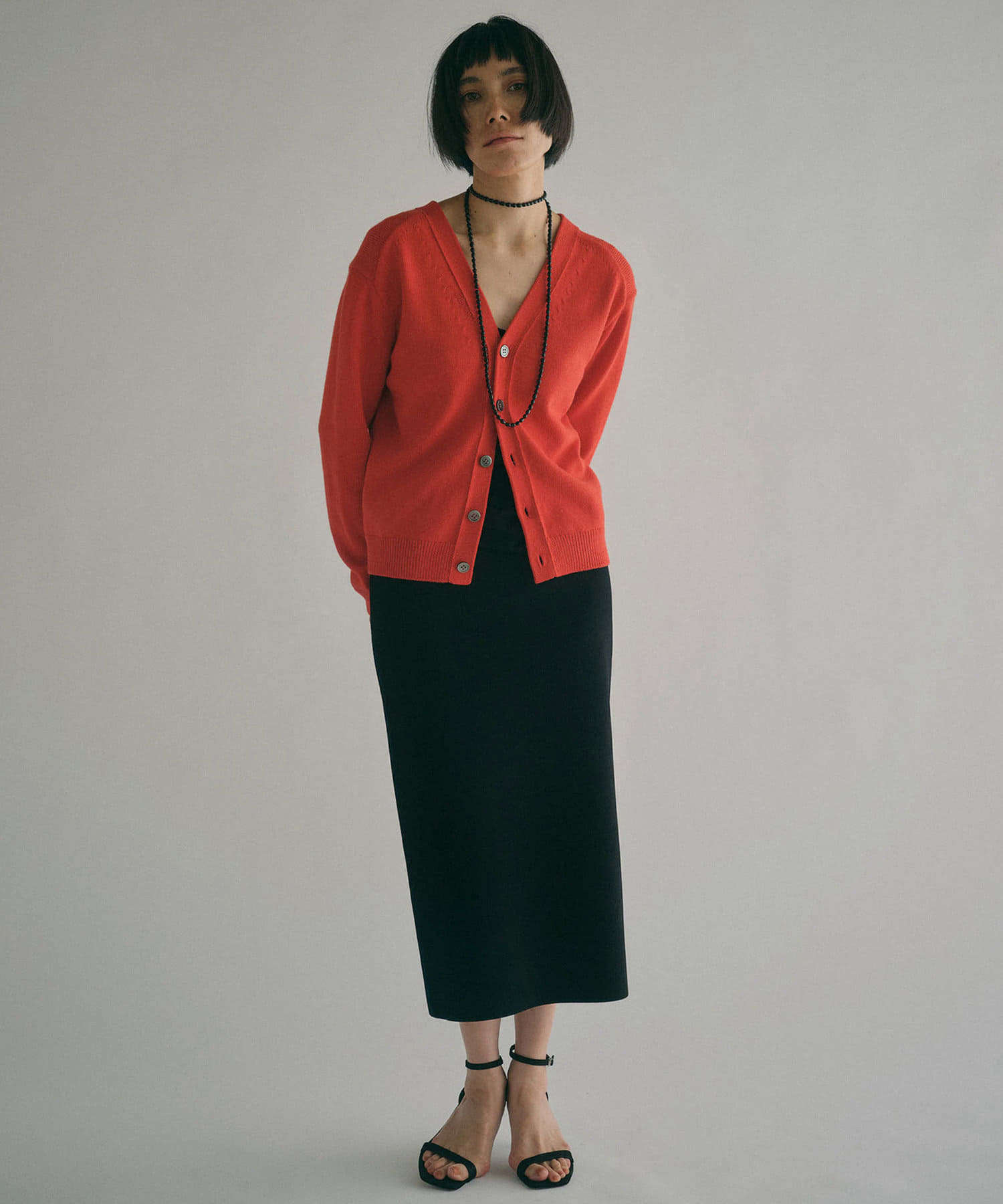 レッド:スタイリングに華やかさを添える鮮やかなレッド。