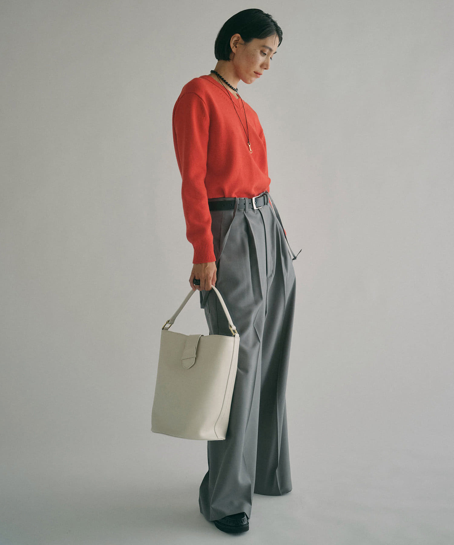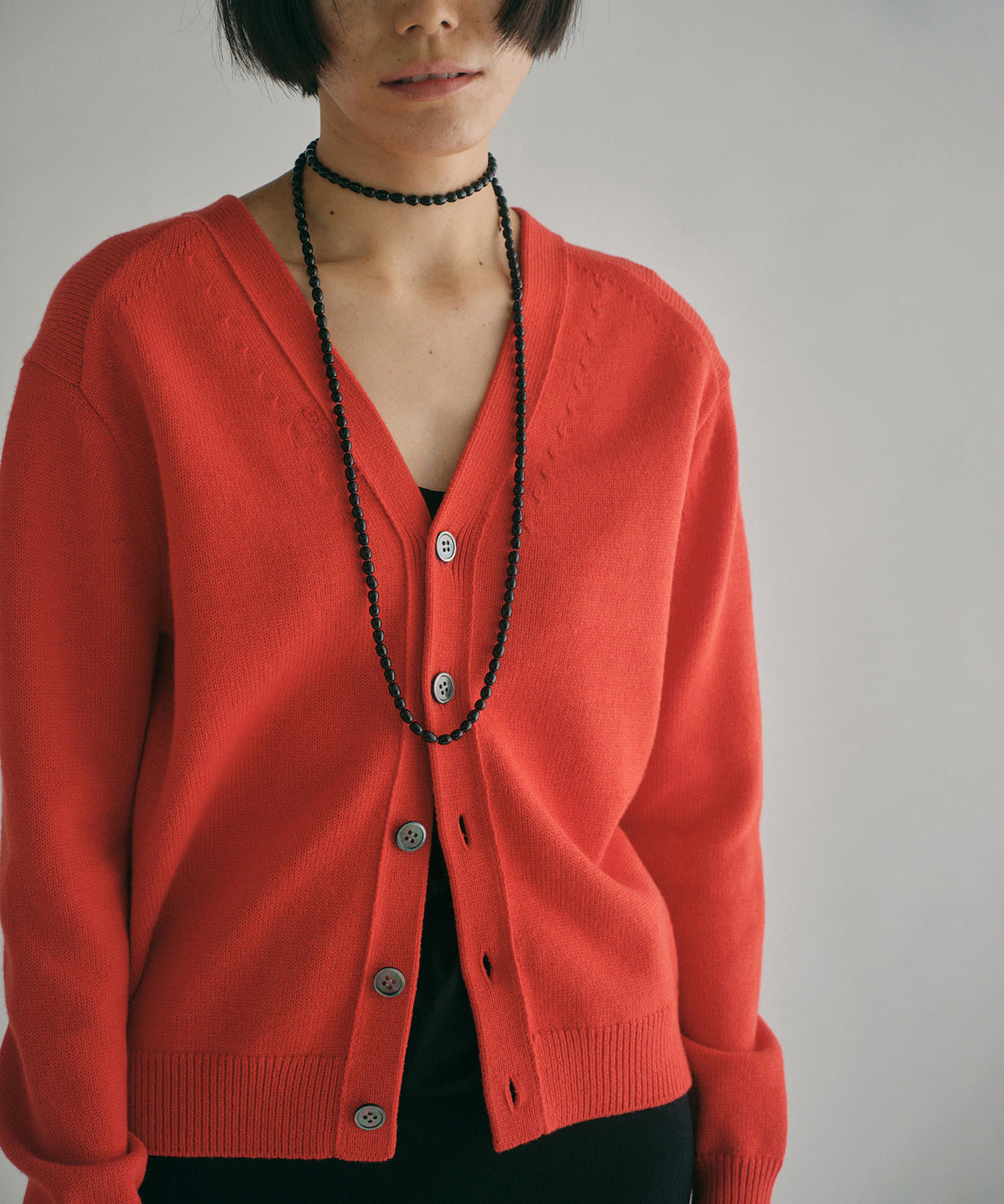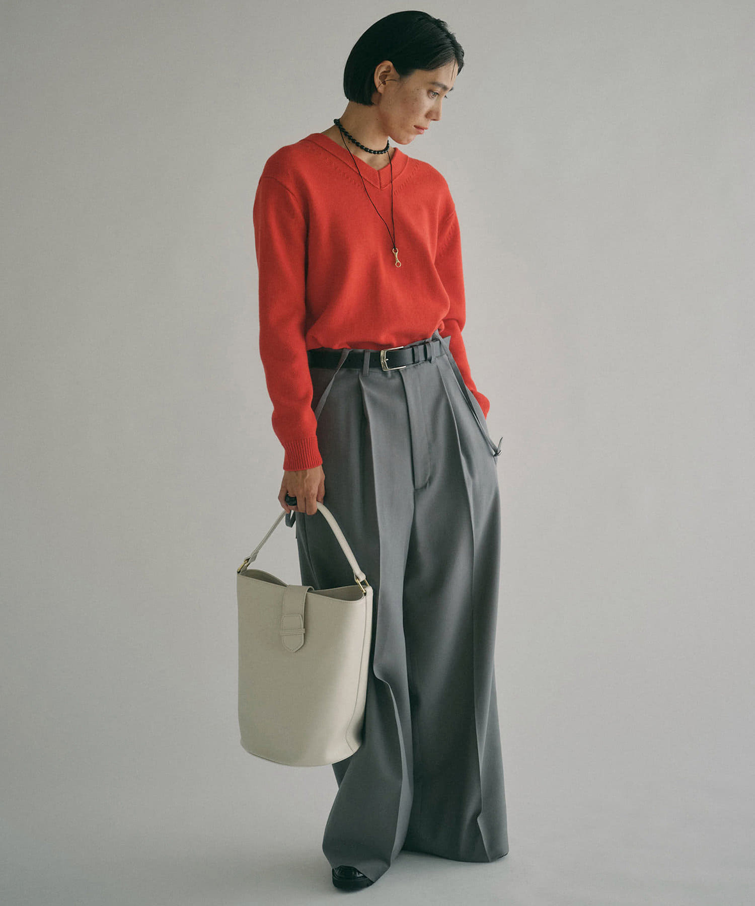 レッド:スタイリングに華やかさを添える鮮やかなレッド。