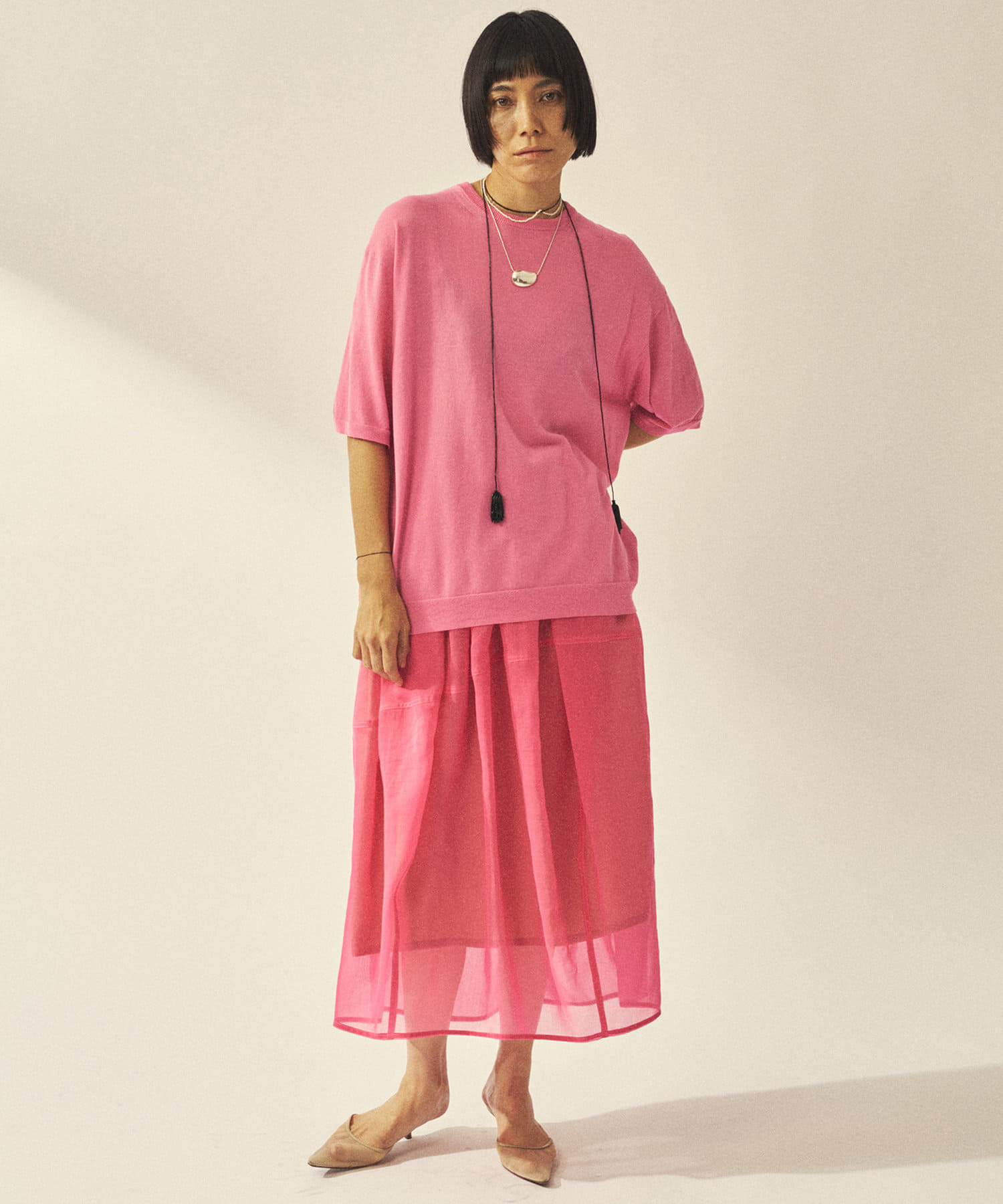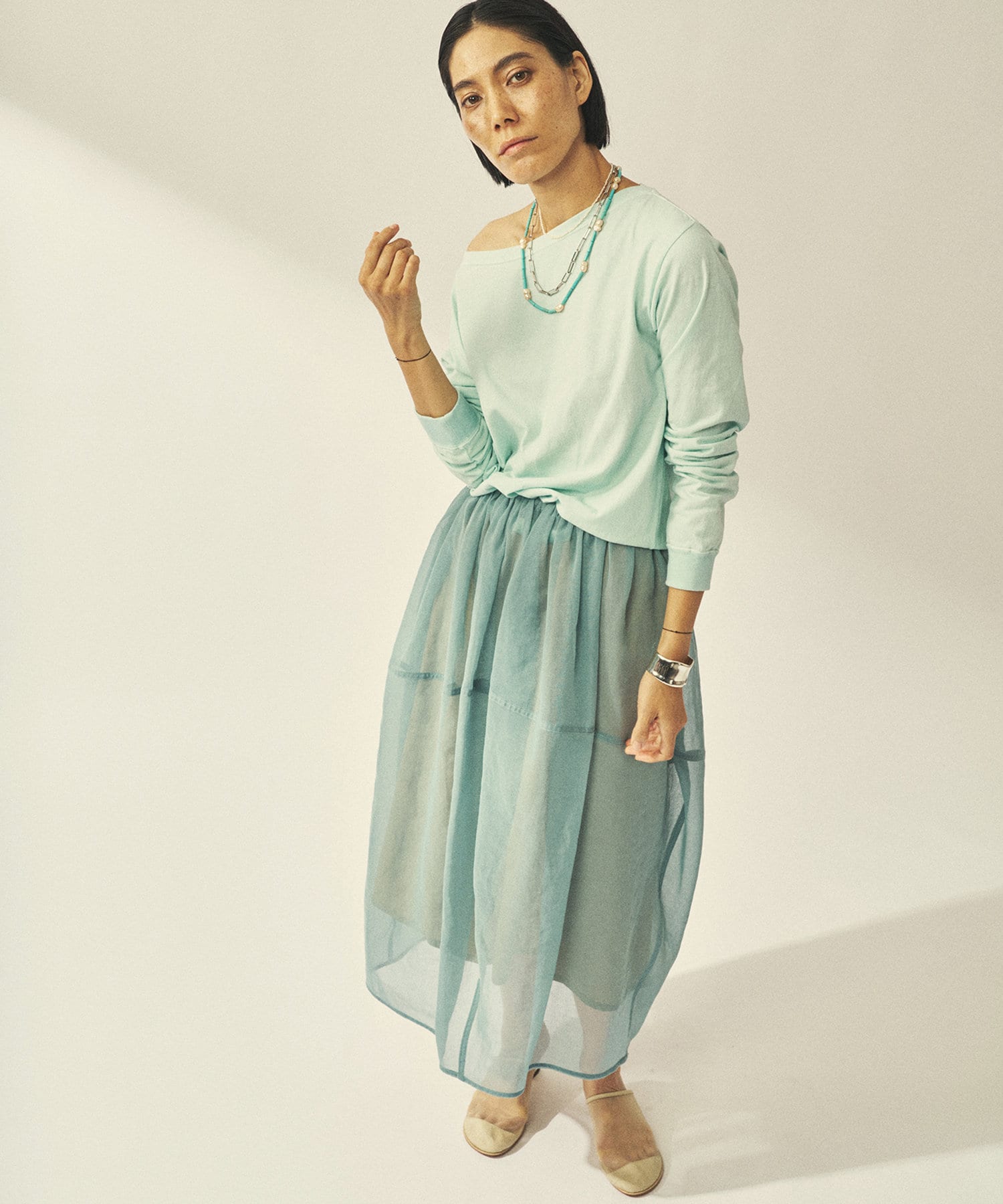 ■ナチュラルなタッチのポリエステルオーガンジー素材を使用したスカート。