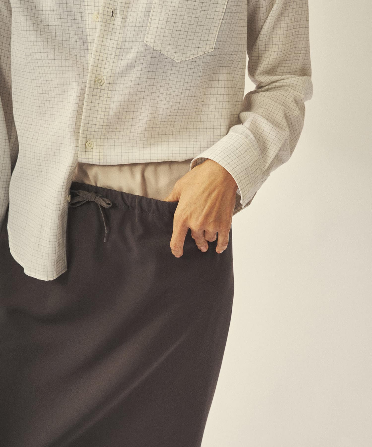 ■スカート・パンツどちらも脇ハギなくシームを極力減らし、縫い代あたりの少ないアイテムに。