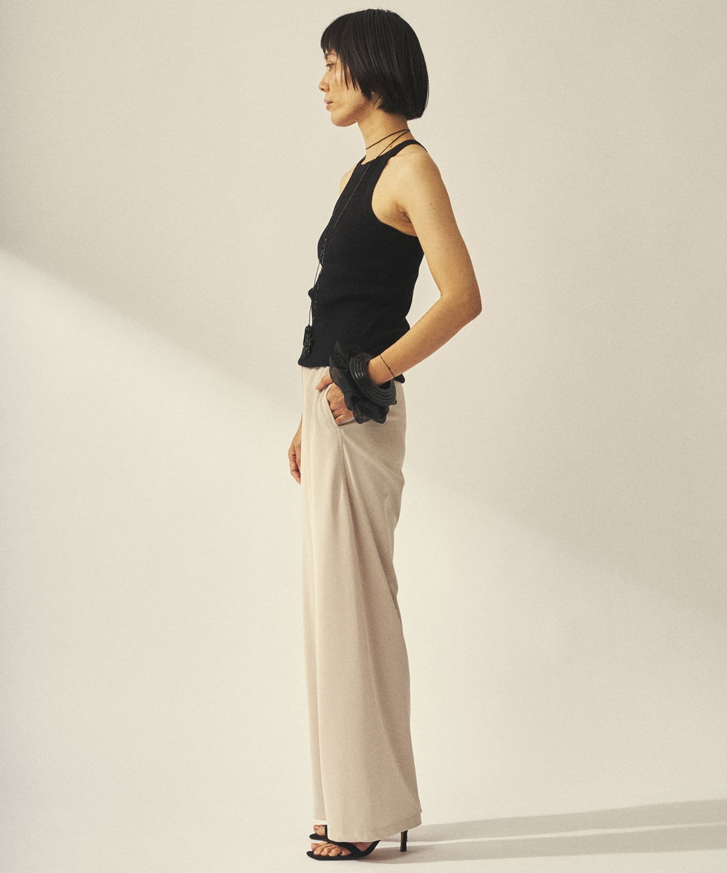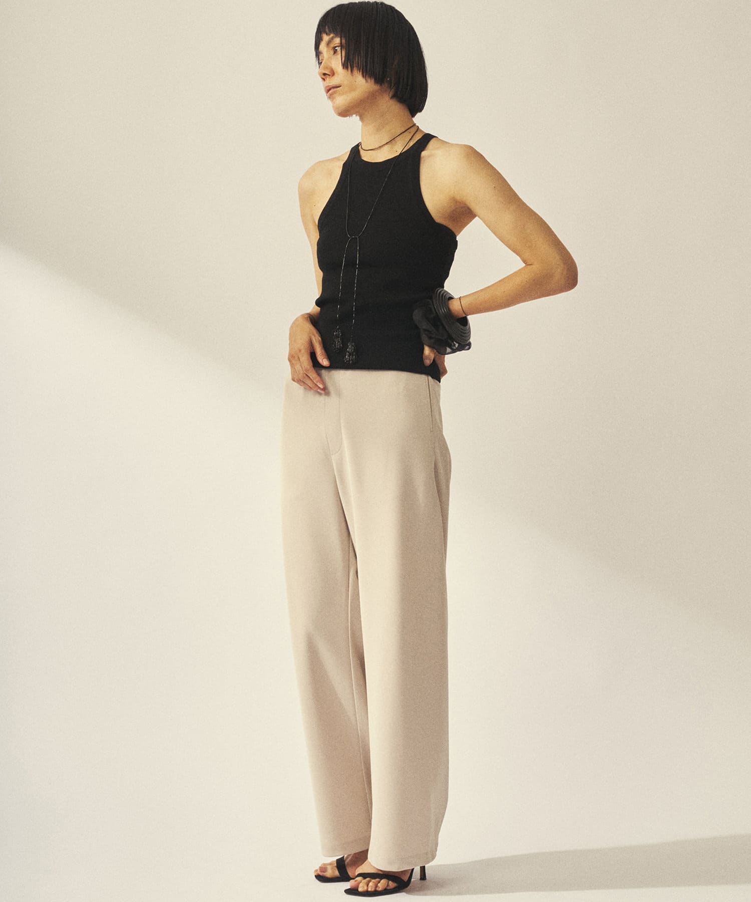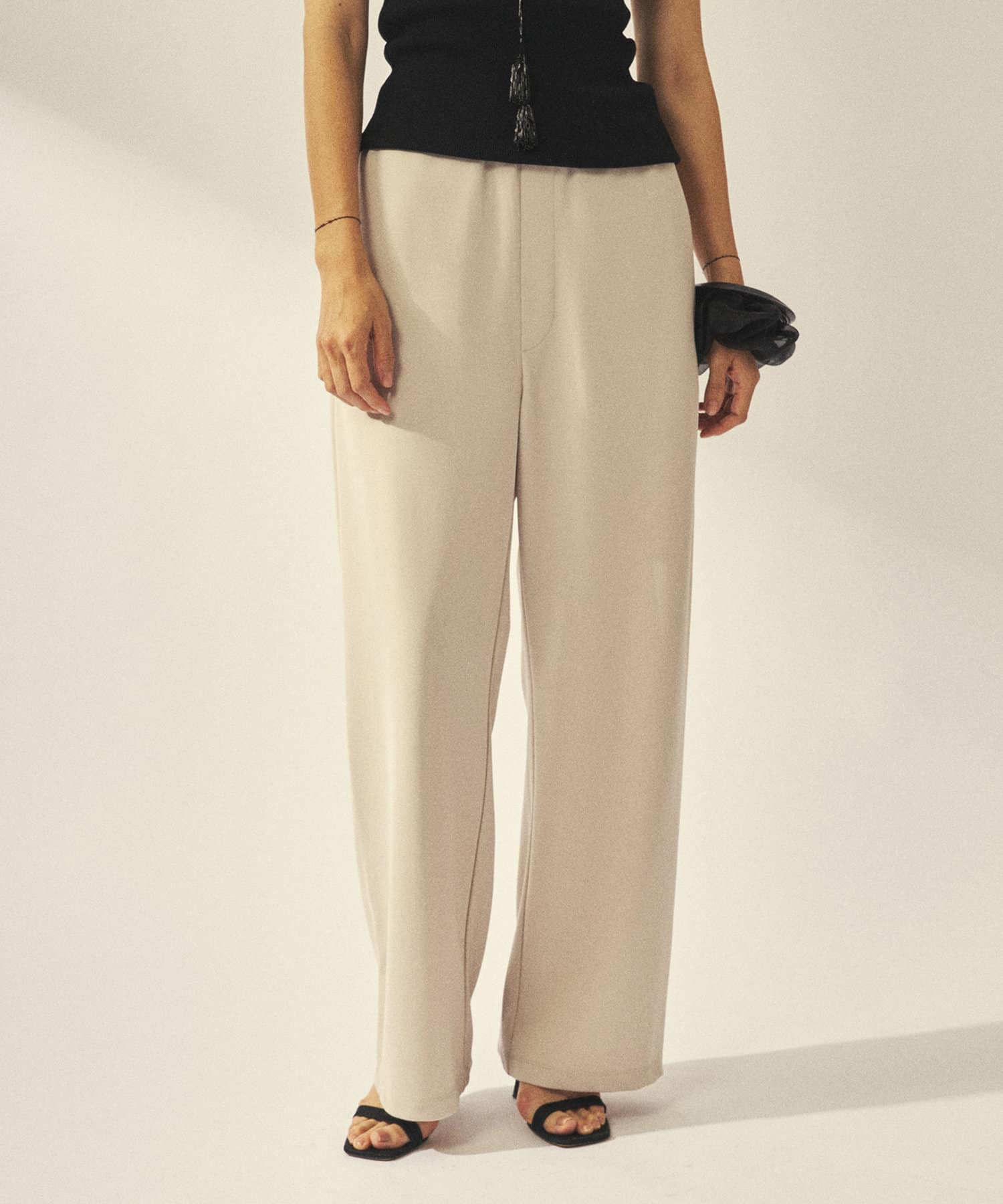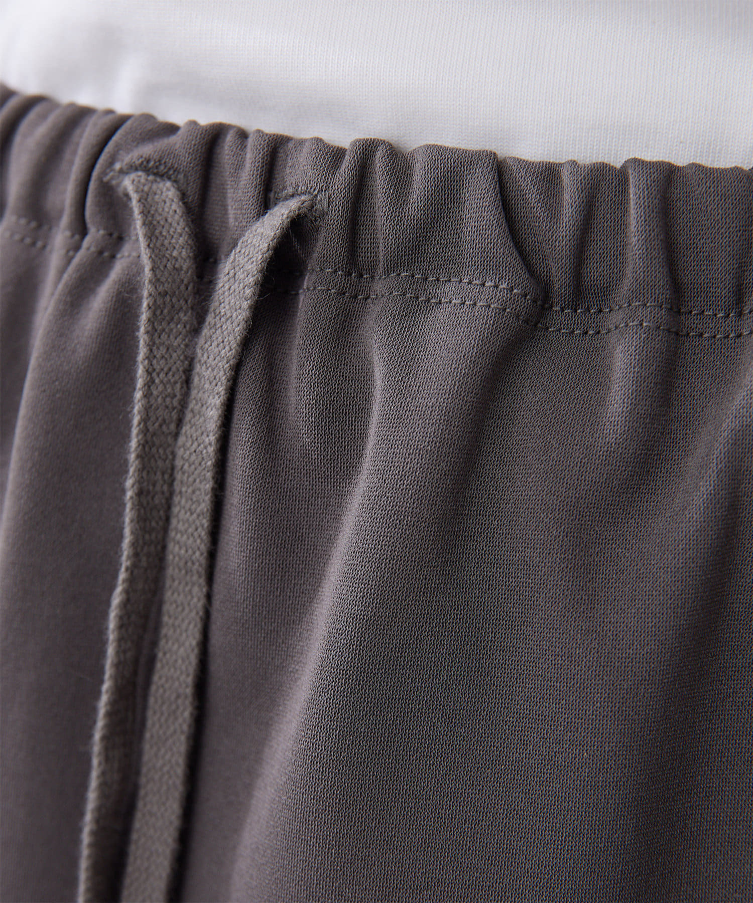 ■ダブルジャージを使用し、オールゴム仕様のウエストでイージーな着心地に仕上げた一着。