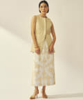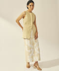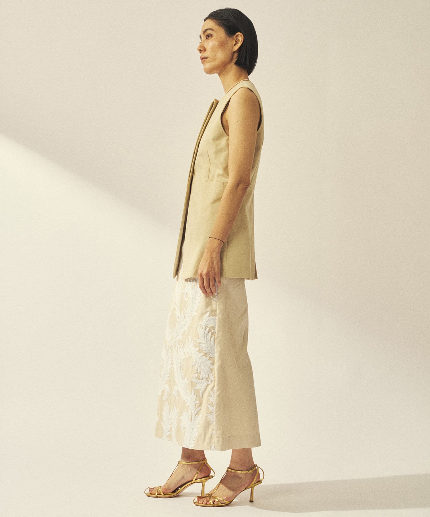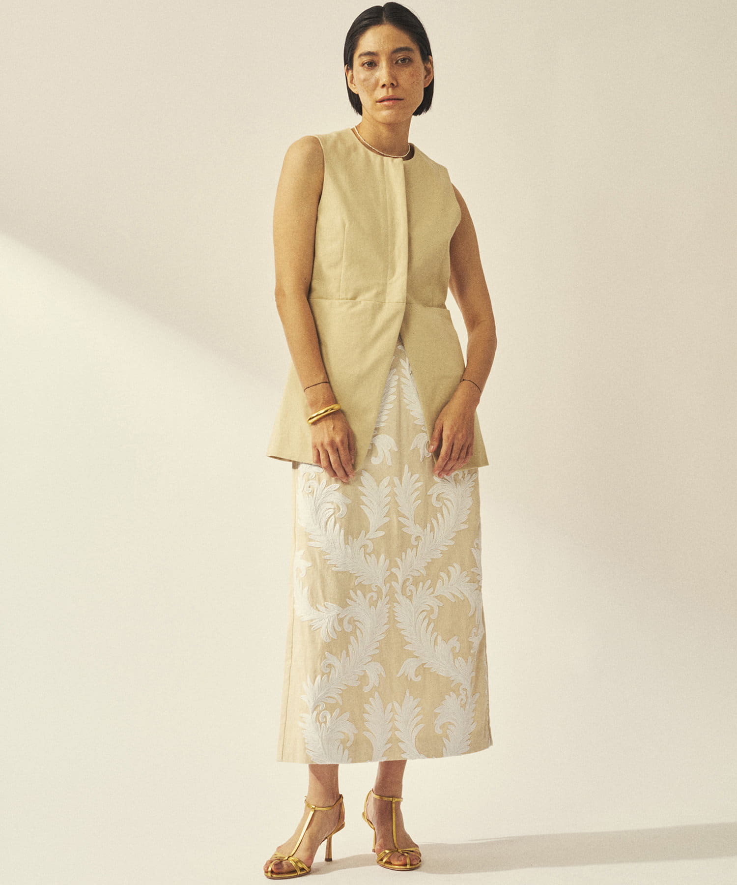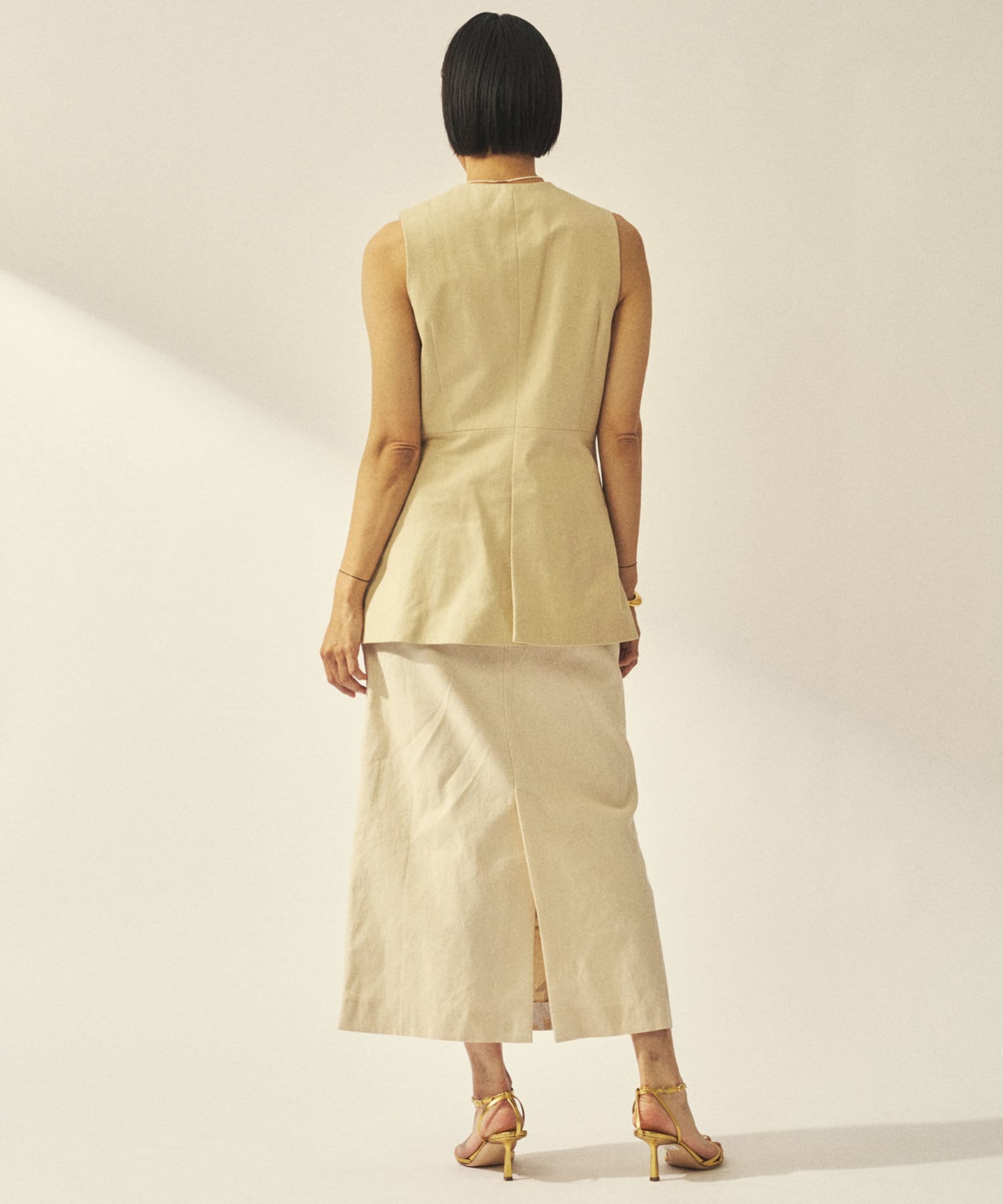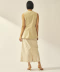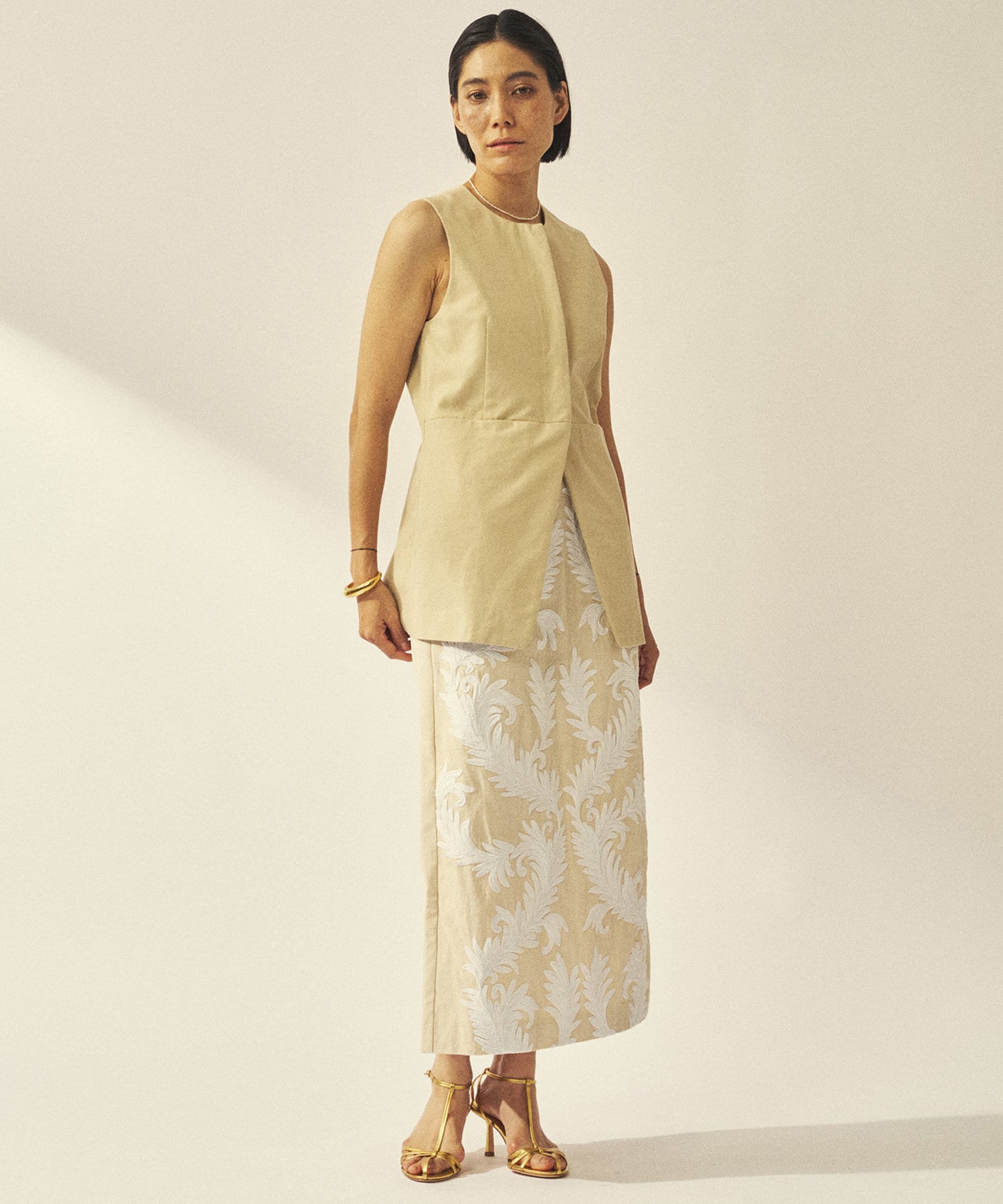 ■フロントボタンを閉じてノースリーブブラウスのように着こなすのもおすすめ。
