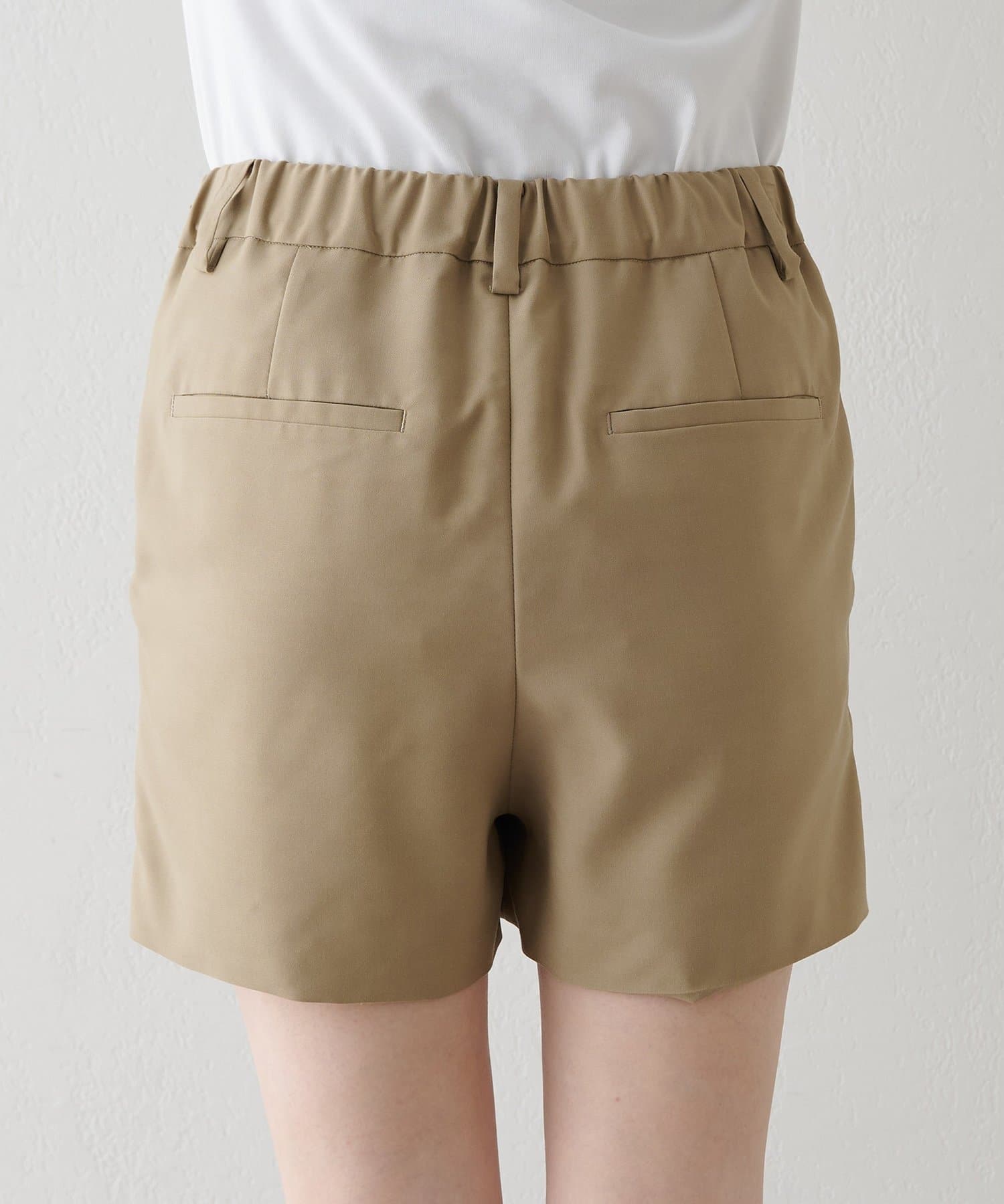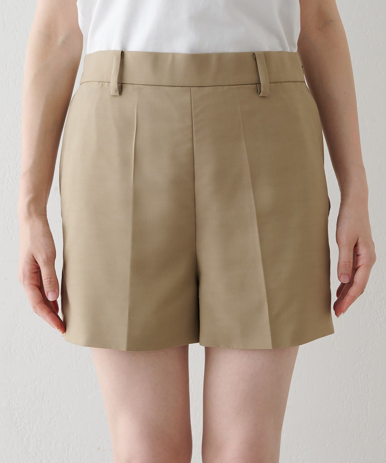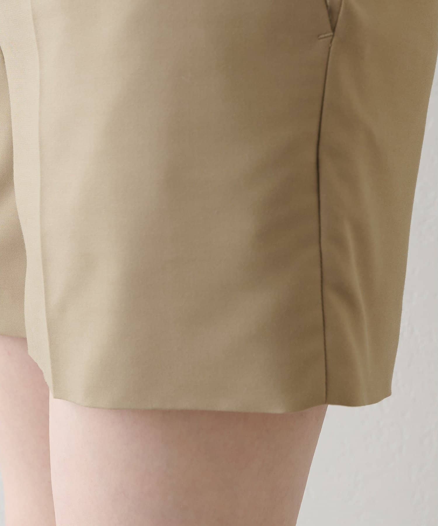 ミニマルなショートパンツ。タックなしのシンプルなデザインなので、すっきり見えが叶います。