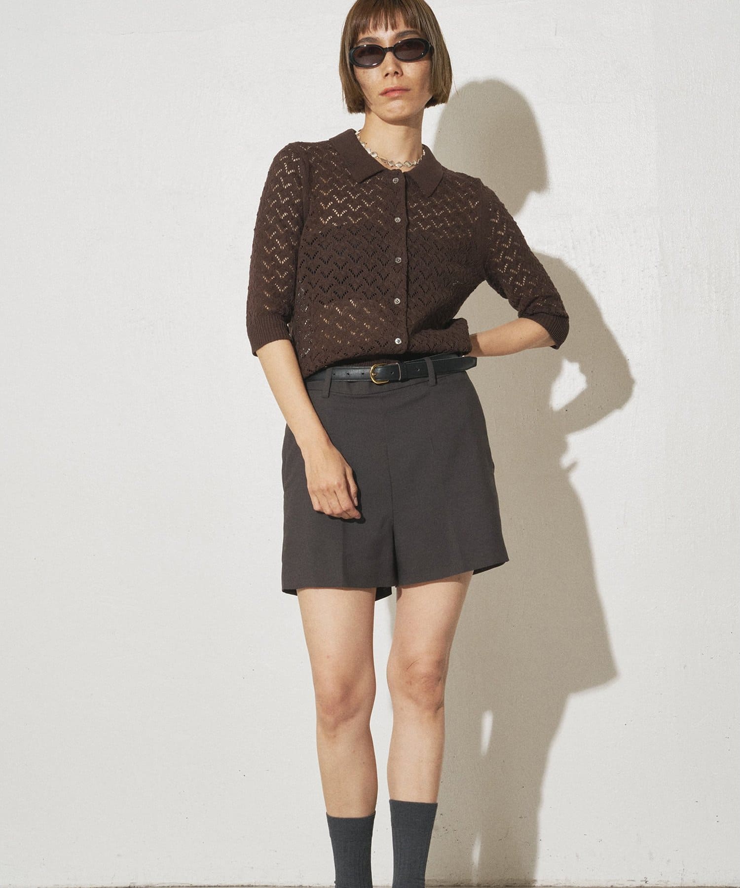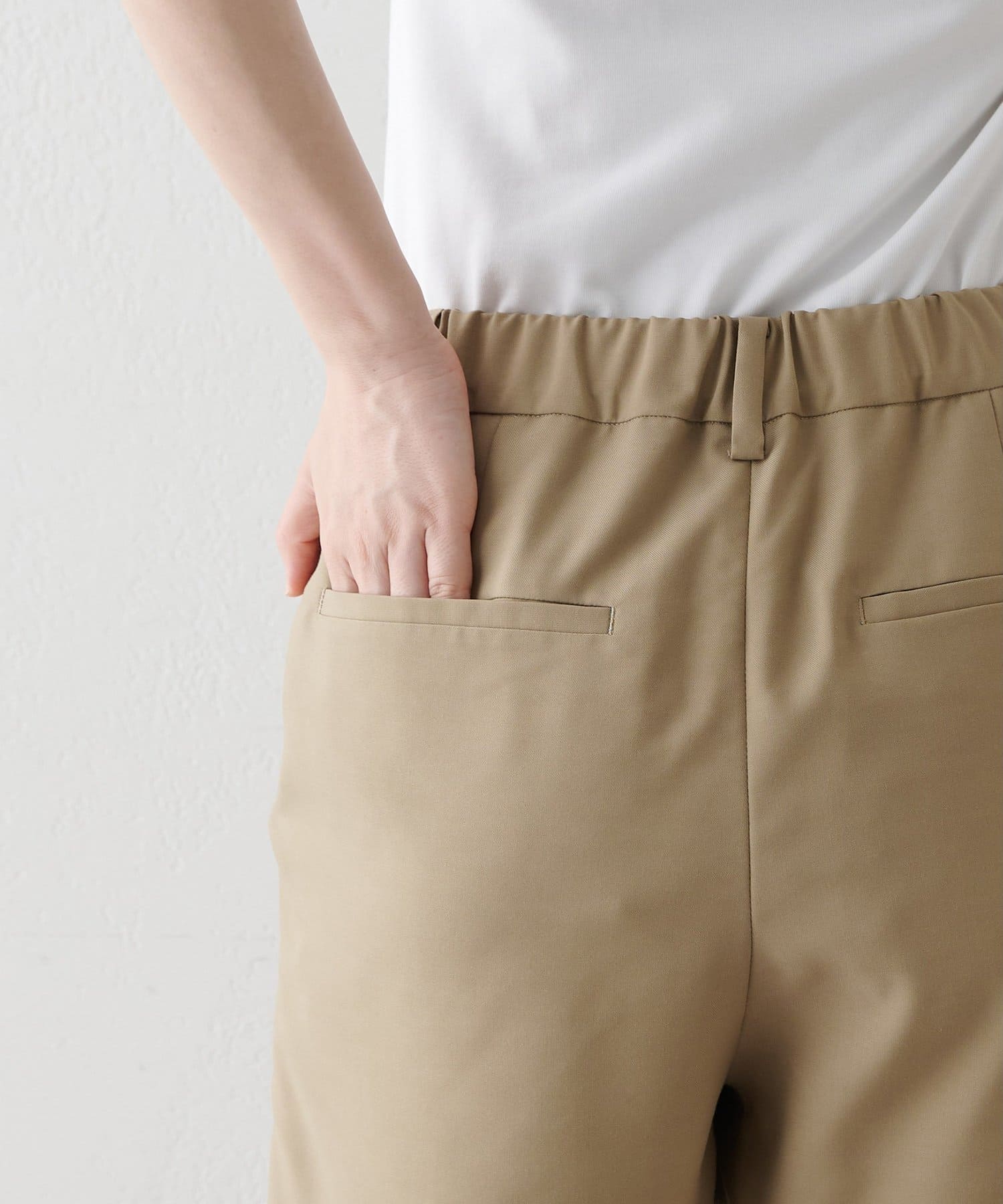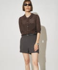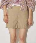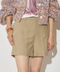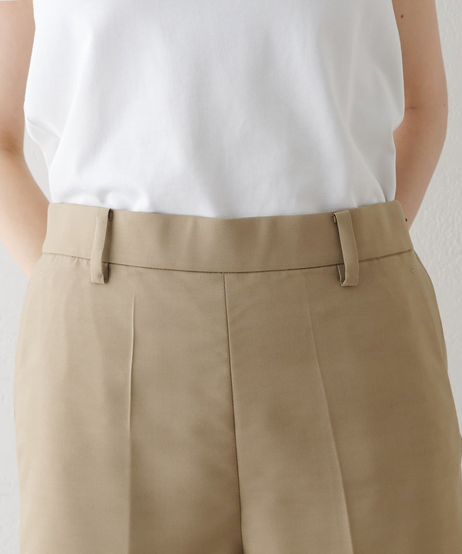 ミニマルなショートパンツ。タックなしのシンプルなデザインなので、すっきり見えが叶います。