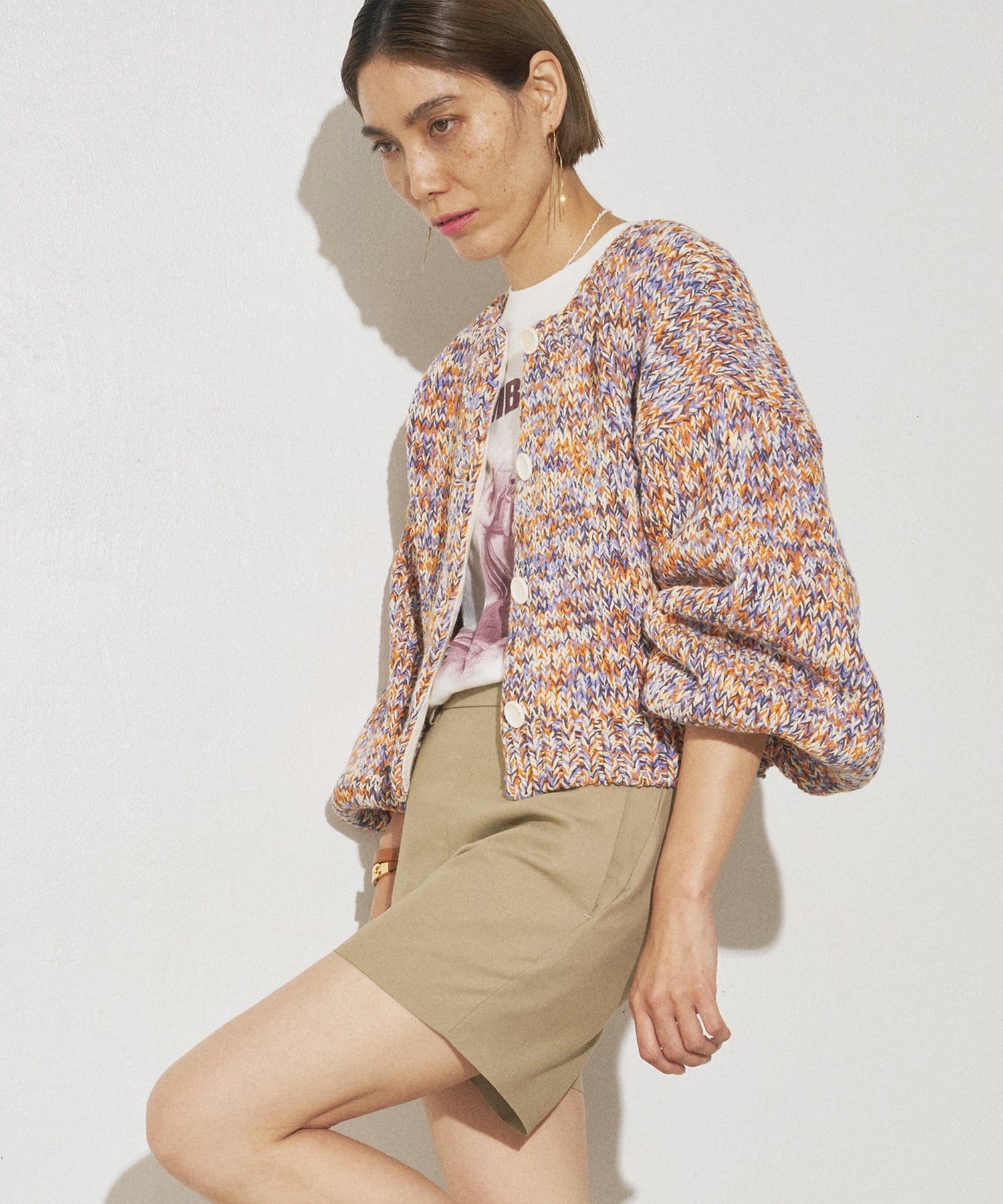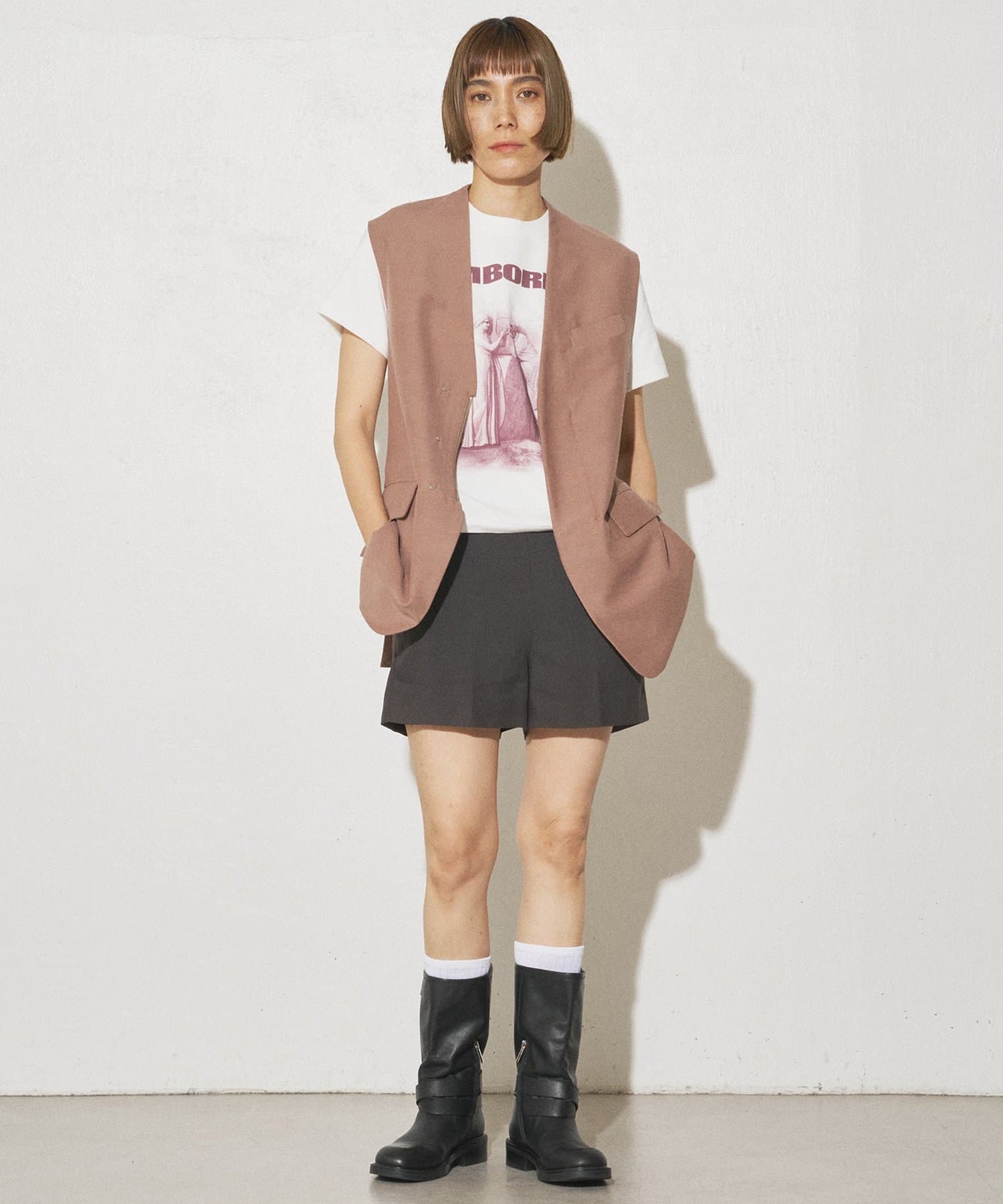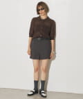 しっかり短めの丈感ですが、あまり身体にフィットしないので気になるもも周りを華奢に見せてくれます。セットアップではもちろん、大きめのtシャツやスウェットなどに合わせていただくと普段のお洋服の雰囲気を変えられるのでオススメです。