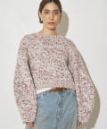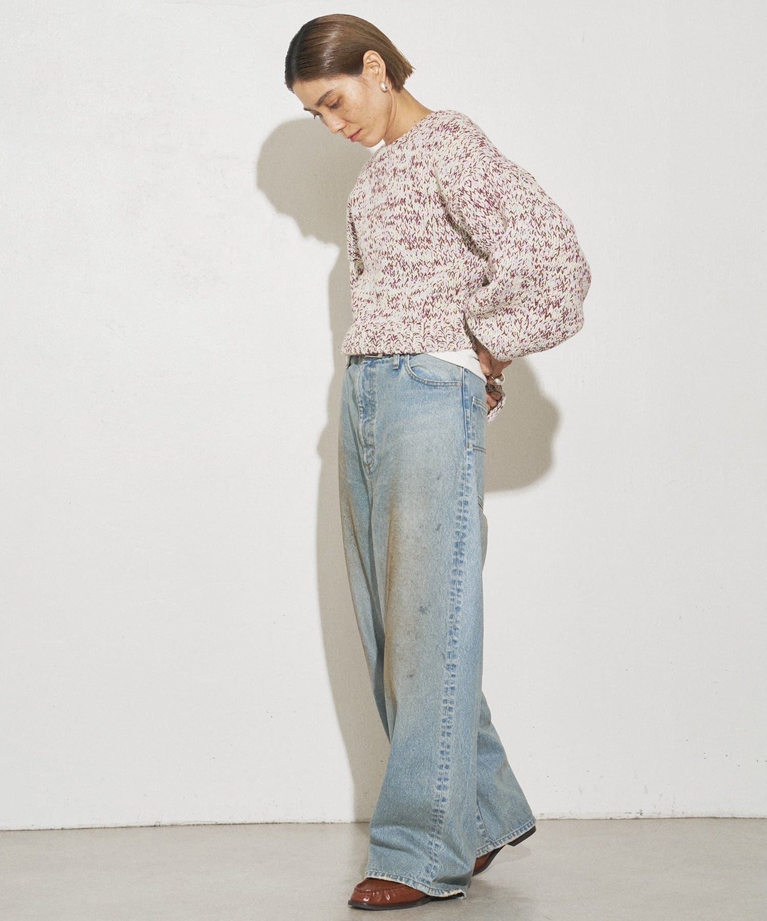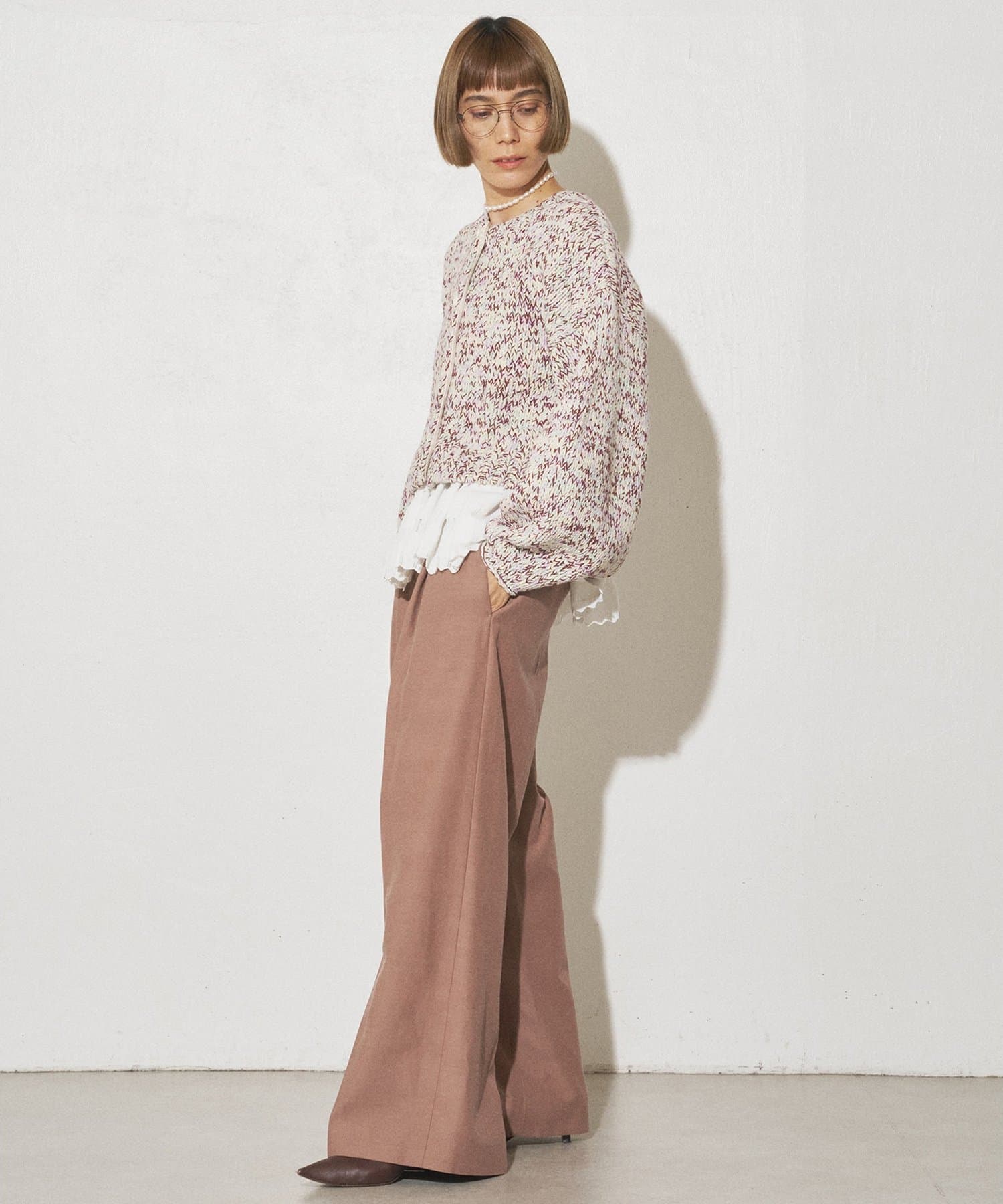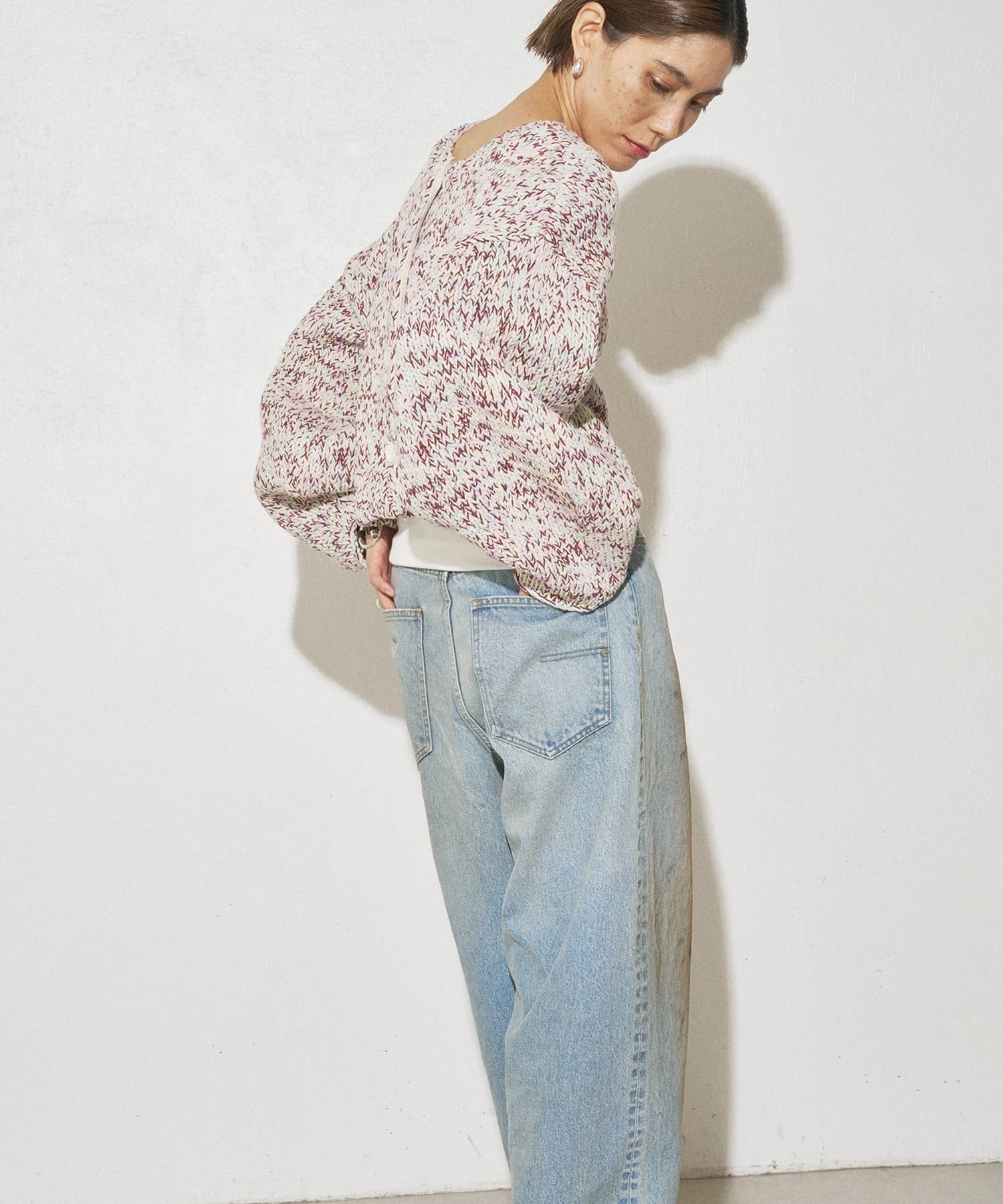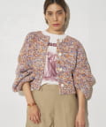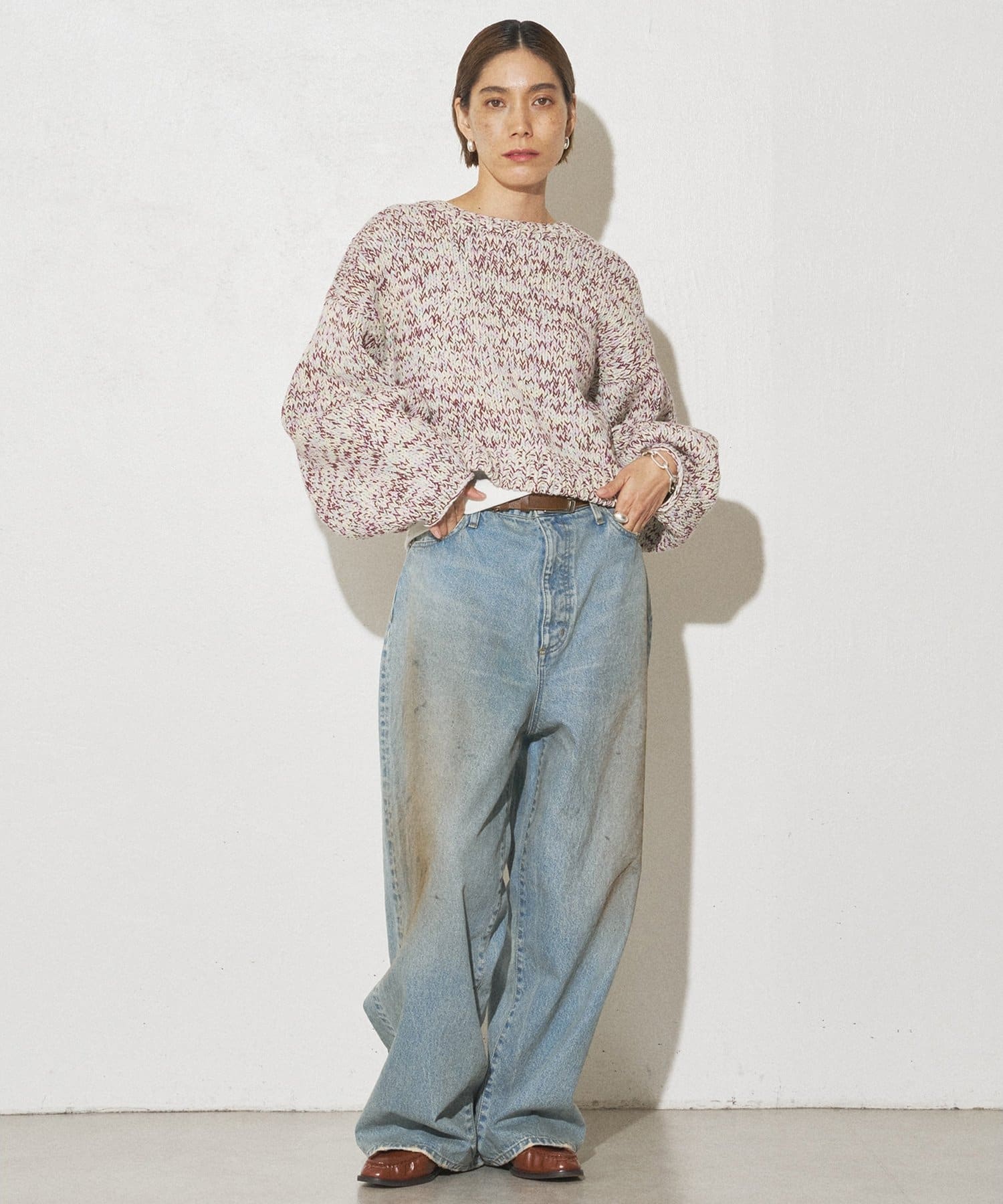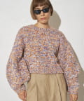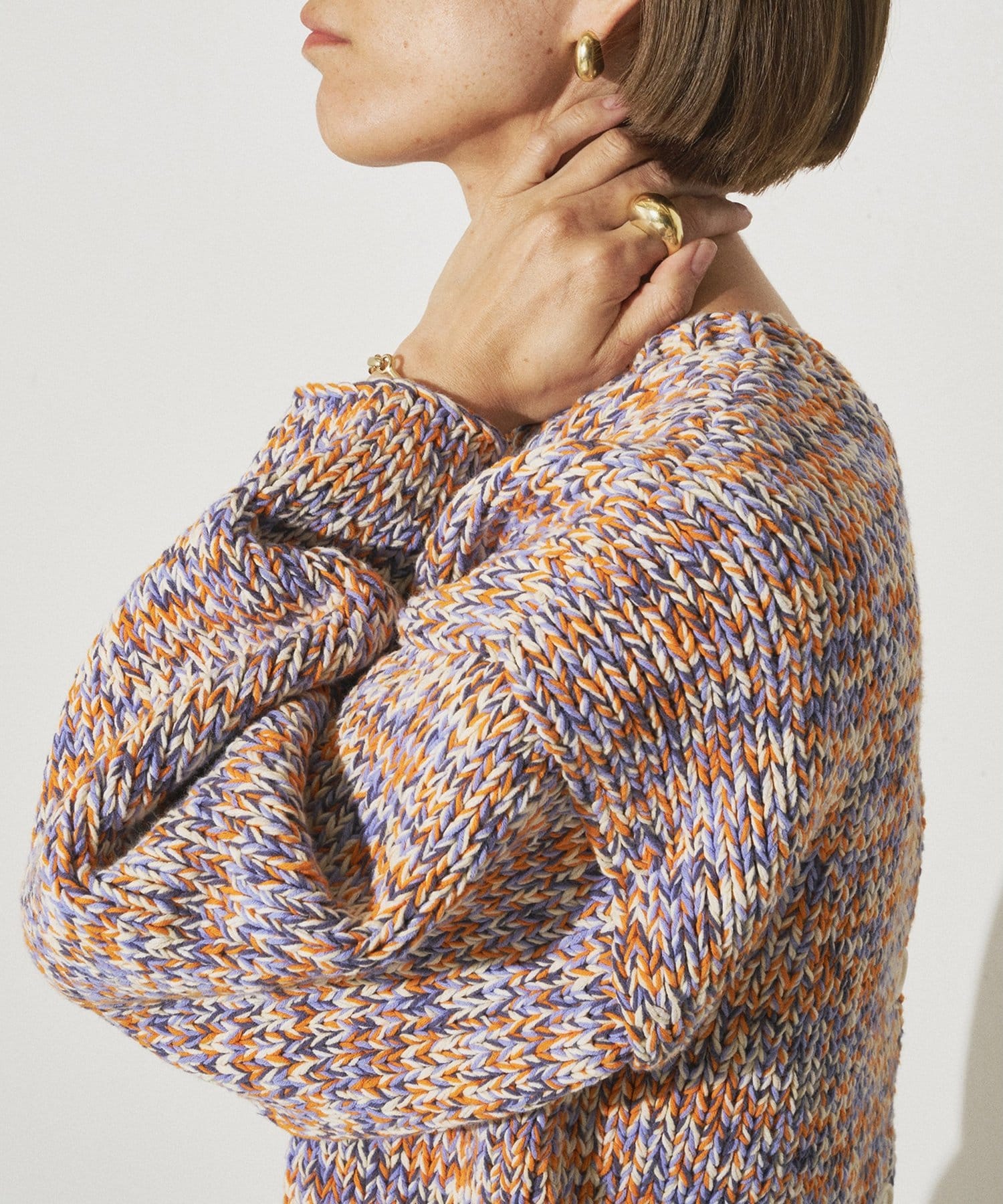 ■5色引き揃えジャンボ針で一点一点編み上げたニットは、複雑に見える他には無いオリジナルのテキスタイル。