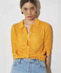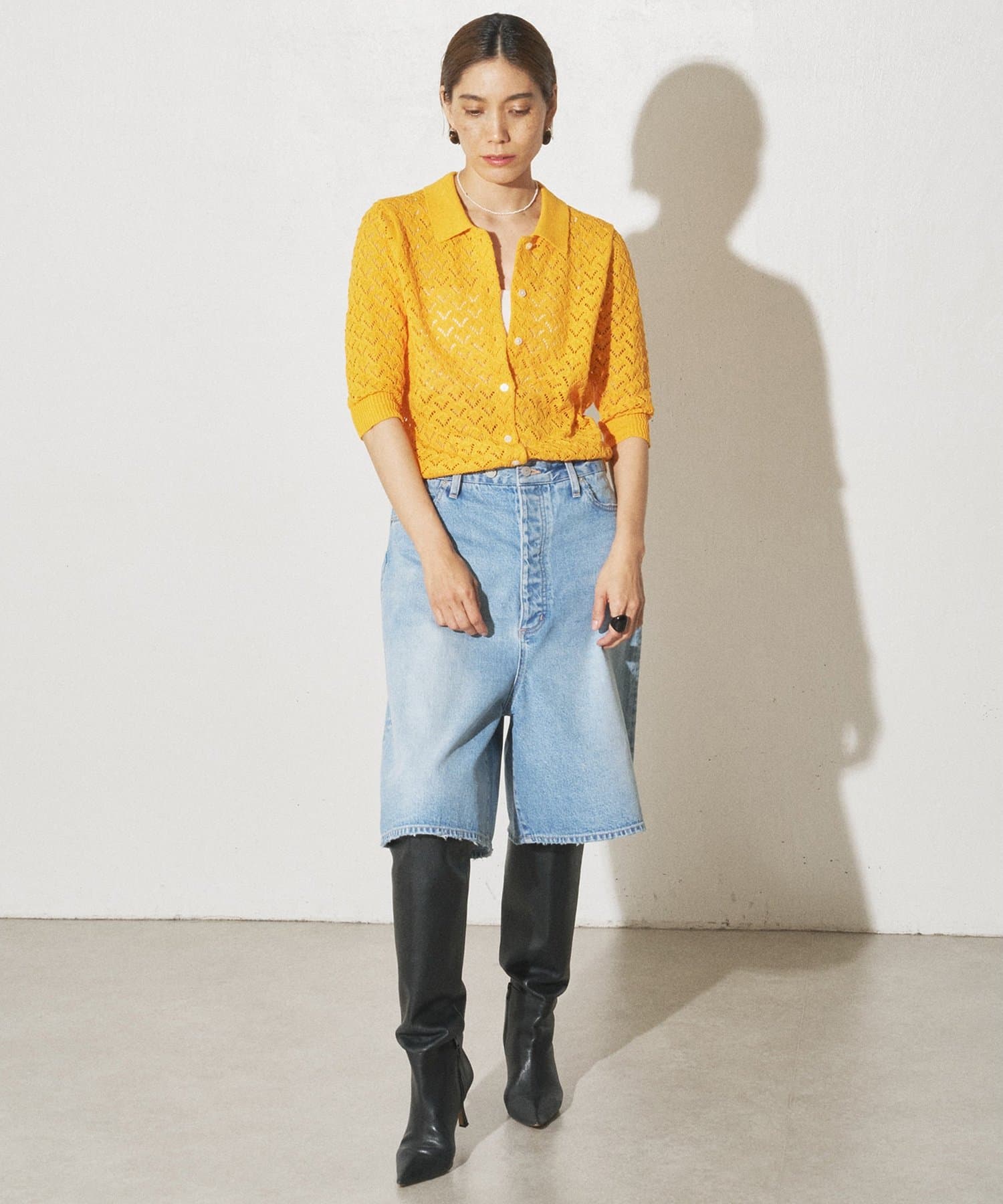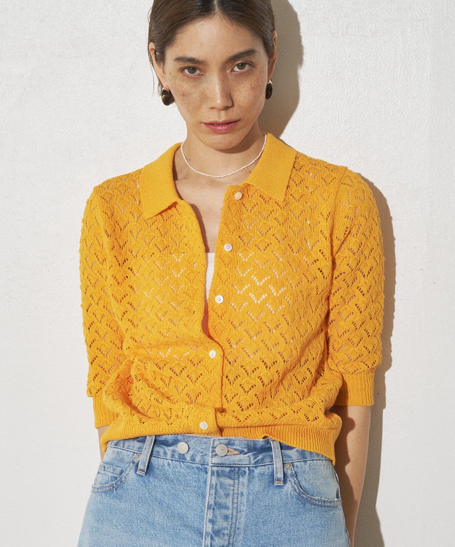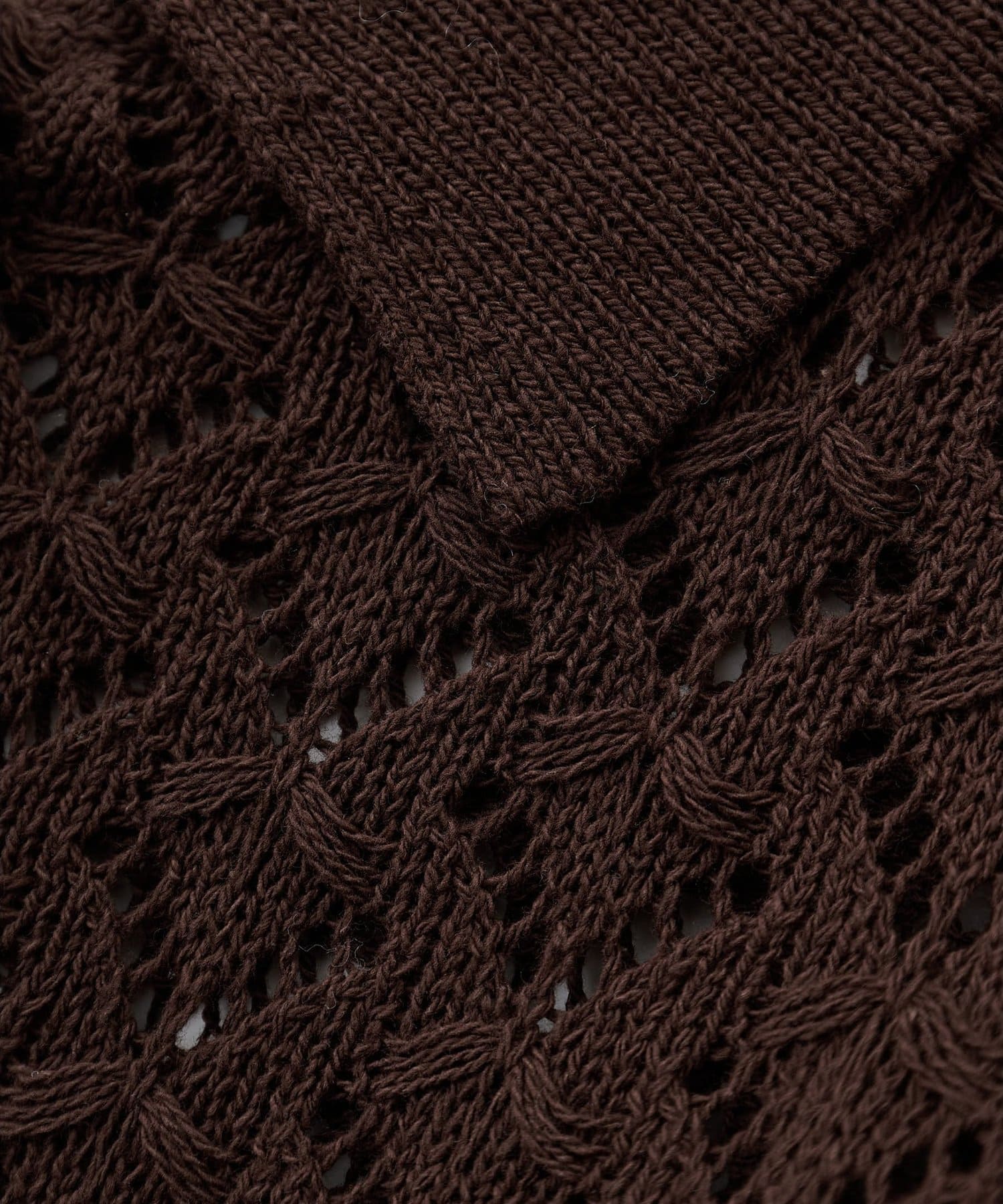 ■コットンに樹脂コーティング加工が施された糸を使用したポロカーディガン。