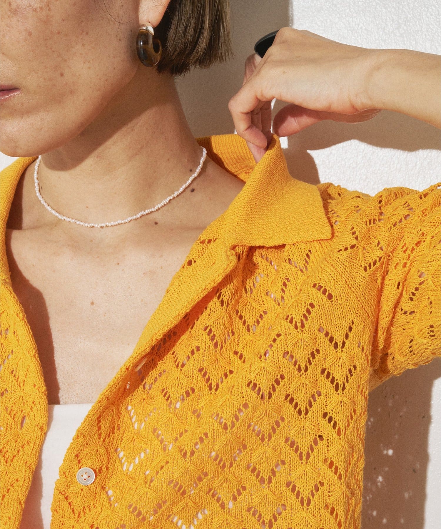 ■クラシックな雰囲気のある透かし編みが着こなしのアクセントに。