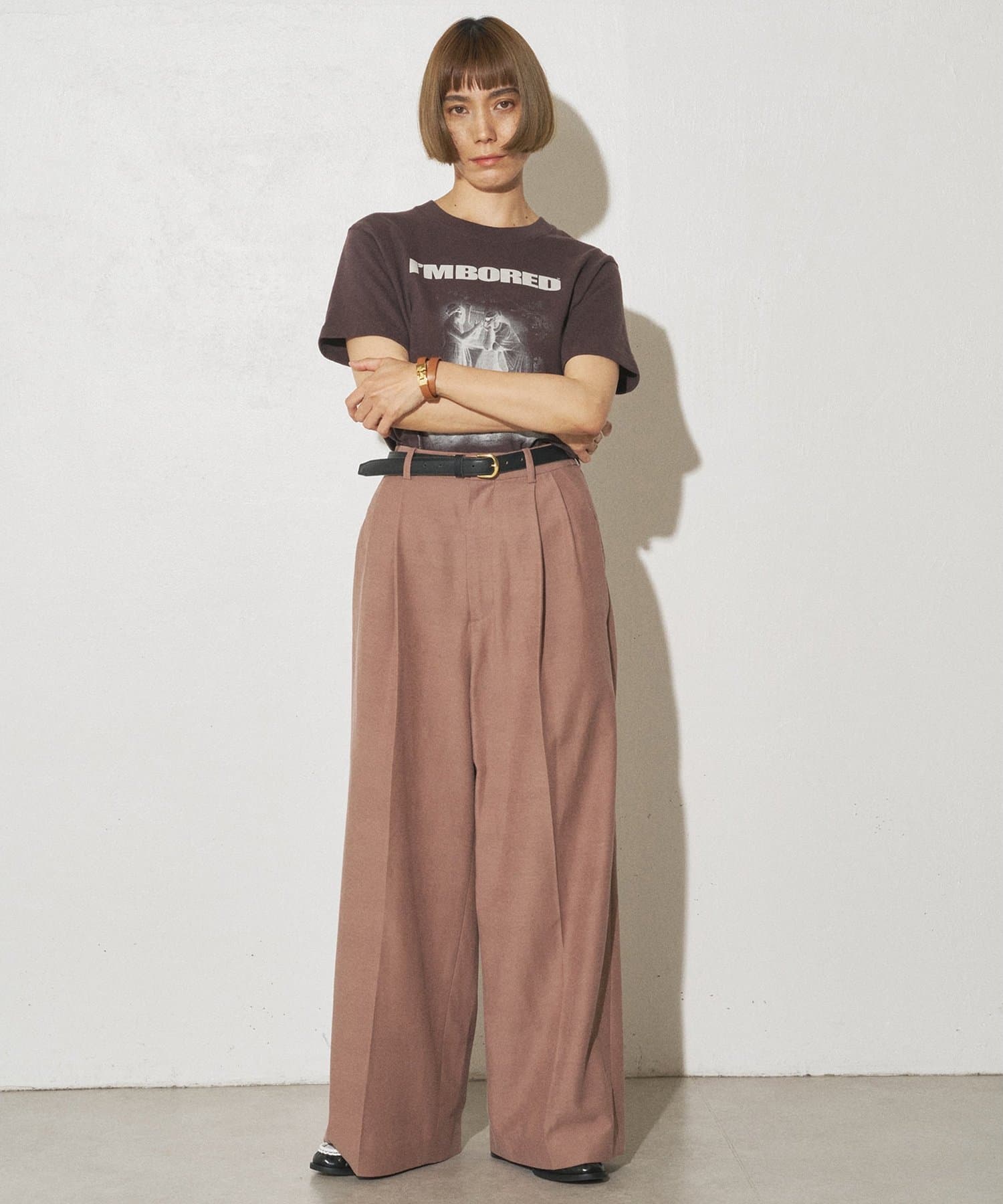 大人の着こなしに遊びとこなれ感を添えるプリントTEE