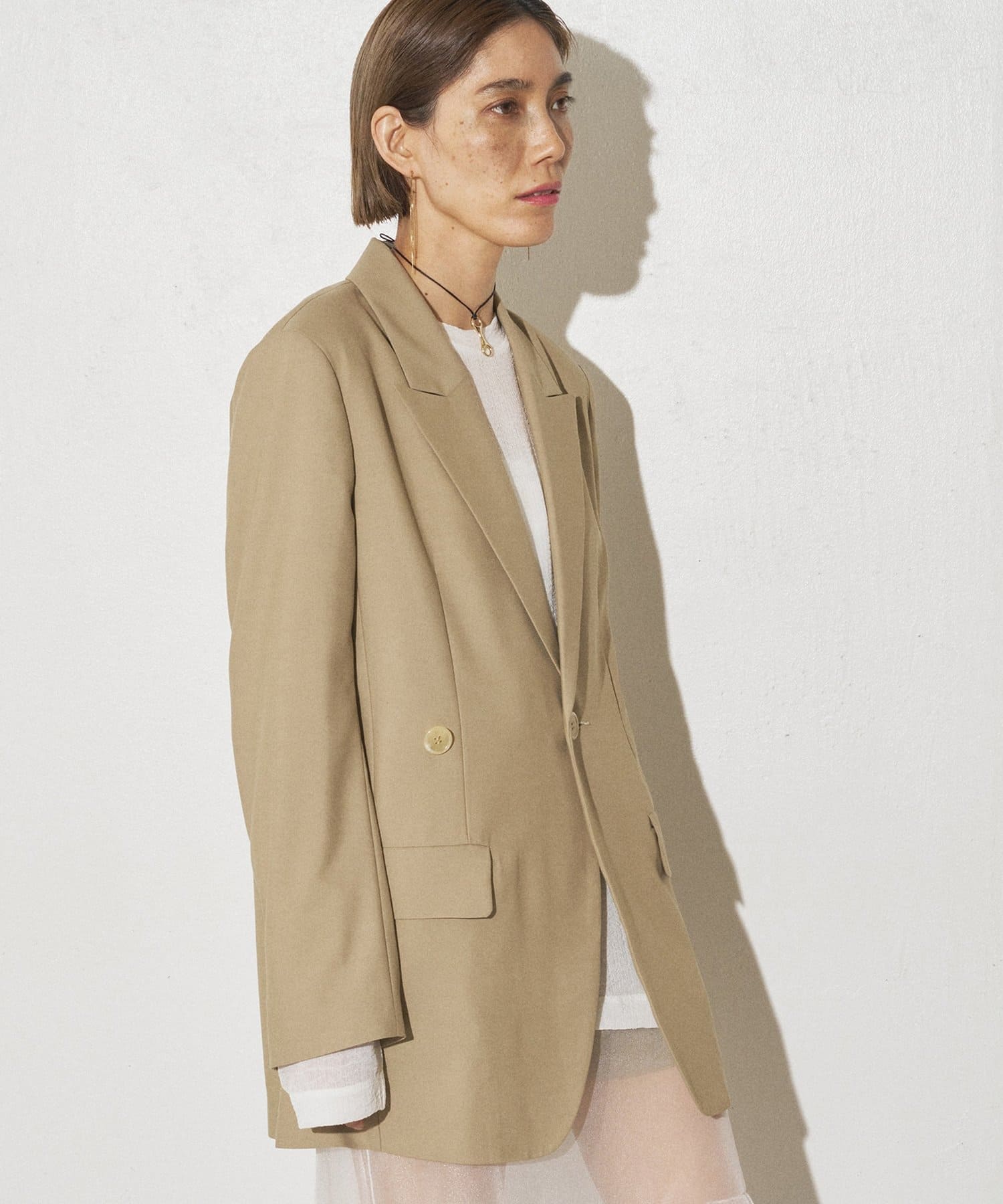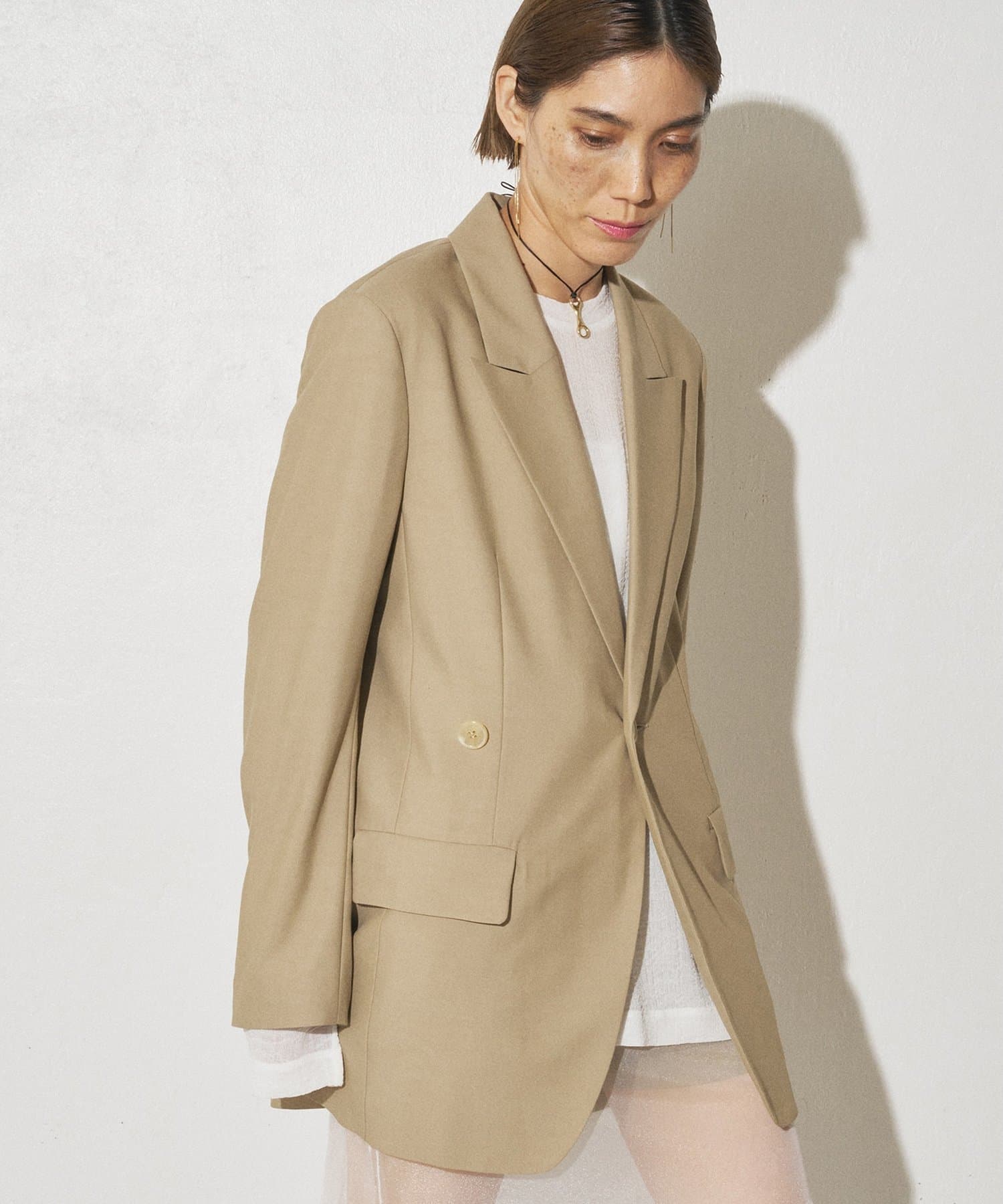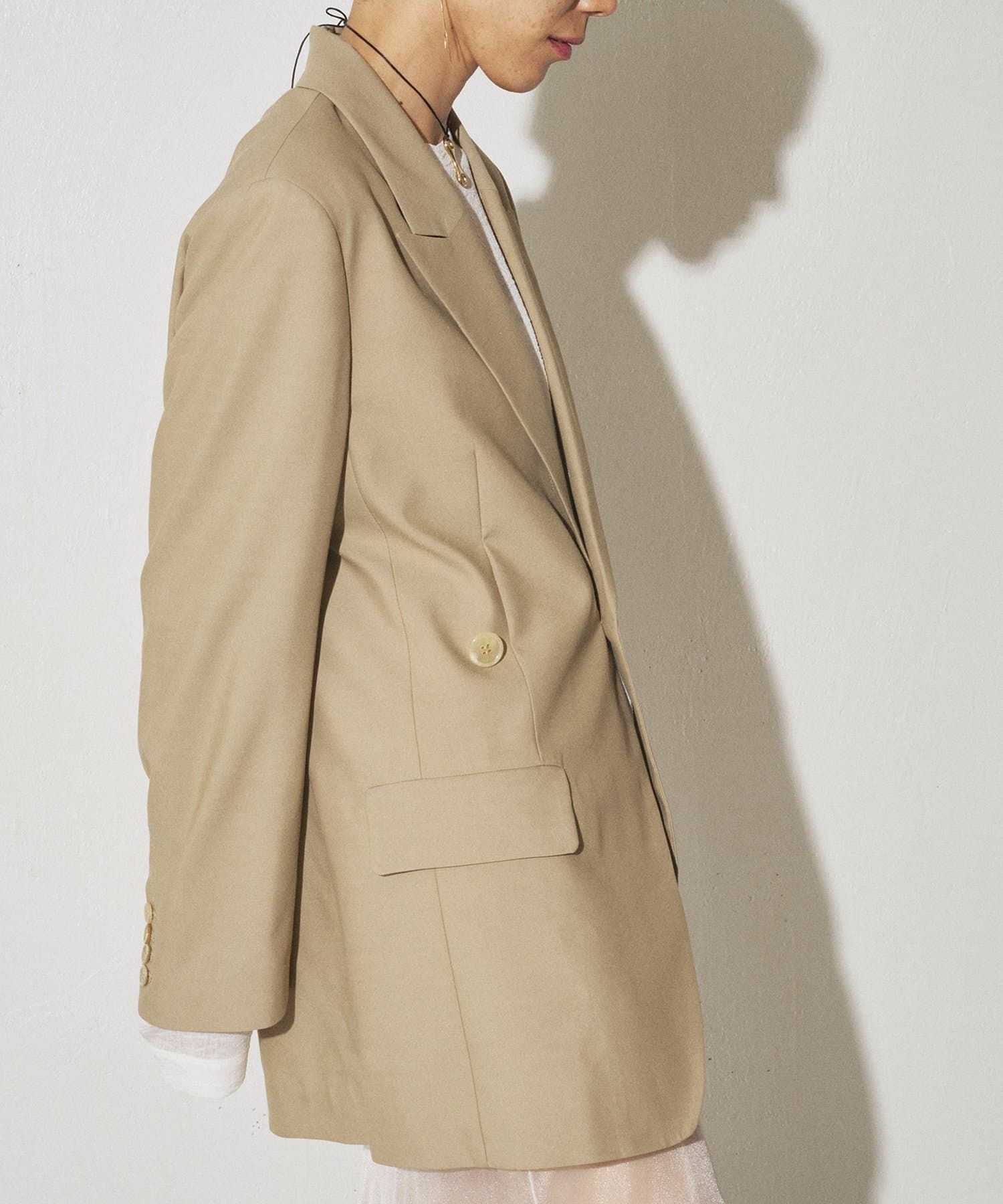 シルエットの変化を楽しめるピークドラペルジャケット