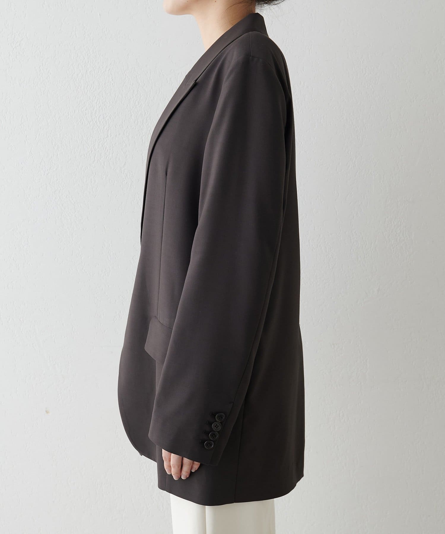 ■ソフトな風合いで軽羽織りとしてはもちろん、上からブルゾンやコートを着ても窮屈感なくロングシーズン活躍する一着。