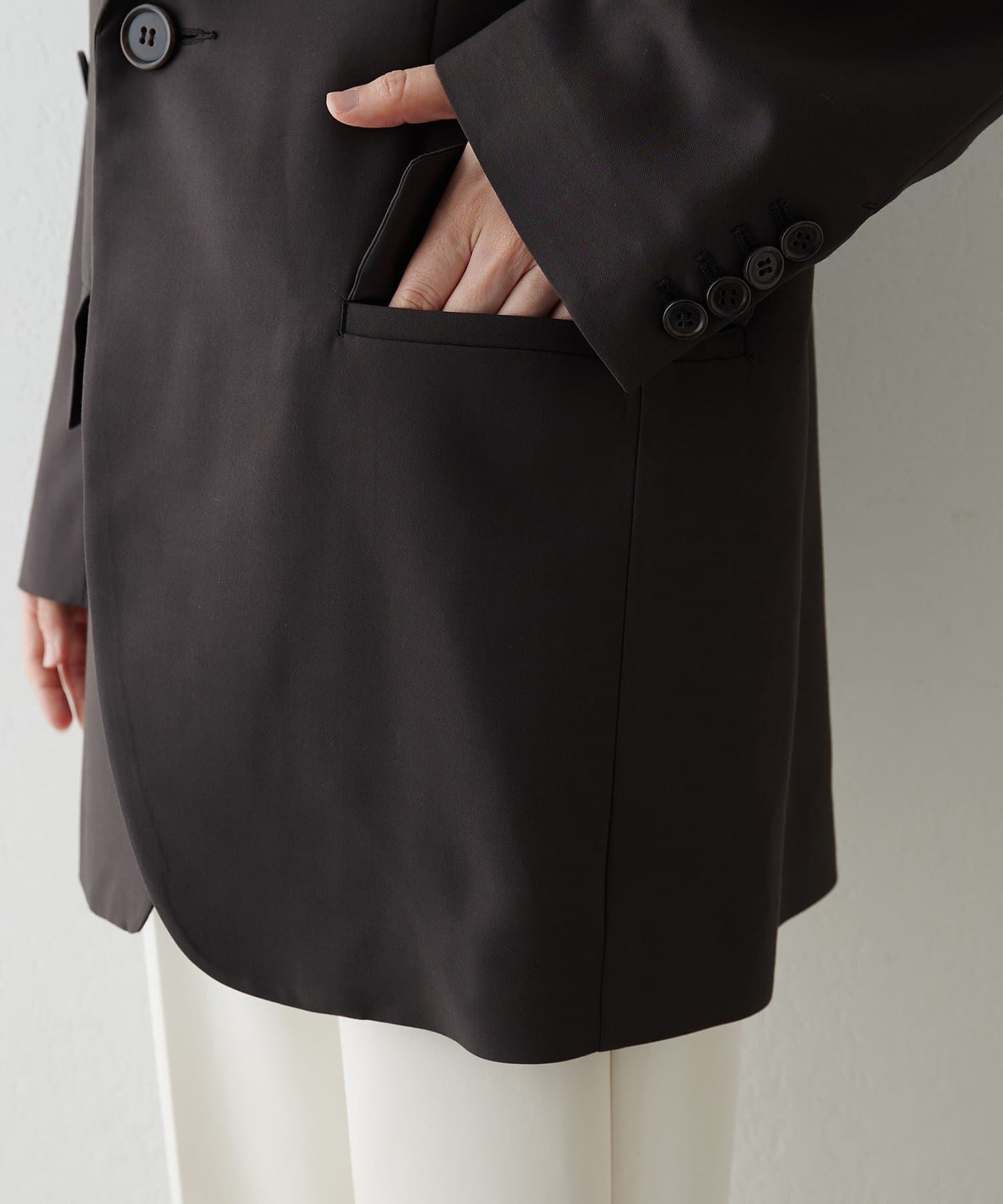 ■リサイクルポリエステルとレーヨン混紡糸のツイル素材を使用したジャケット。