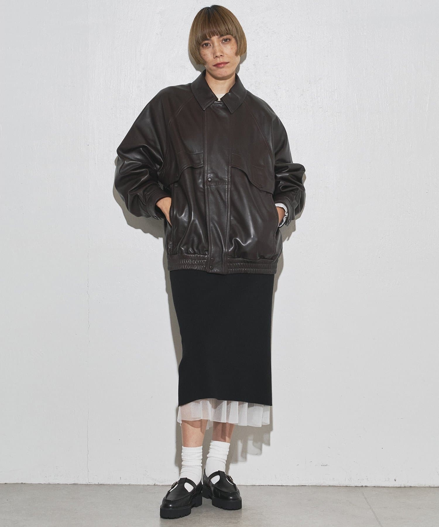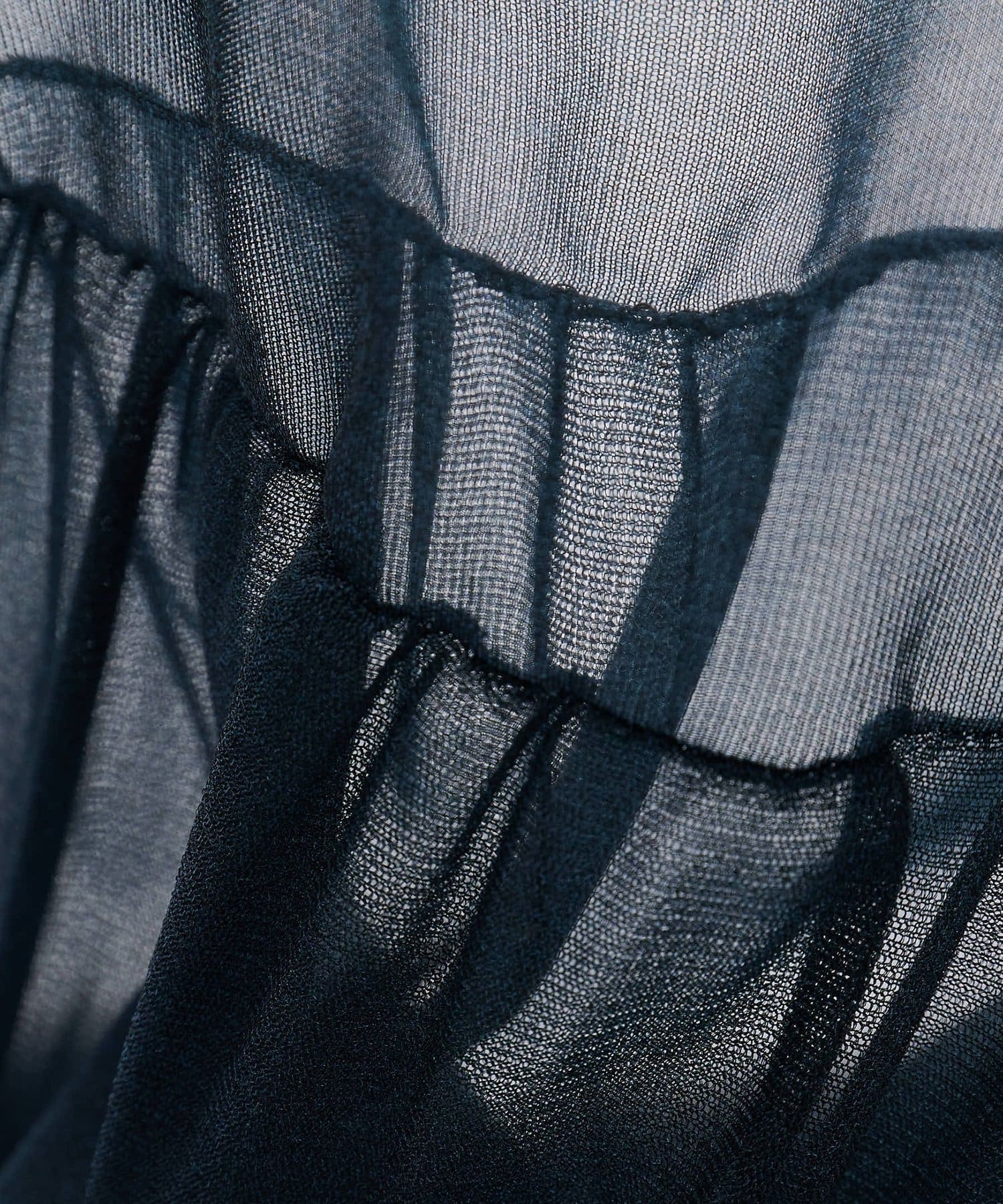 ■シアースカートをウエスト部分から覗かせるスタイリングもおすすめ。