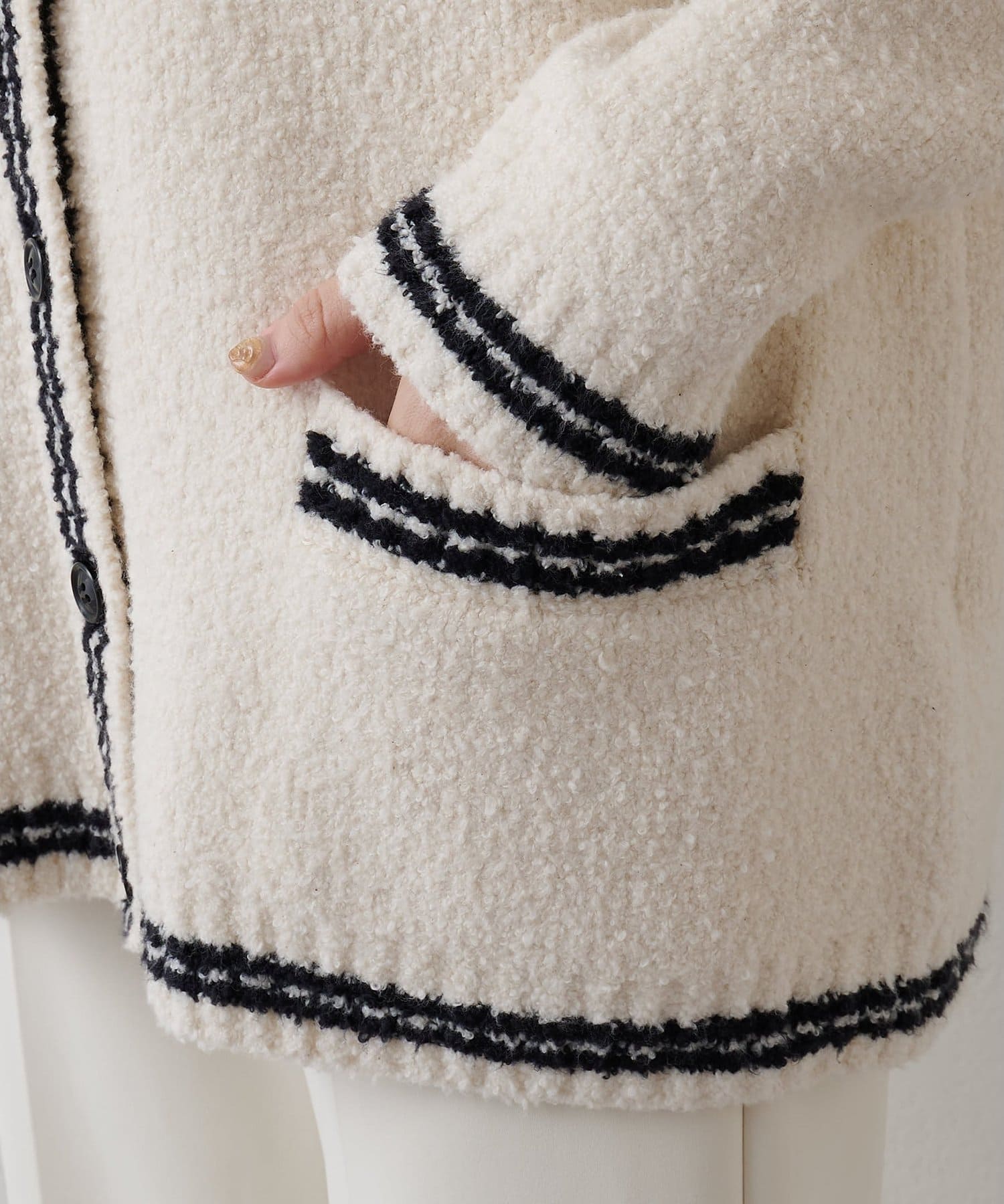 ■イタリアOLIVO社のコットンブークレー糸を使用したニットカーディガン。