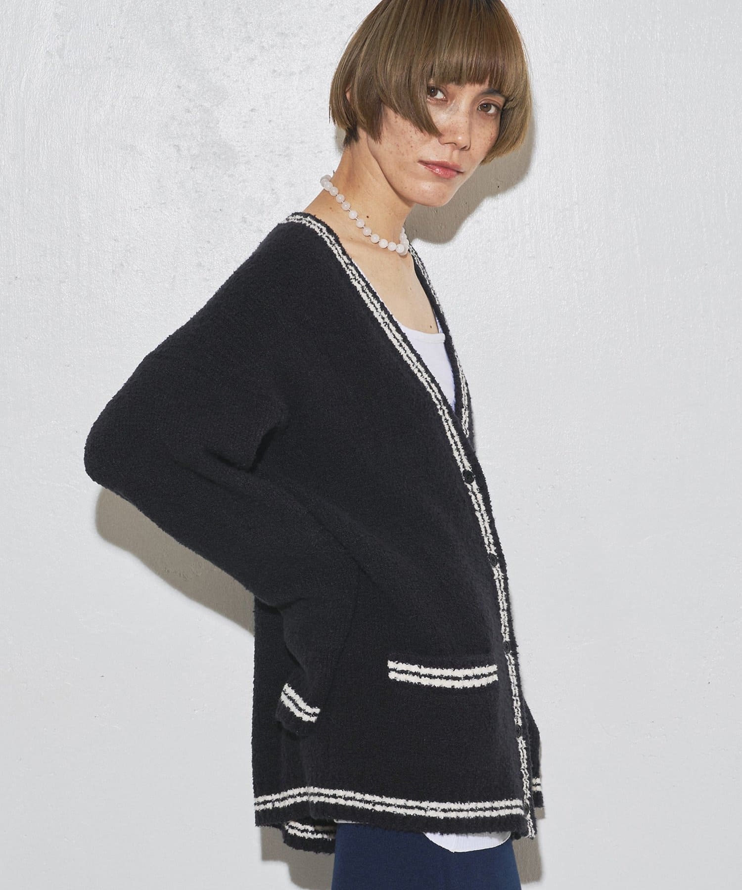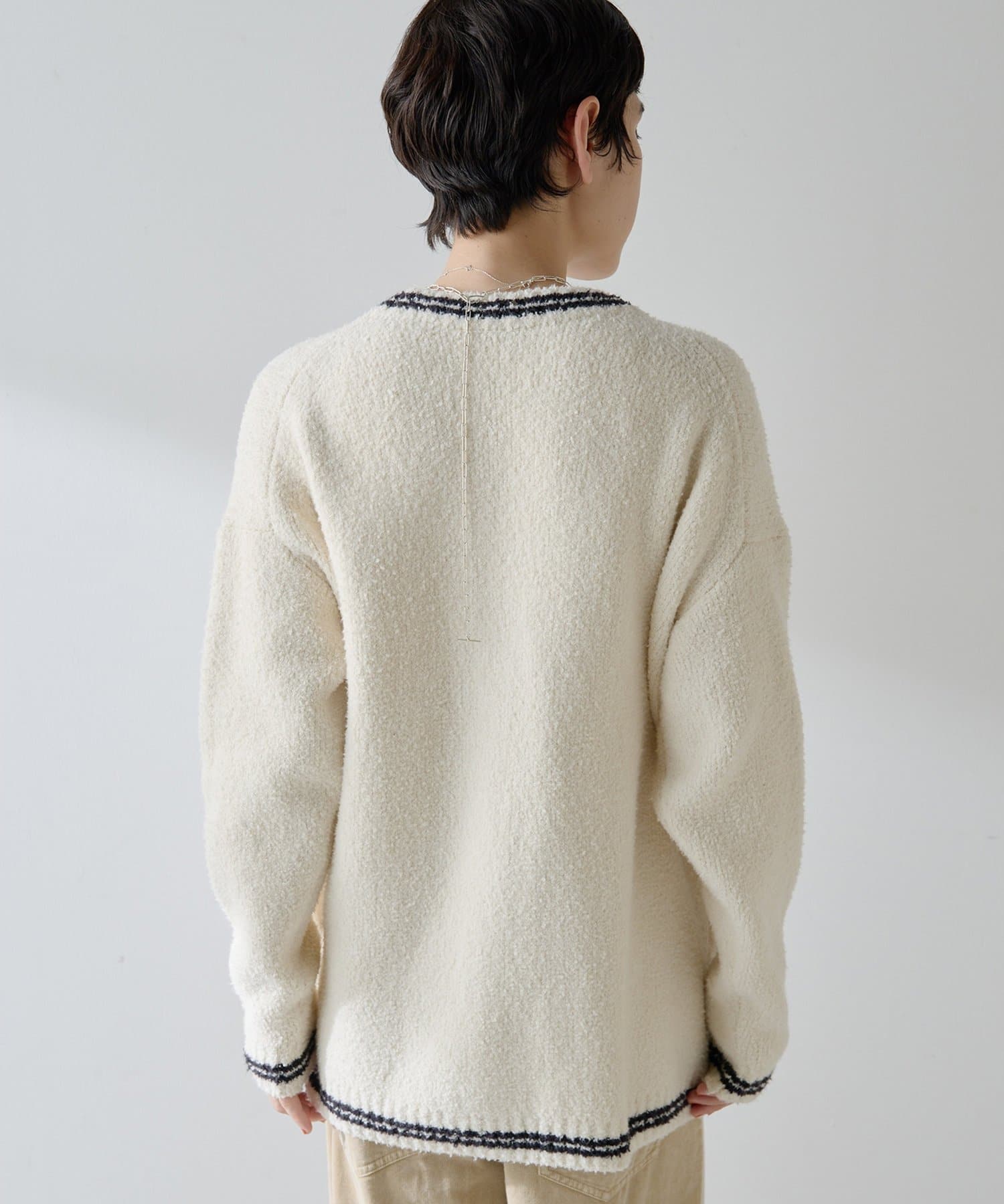 ■ざっくりとしたオーバーシルエットは一枚でもサマになり、インナーをレイヤードしやすいのもポイント。