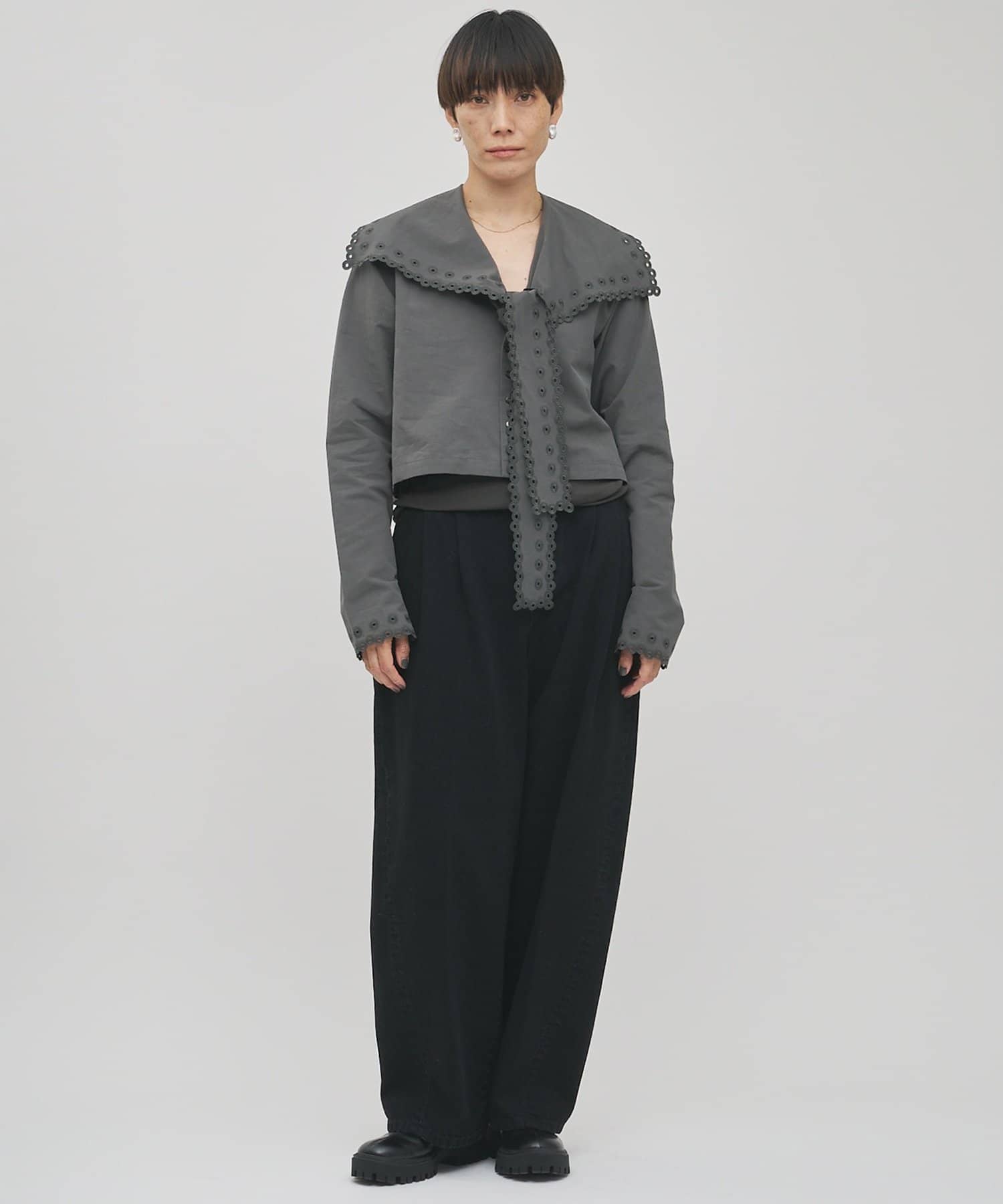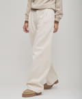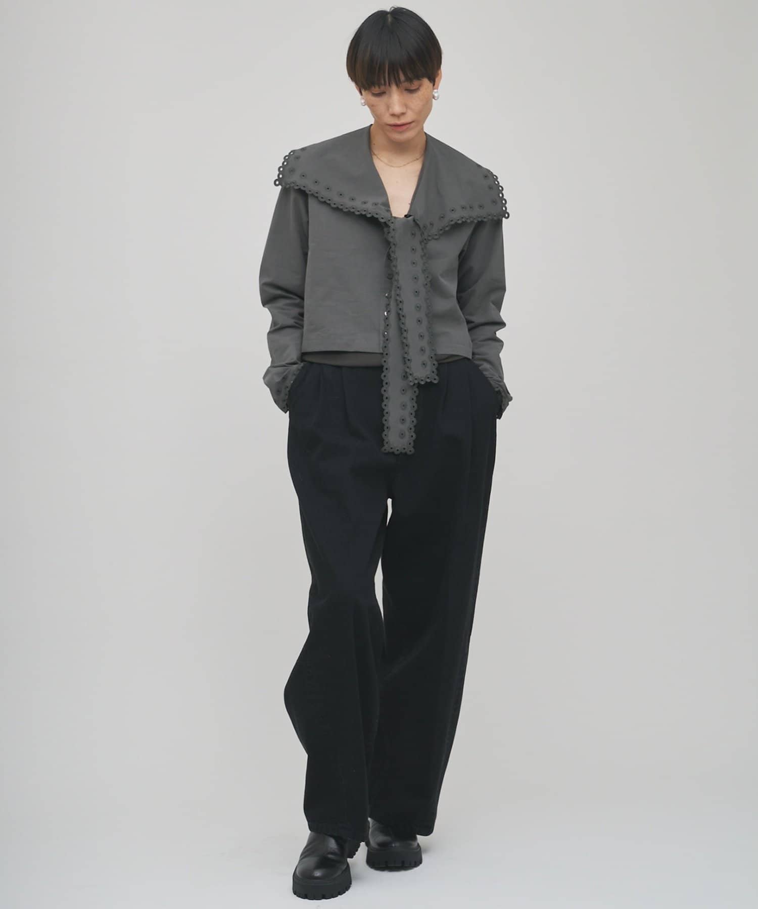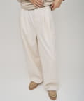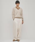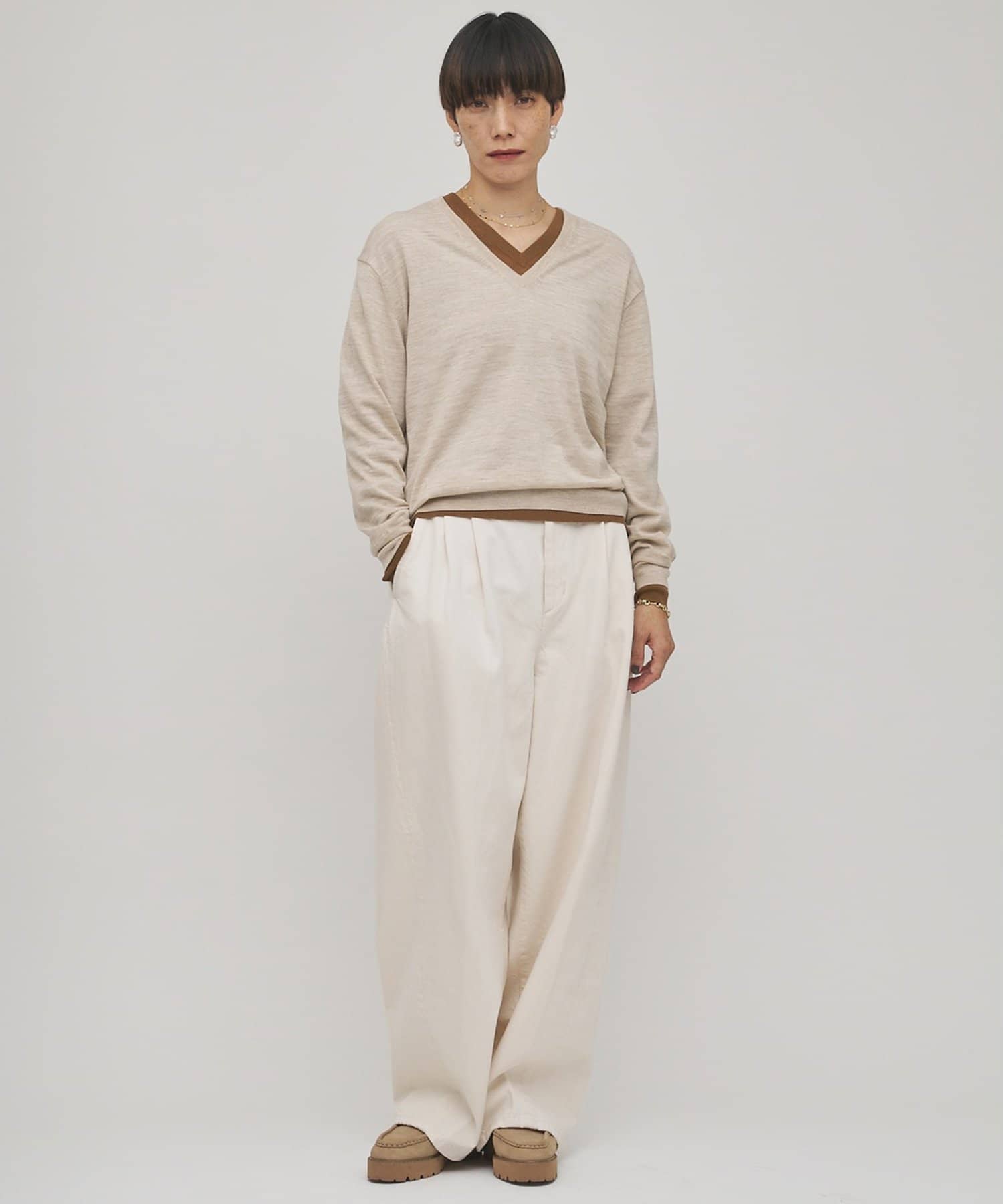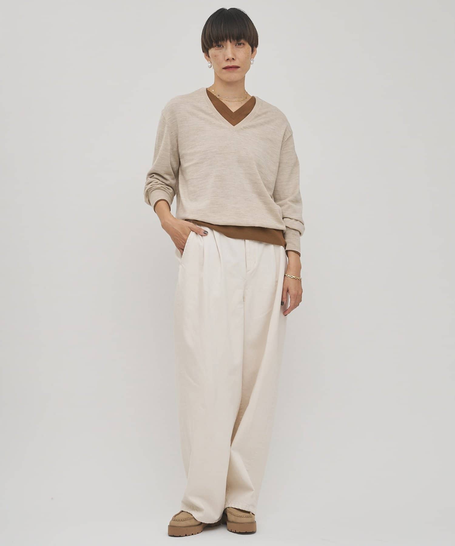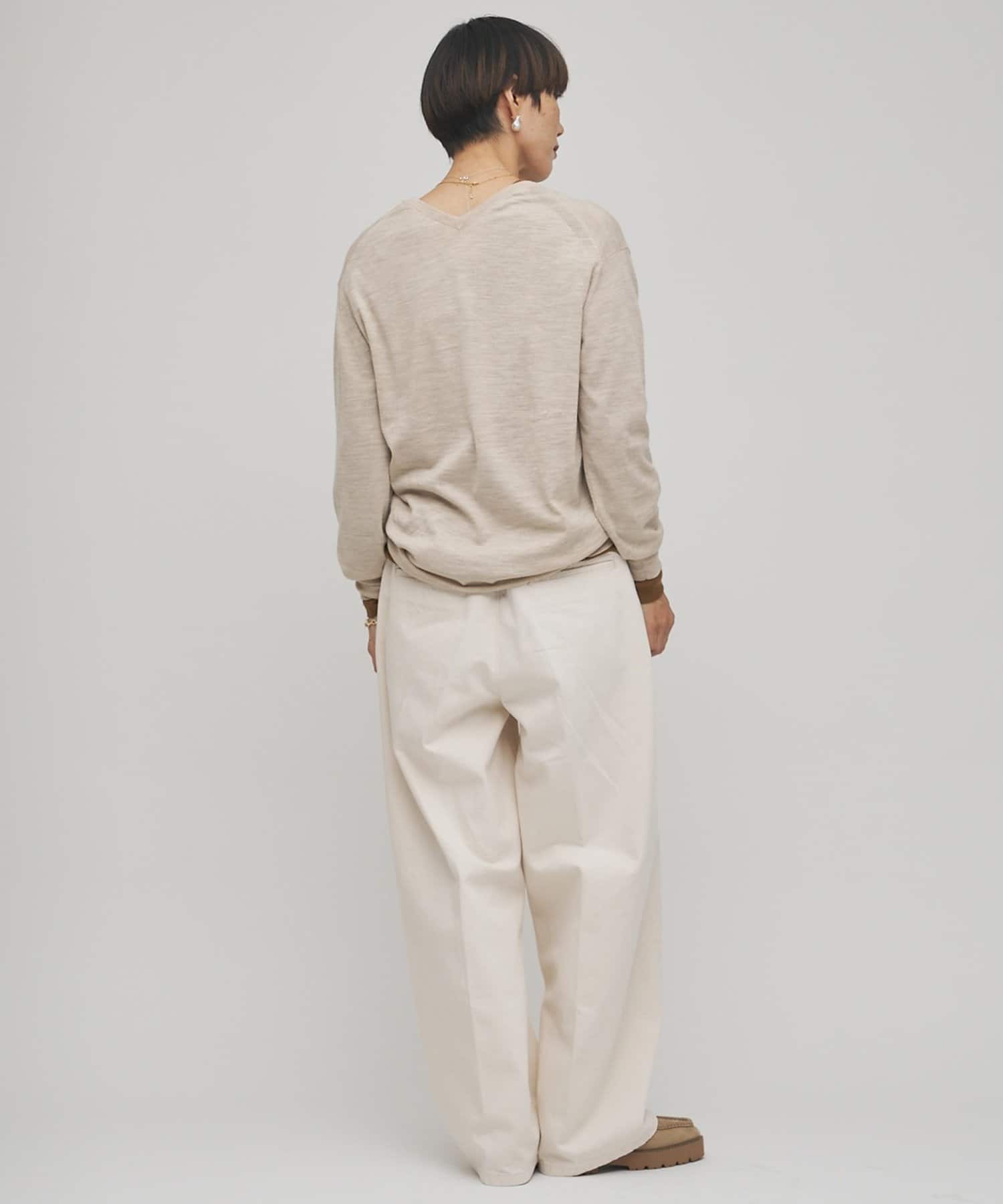 ■脇線をフロントに向かってカーブさせ裾にテーパーを入れることで、ワイドながらも足元がもたつかないデザインに。
