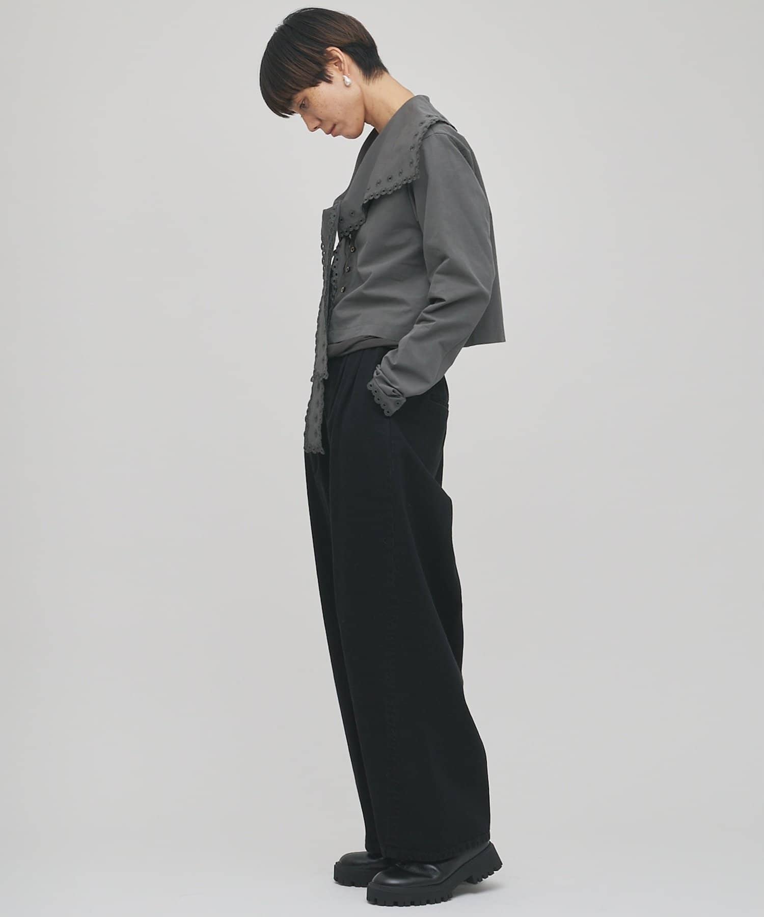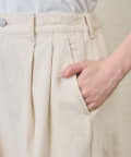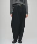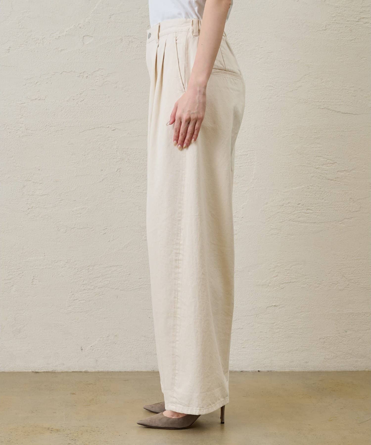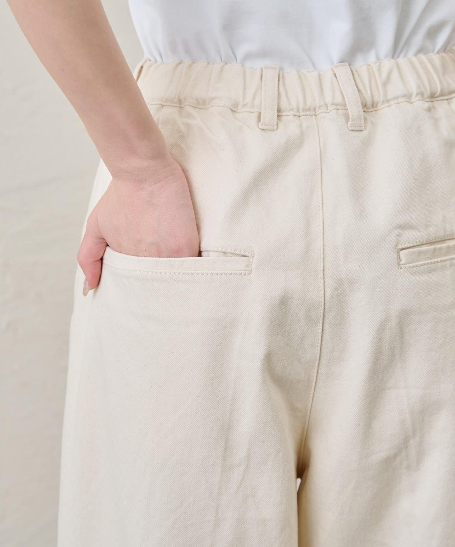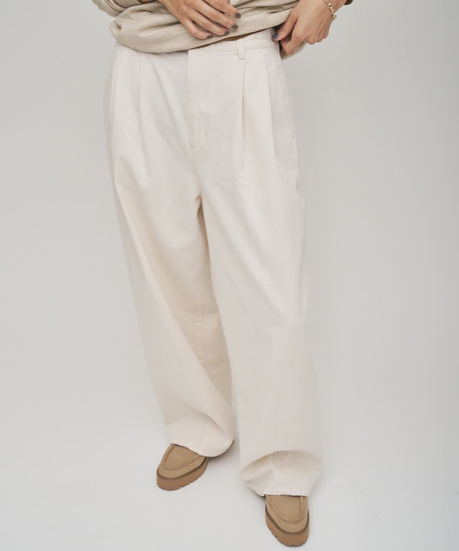 ■11オンスの国内デニム生地を使用したタックパンツ。