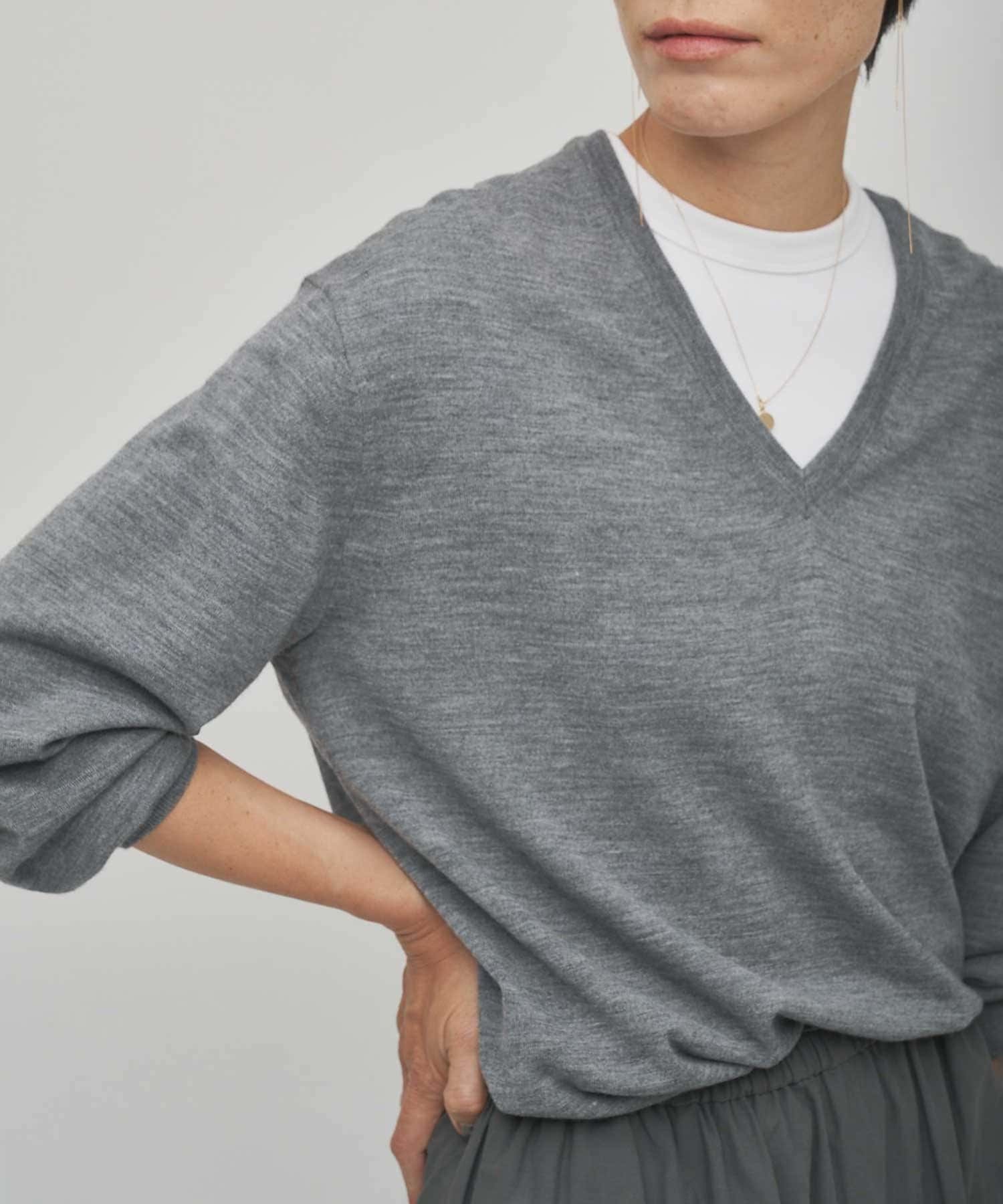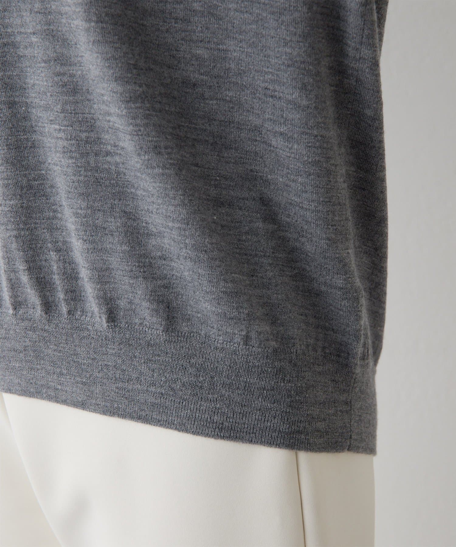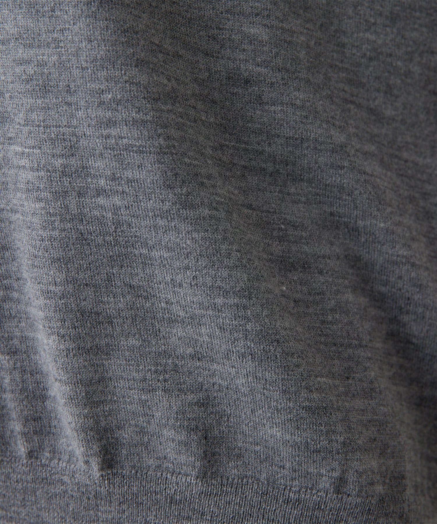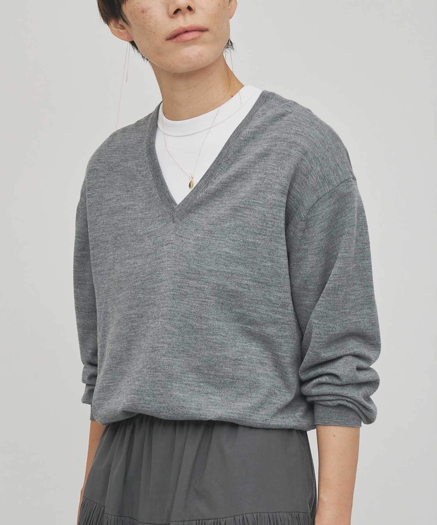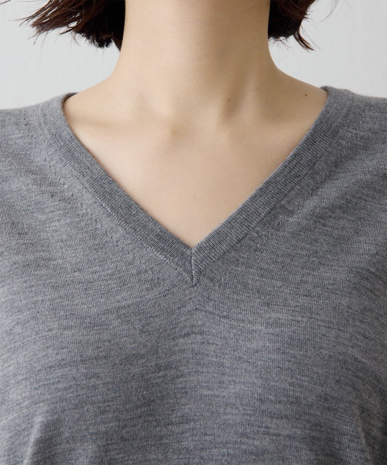 ■スーパー140s(16.5マイクロン)の超極細番手ウールを使用したVネックニット。