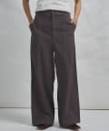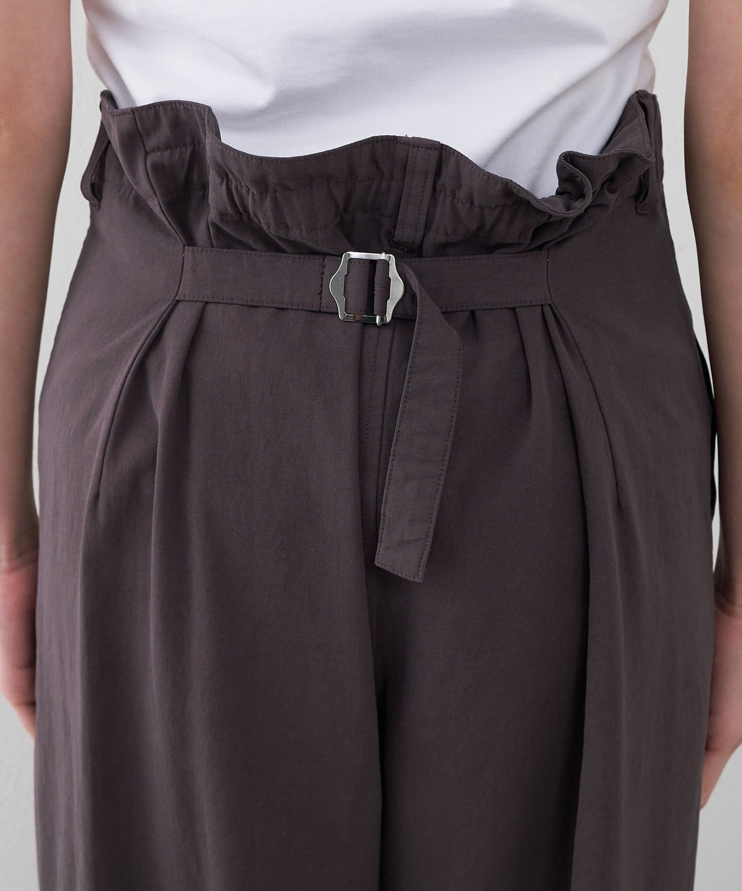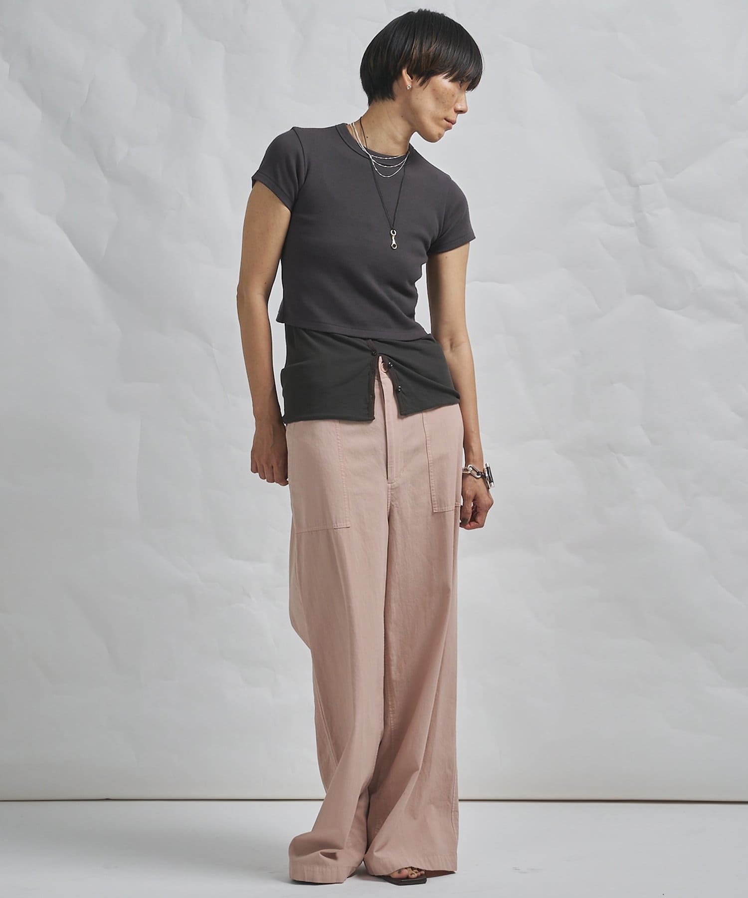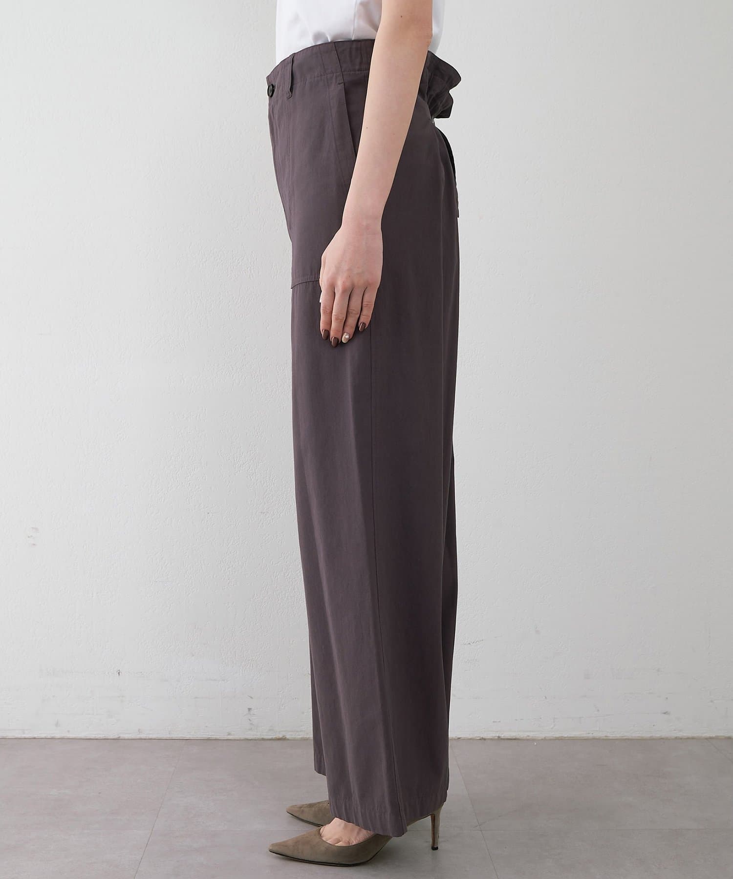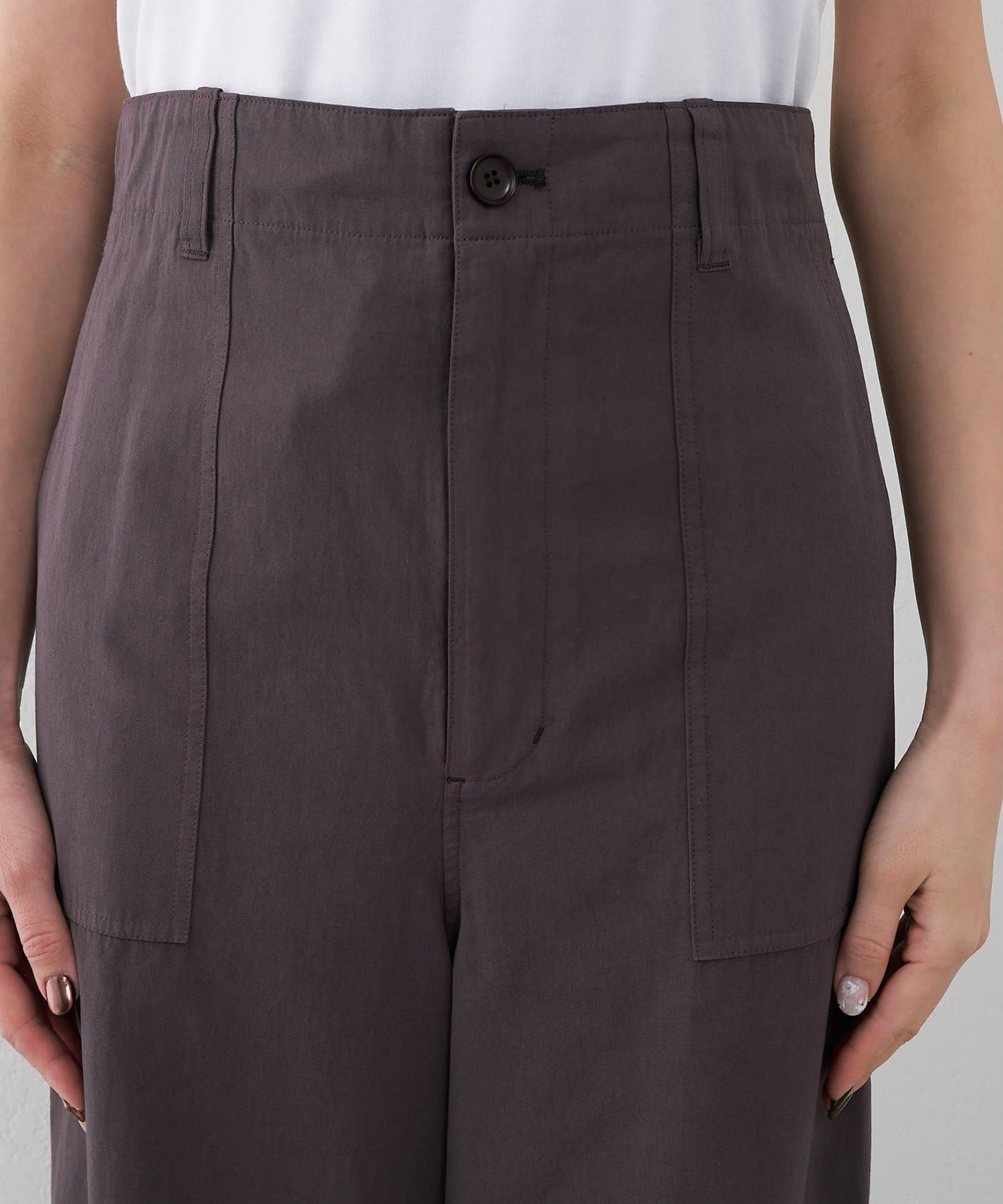 ■ガーメントダイで仕上げた強撚ガスボイルのオックス素材を使用したワイドパンツ。