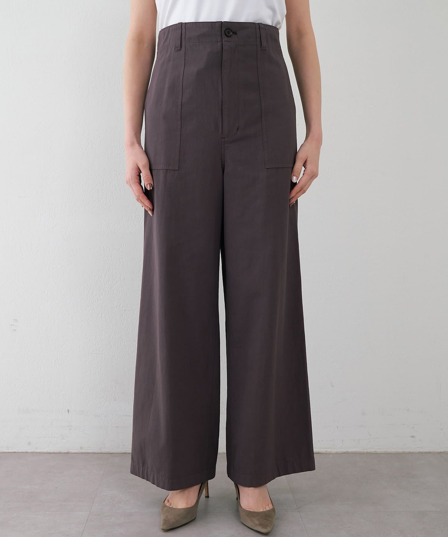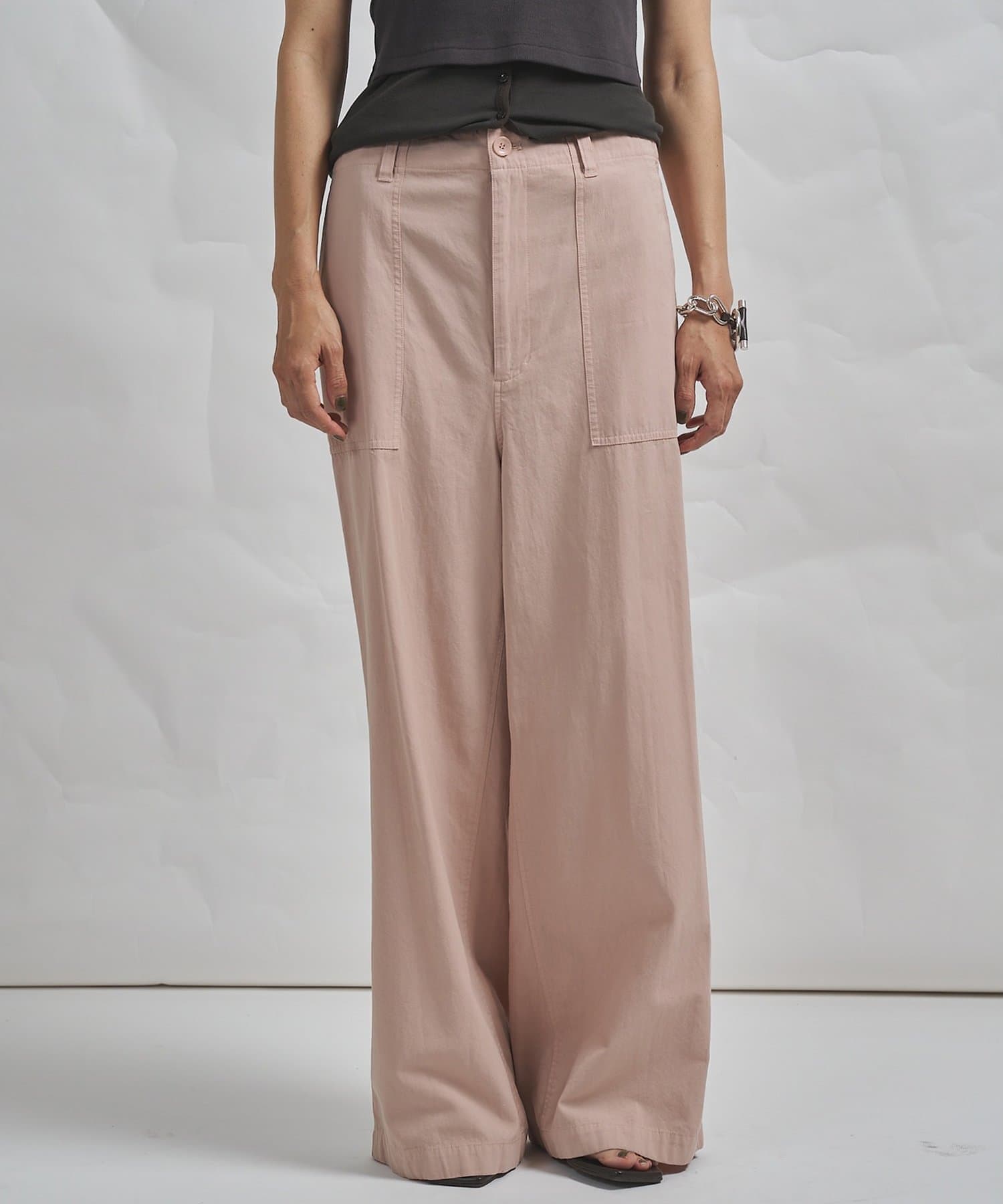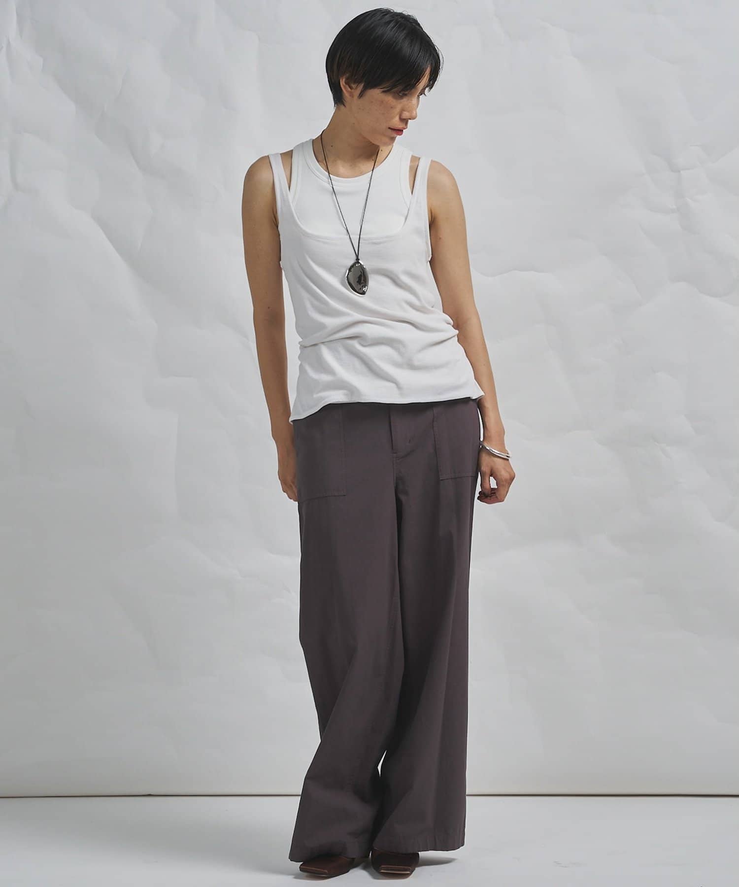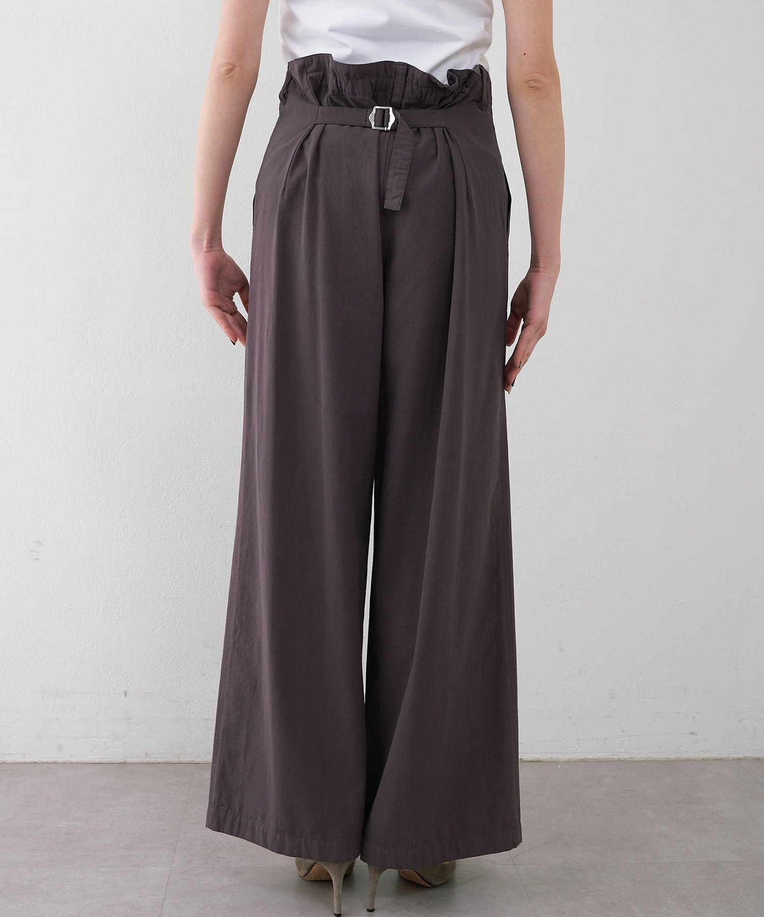 ■ガーメントダイで仕上げた強撚ガスボイルのオックス素材を使用したワイドパンツ。