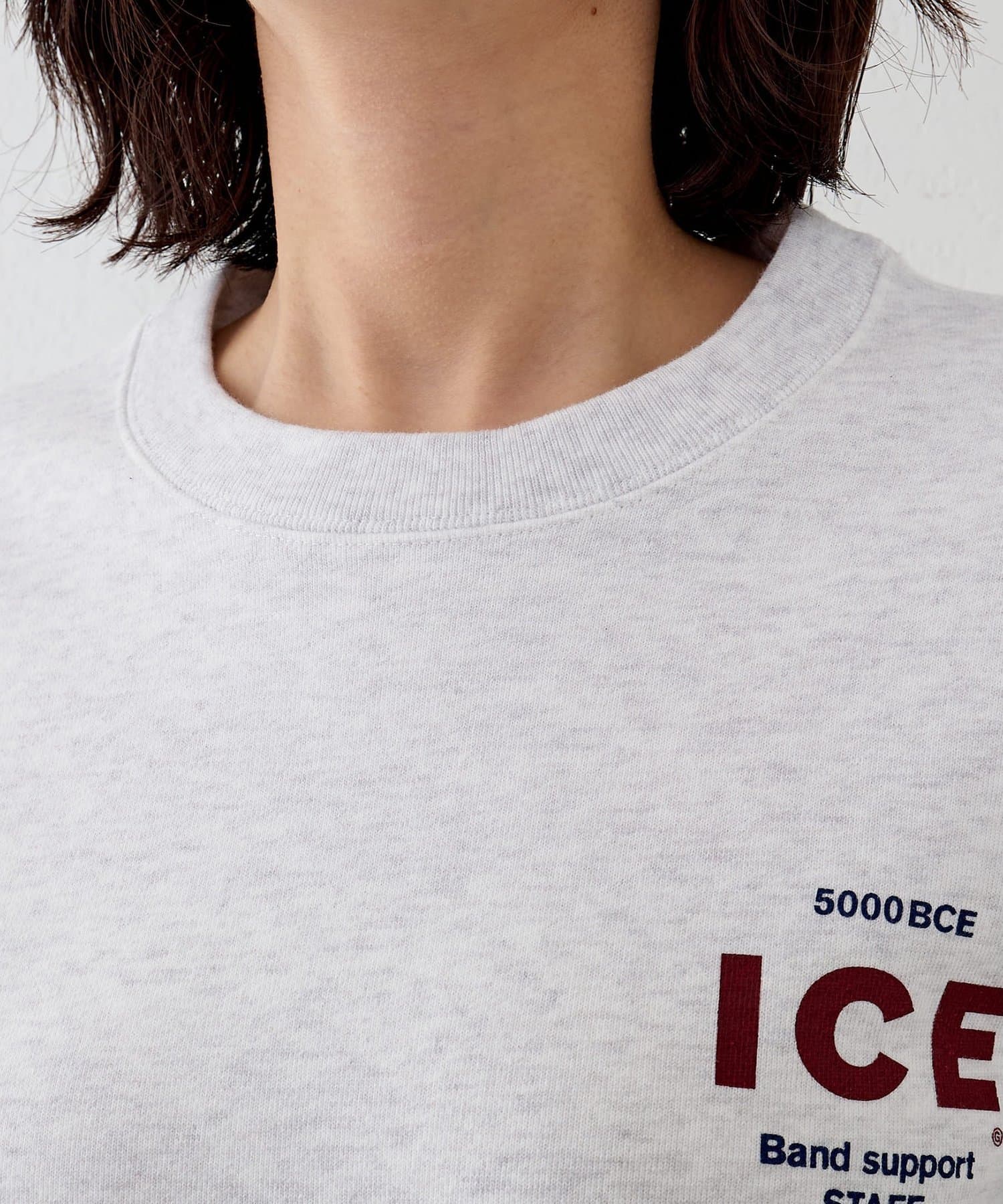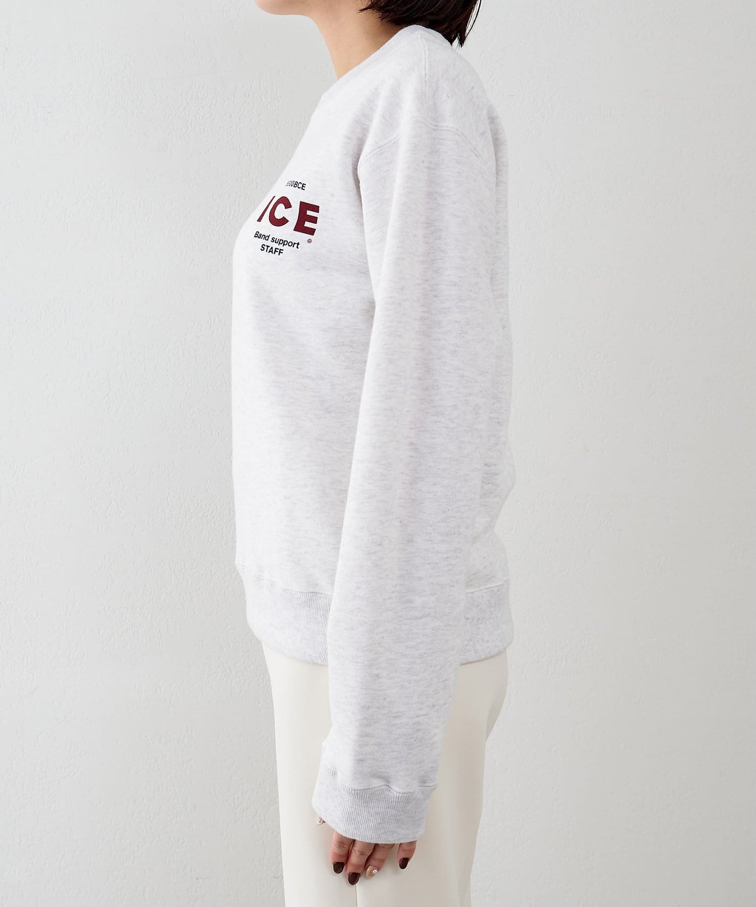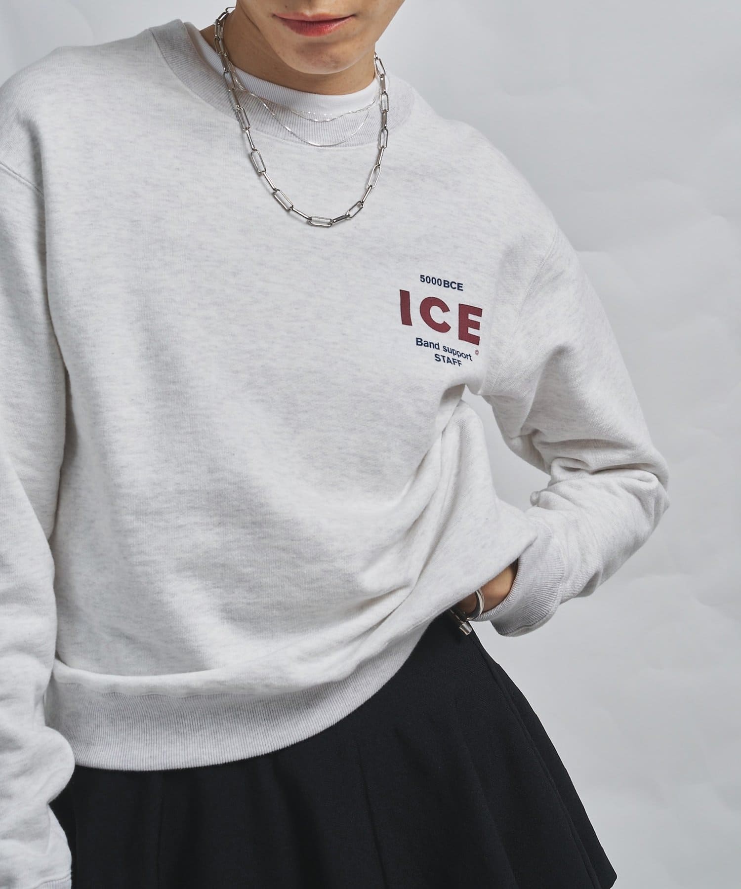 ■架空バンドのスタッフTをイメージしたプリントが遊び心のあるスウェットプルオーバー。