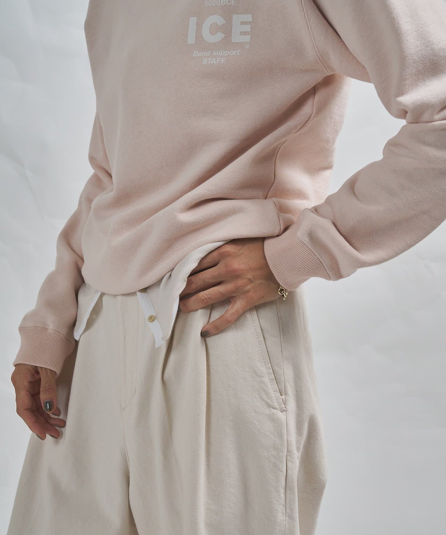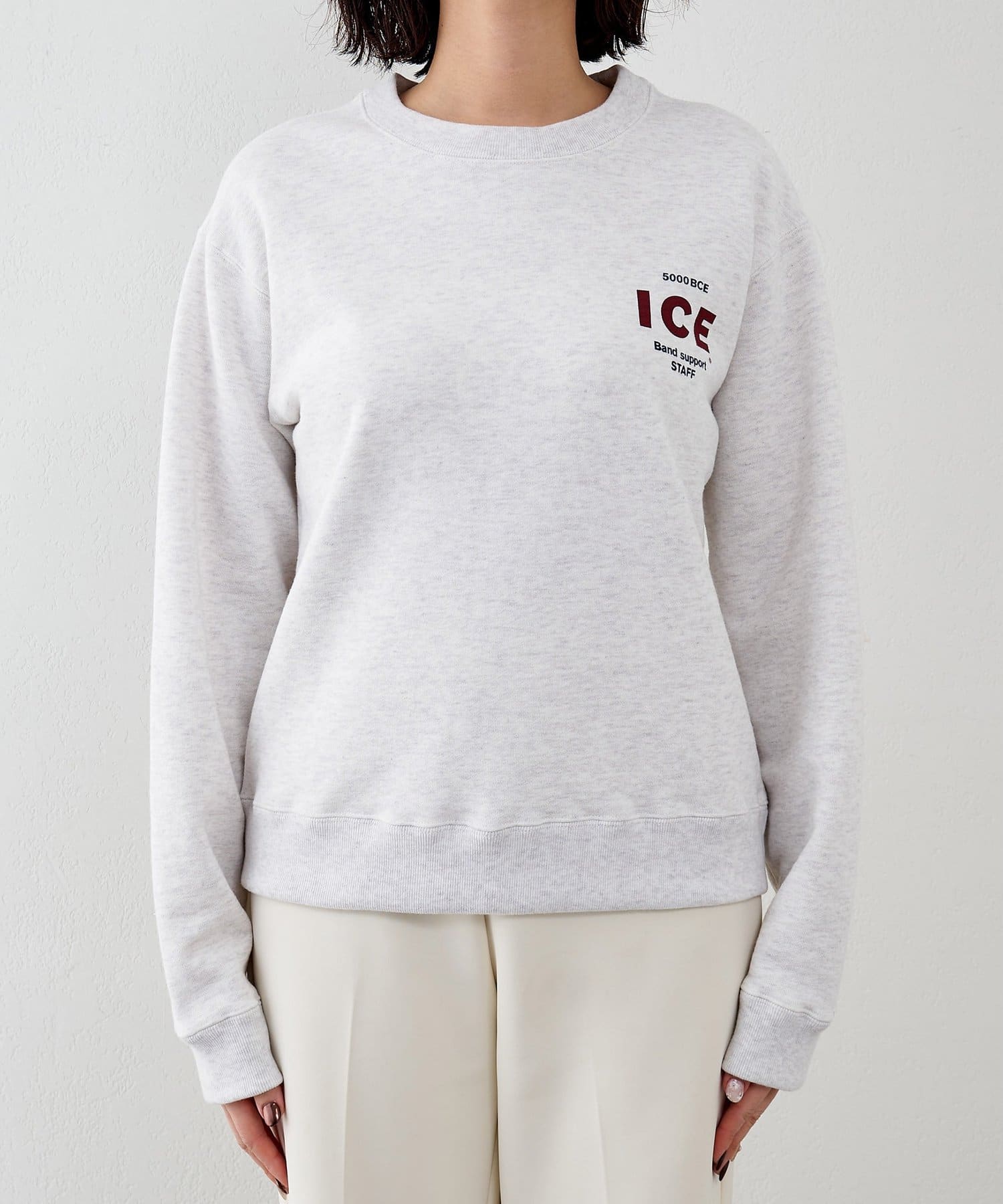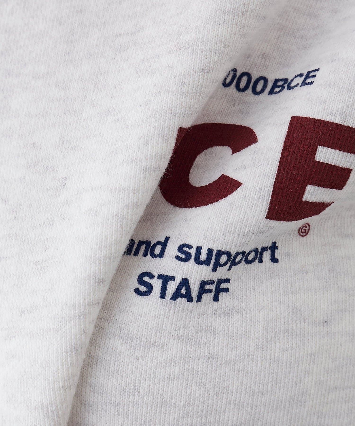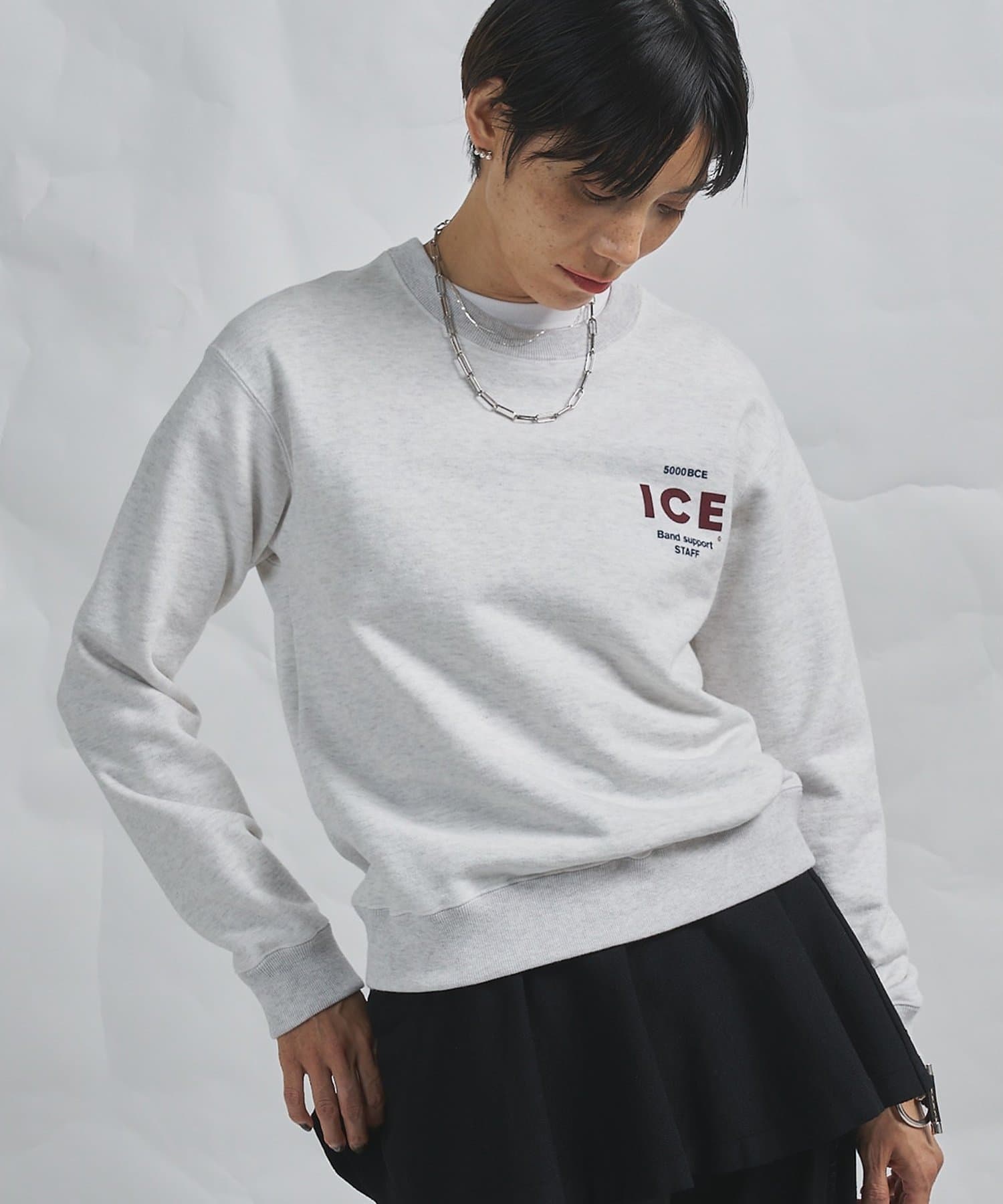 ■架空バンドのスタッフTをイメージしたプリントが遊び心のあるスウェットプルオーバー。