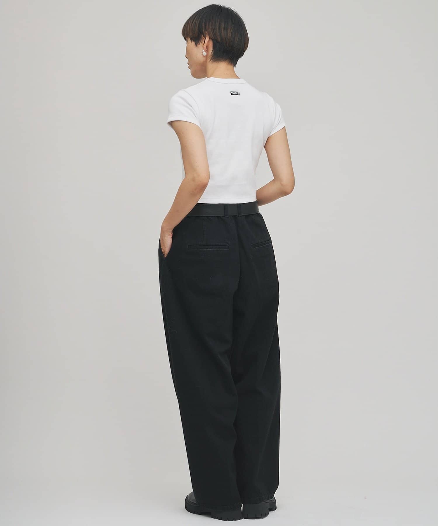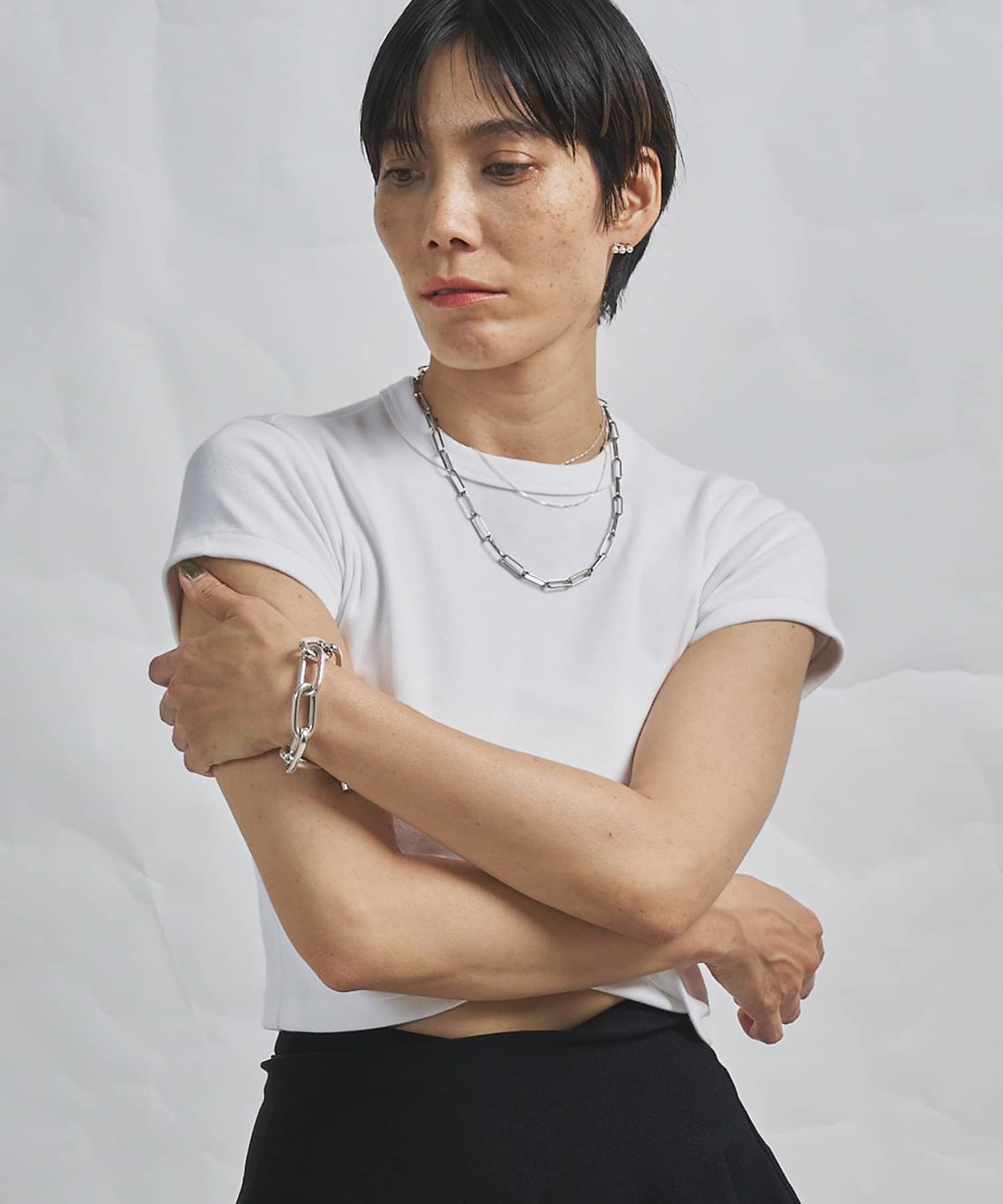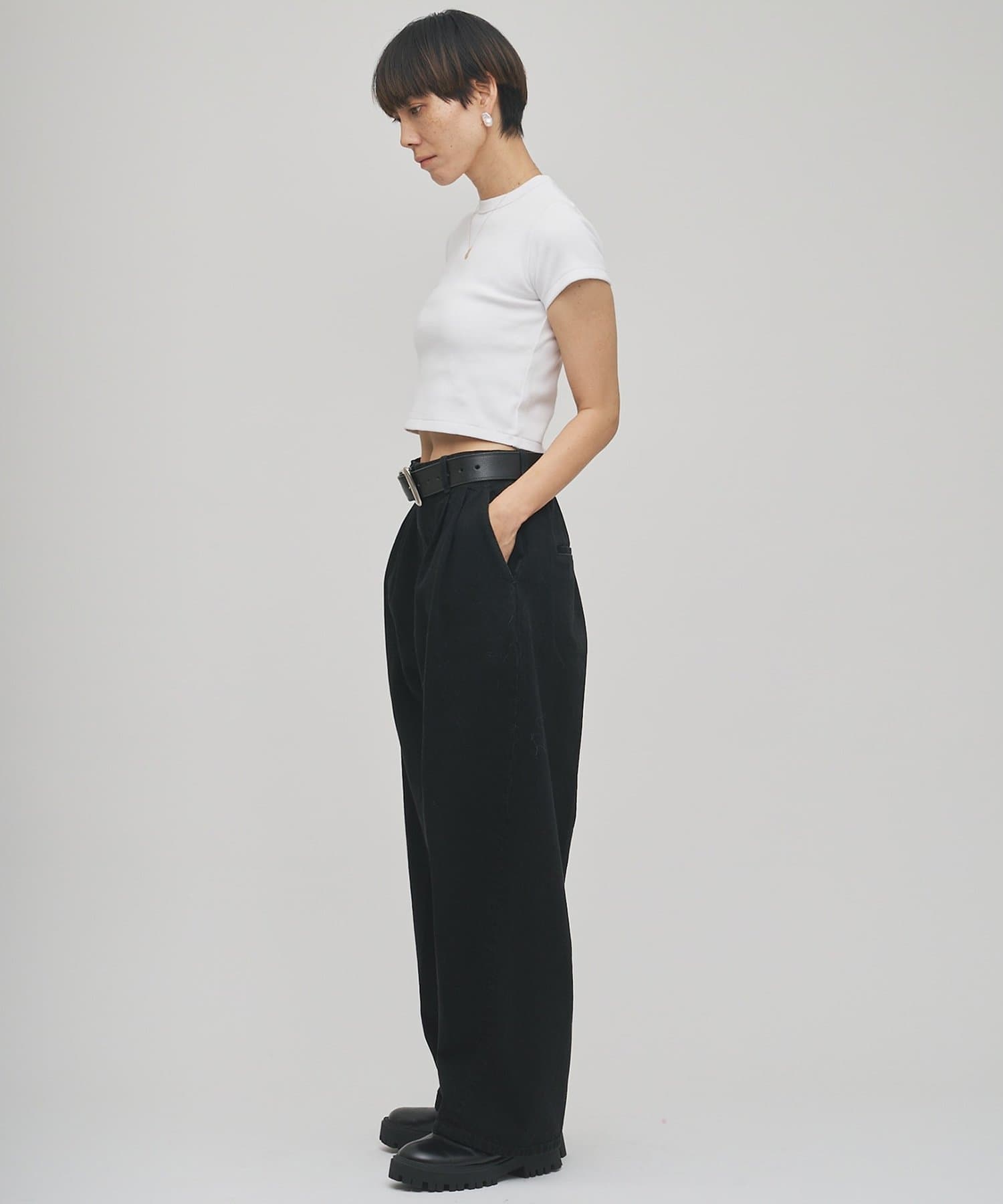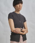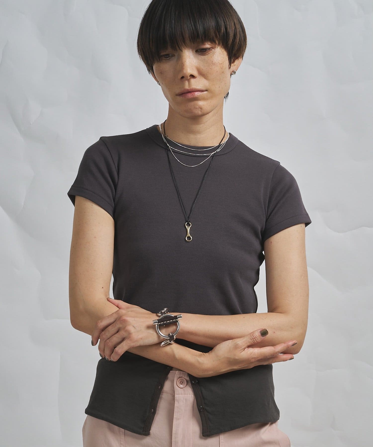■すっきりとしたタイトなシルエットは、ボリューム感のあるボトム合わせがおすすめ。