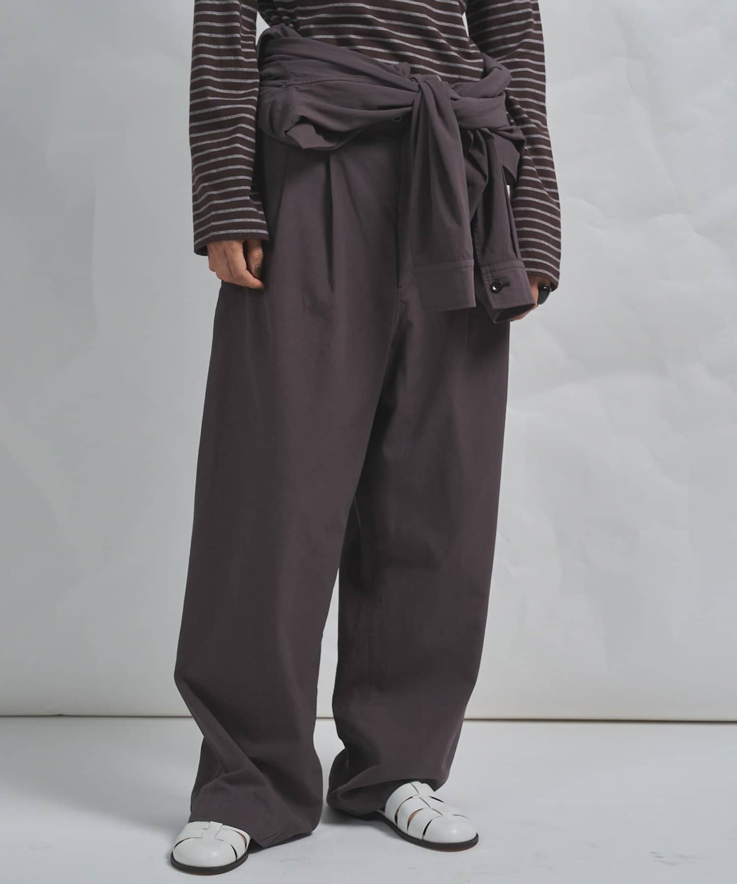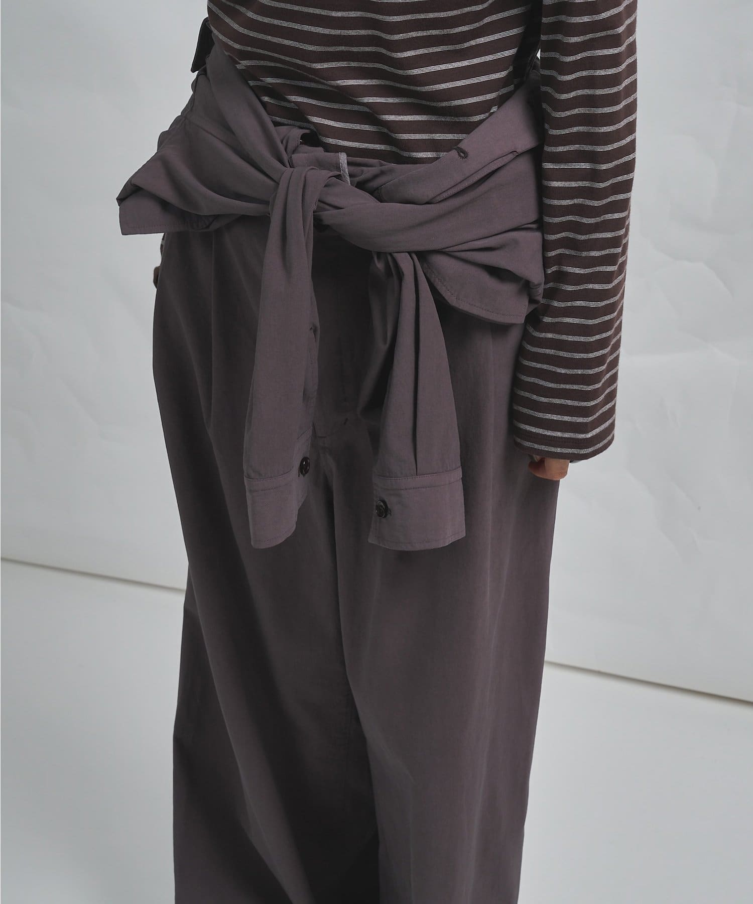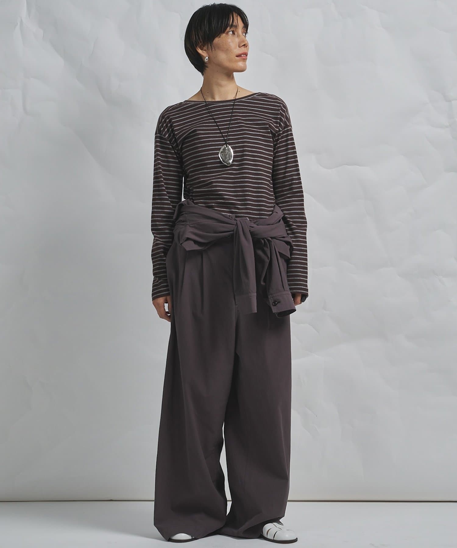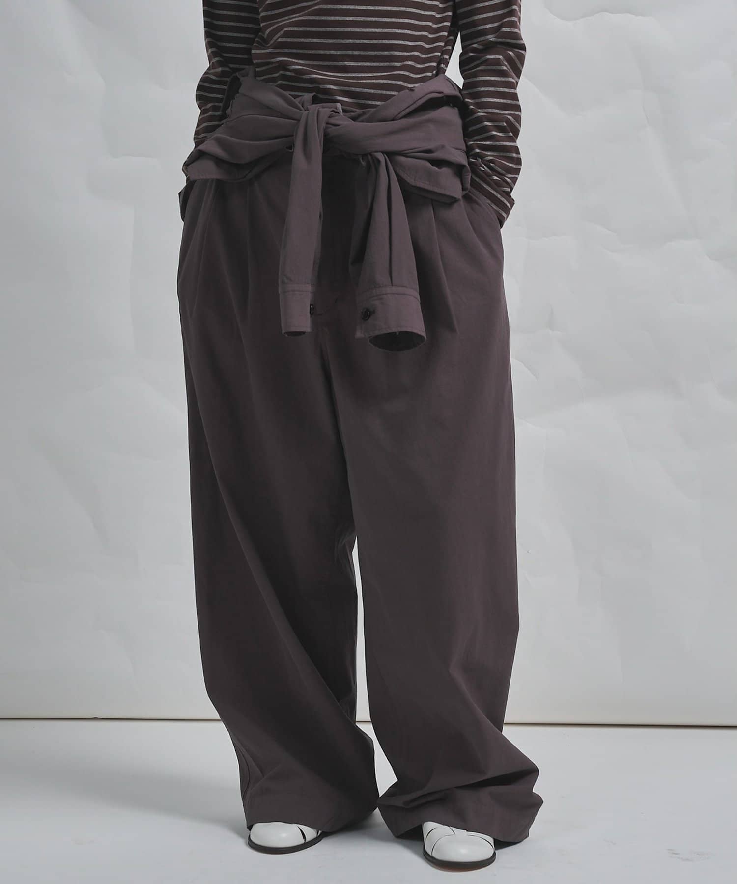 ■ゆったりとしたサイズ感ながら、後ろウエストゴム仕様のスドンとしすぎないシルエットが大人に嬉しい一枚。