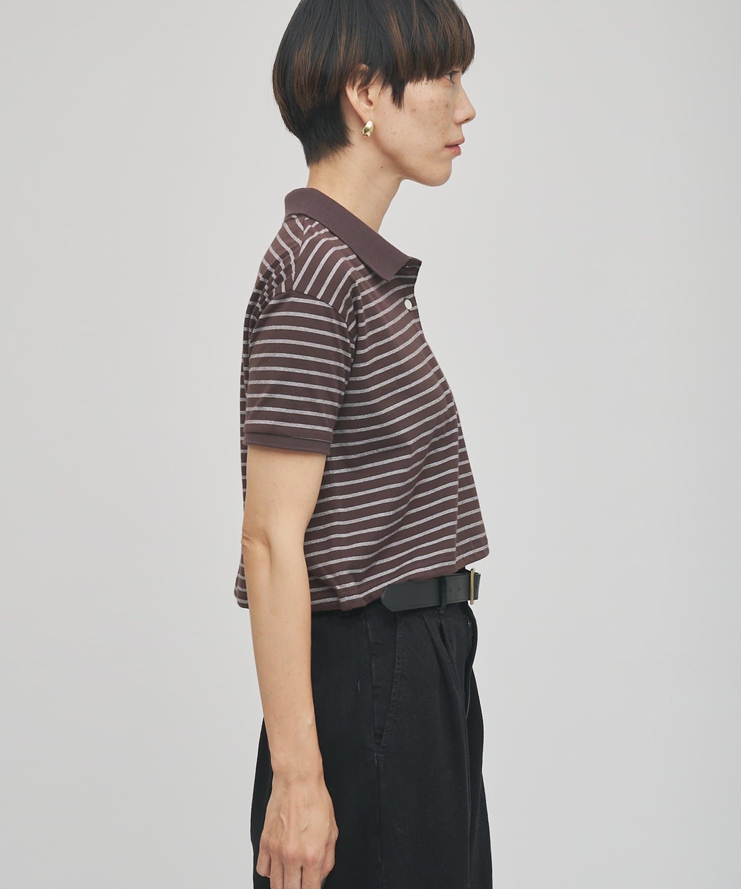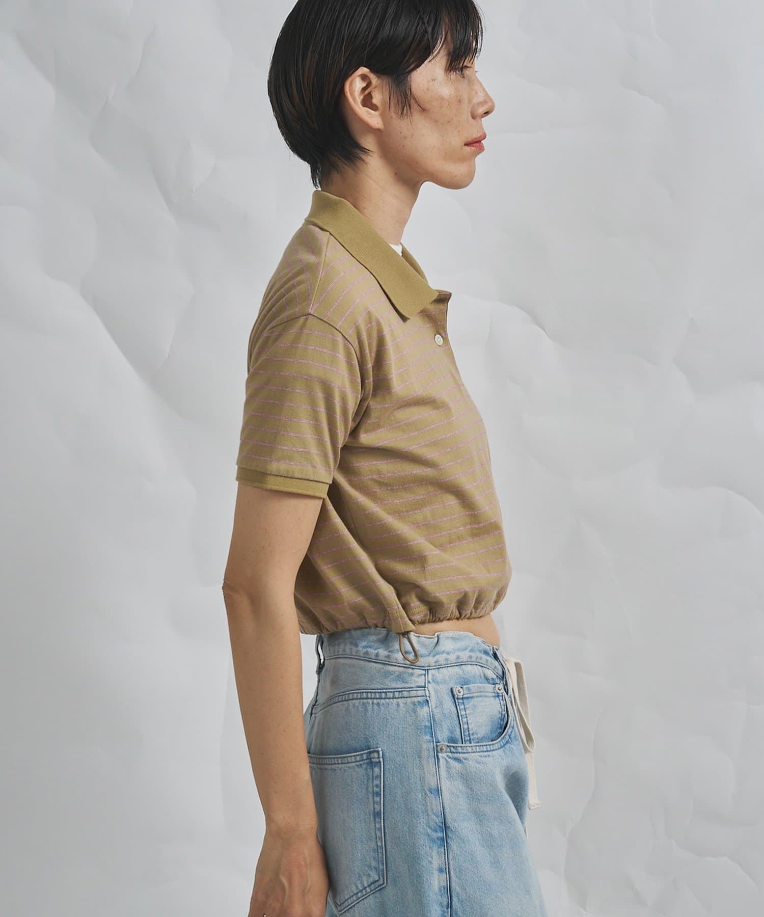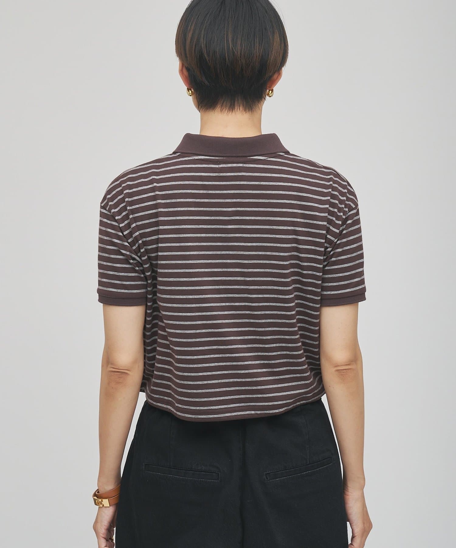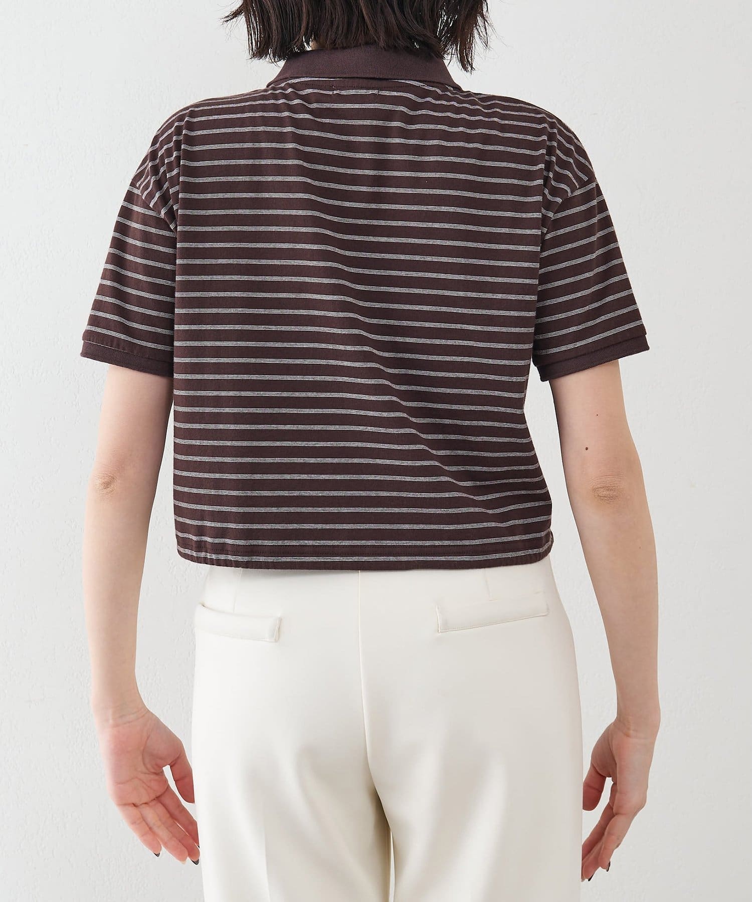 スタイルアップが叶う、ショート丈のボーダーポロシャツ