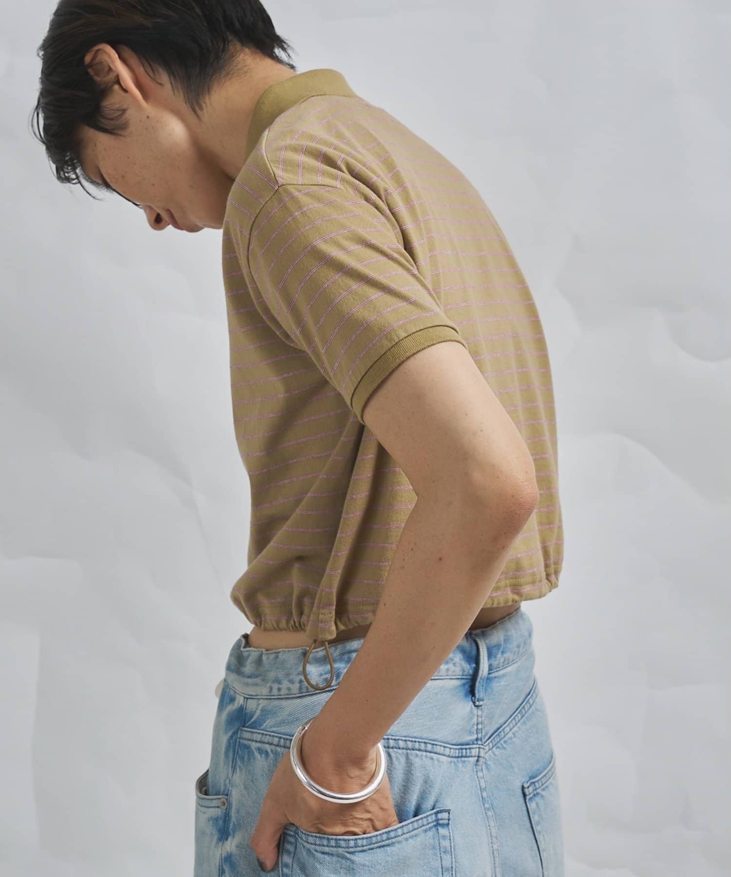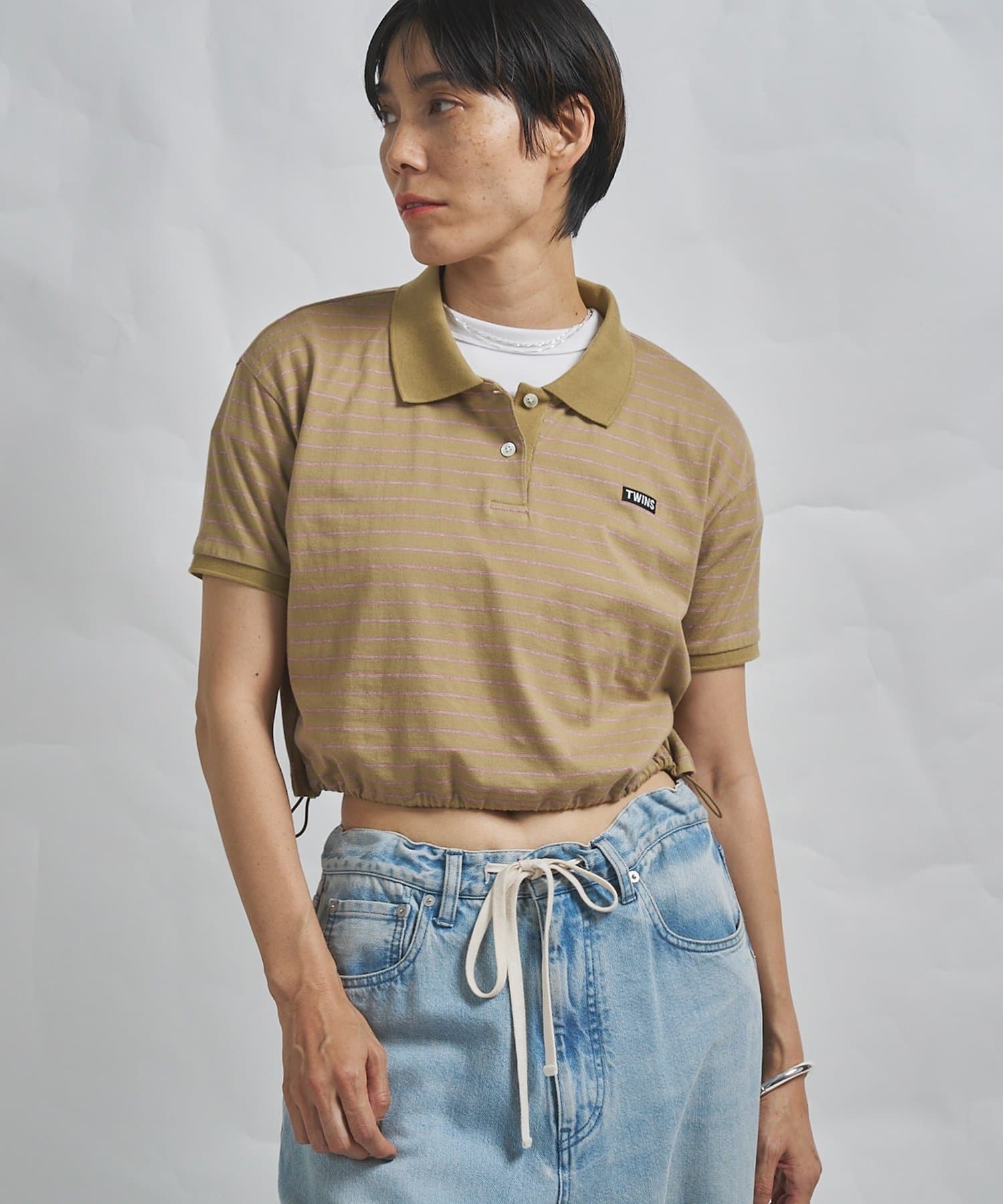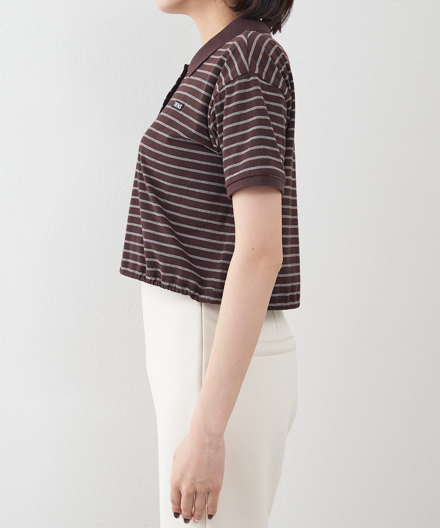 スタイルアップが叶う、ショート丈のボーダーポロシャツ