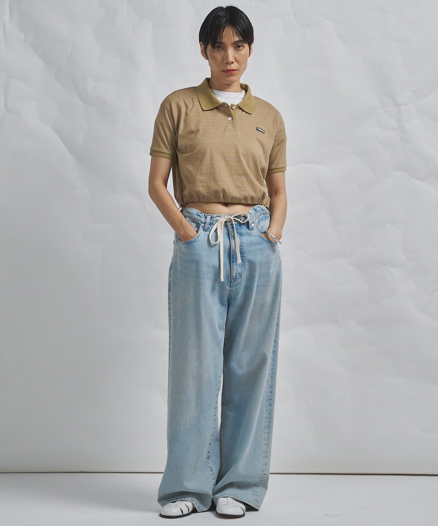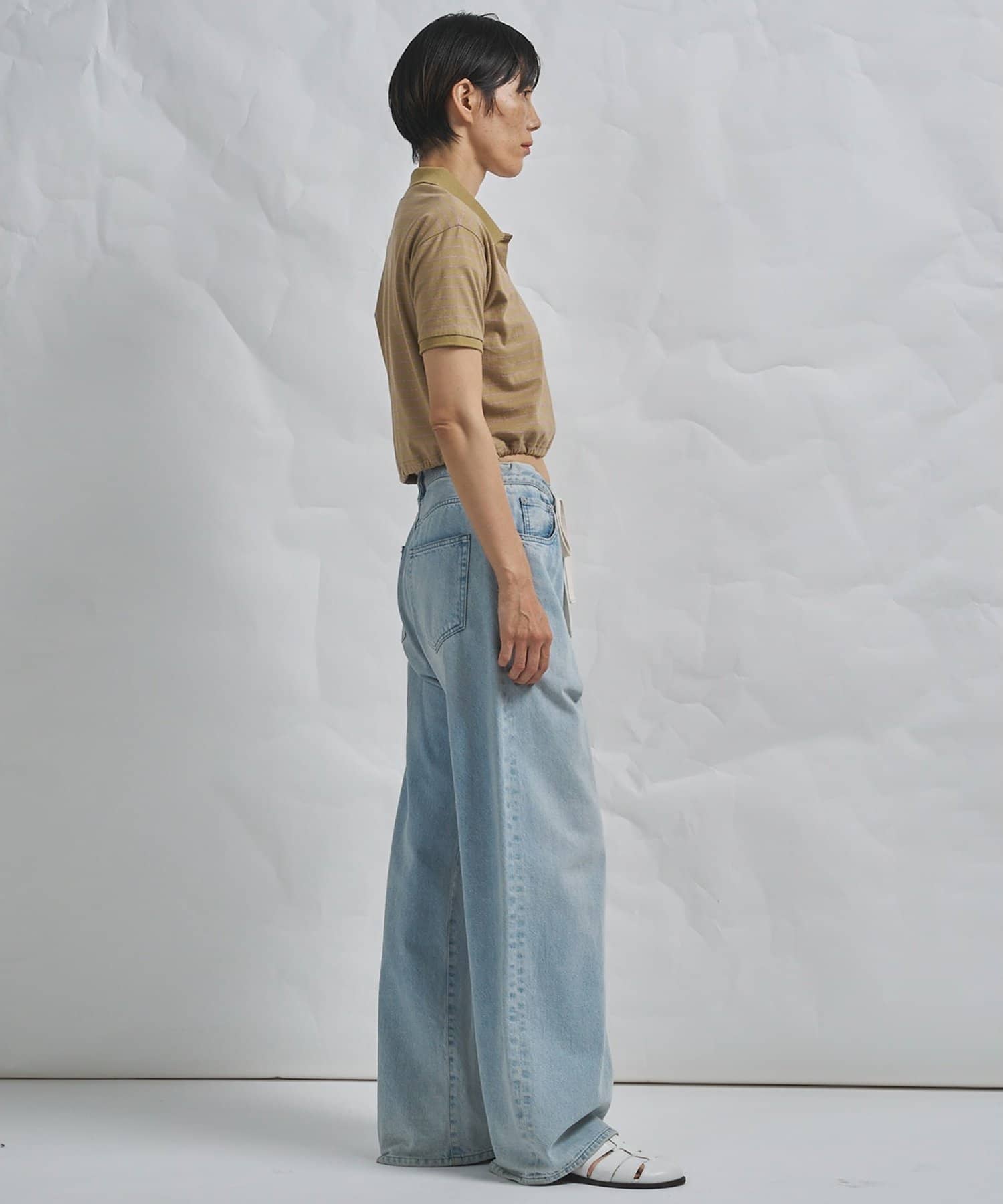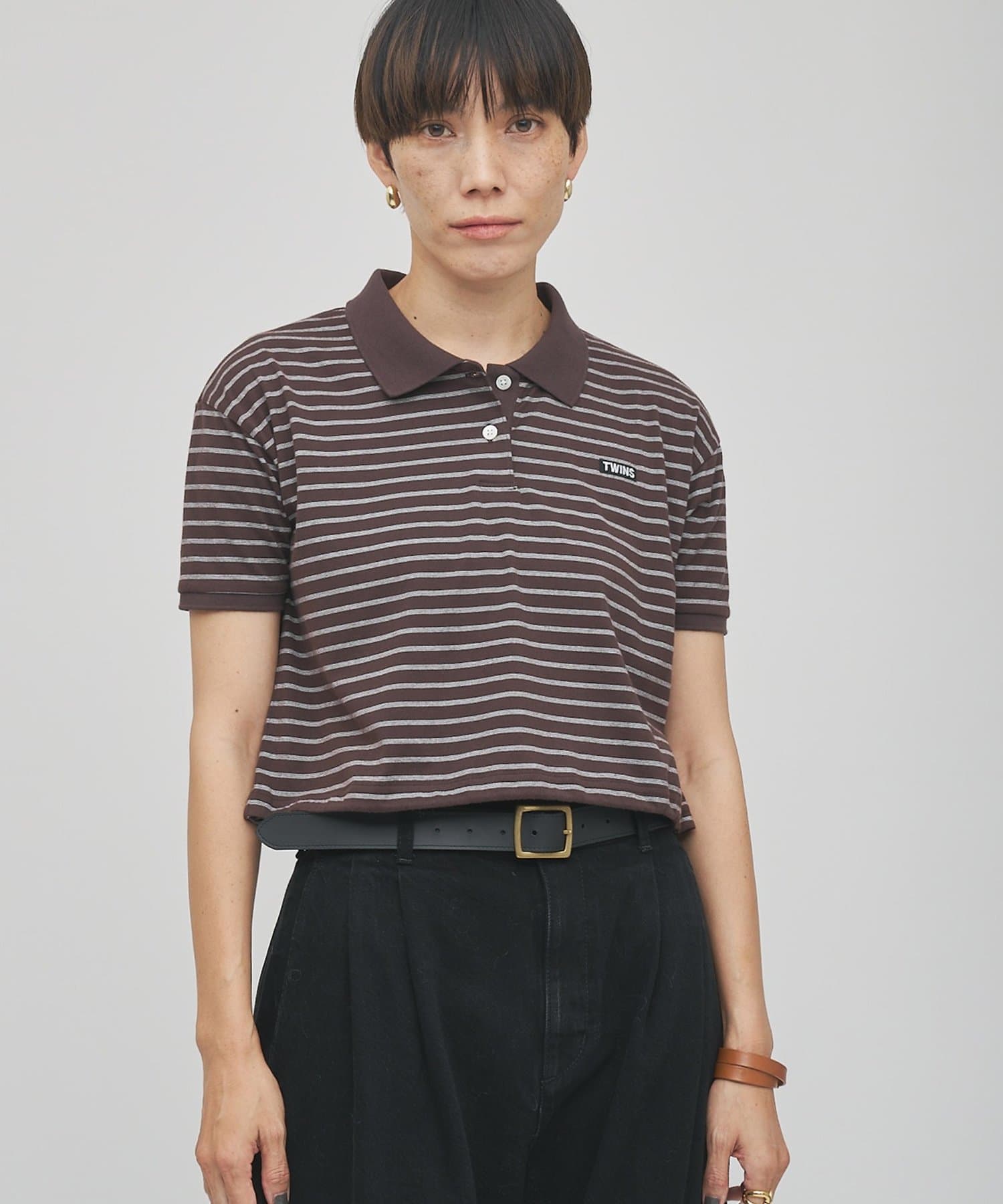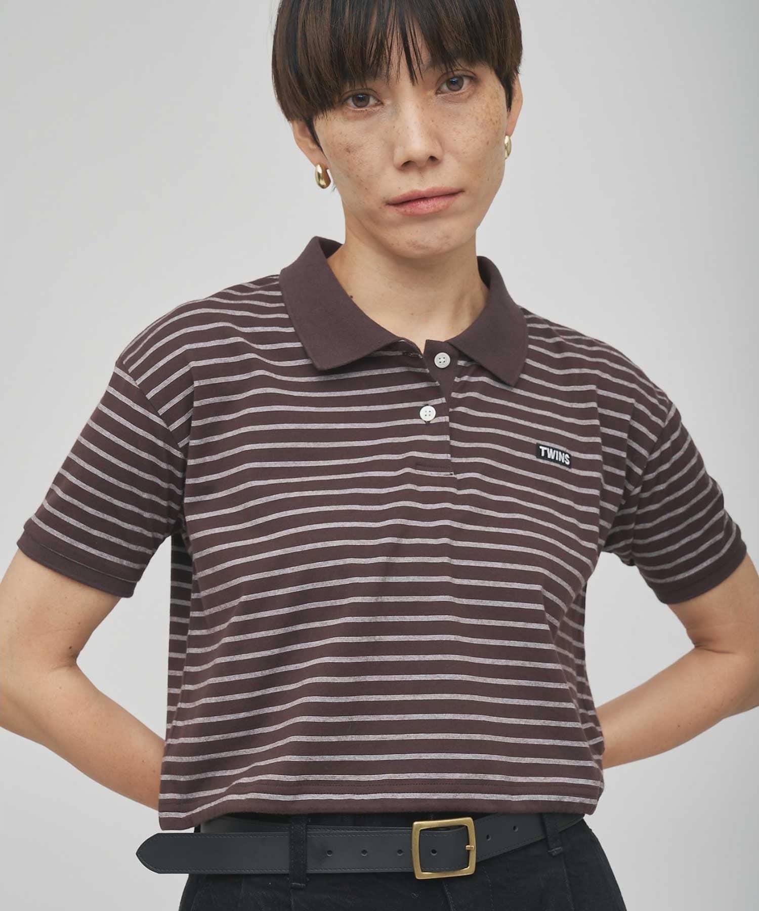 スタイルアップが叶う、ショート丈のボーダーポロシャツ